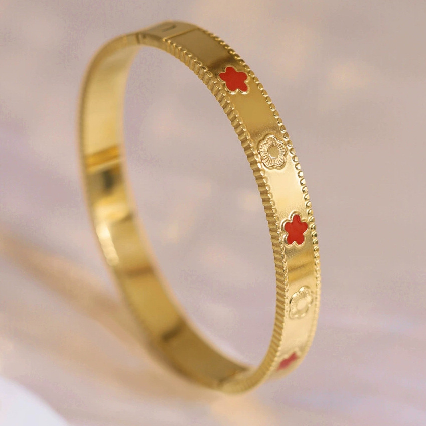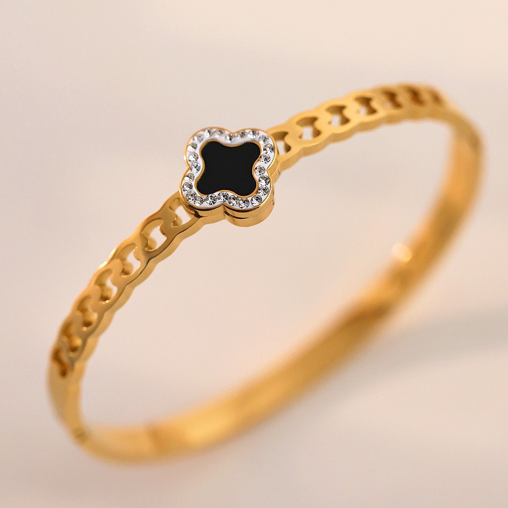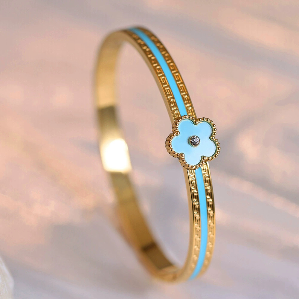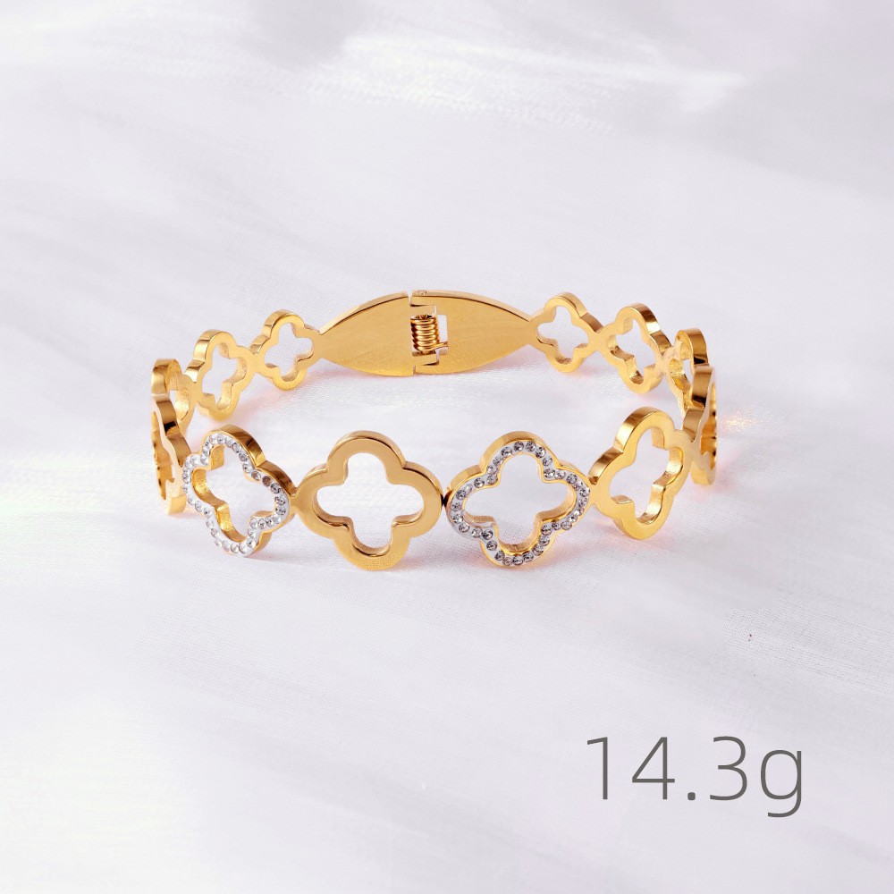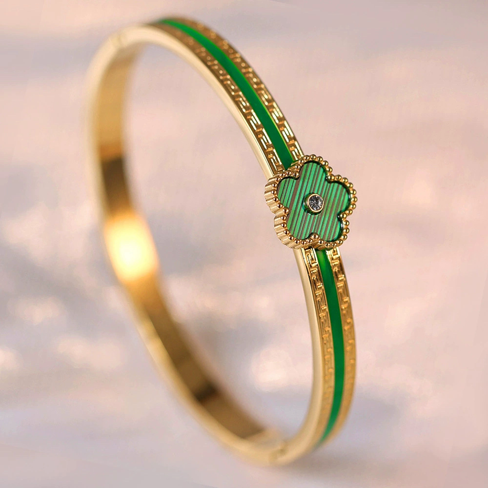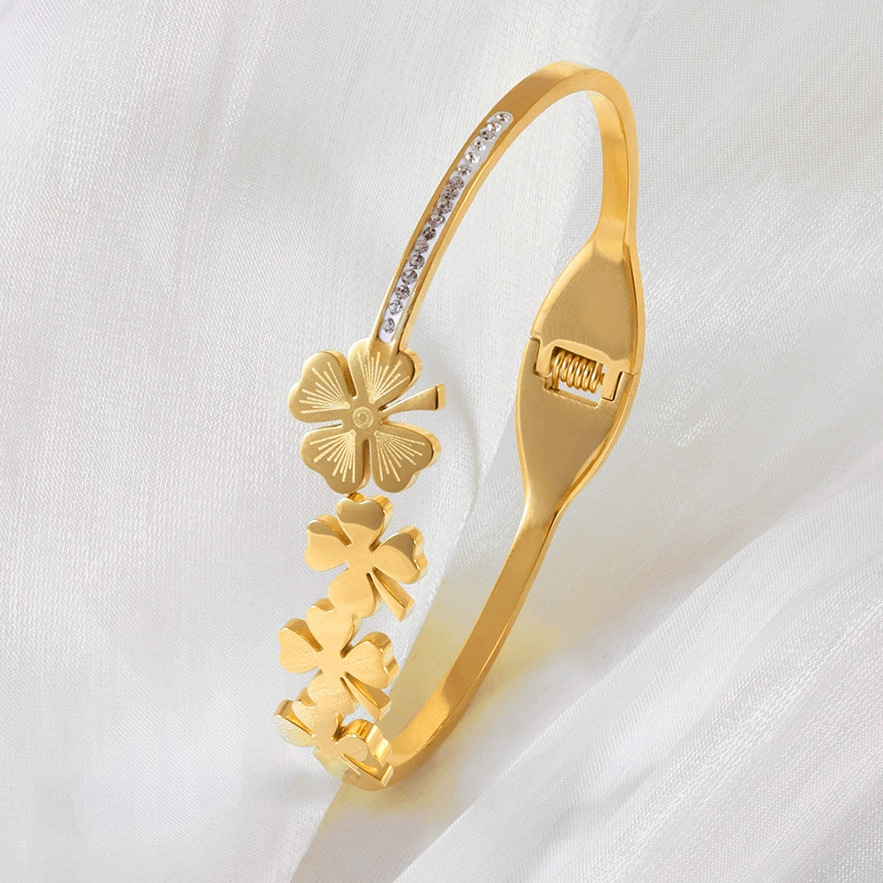 Женский браслет с четырехлистным клевером, покрытый гальваническим покрытием, не выцветает, экологичный, европейский и американский стиль, золотой зеркальный браслет с четырехлистным клевером