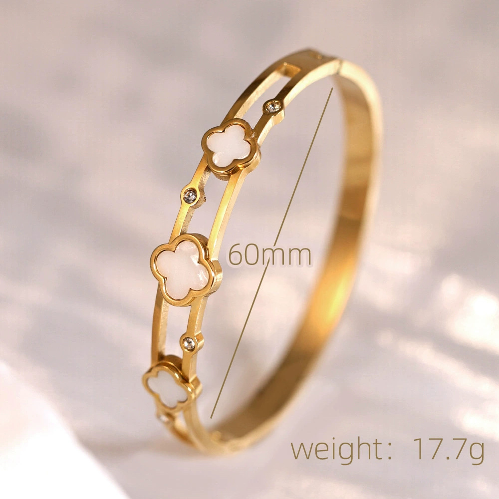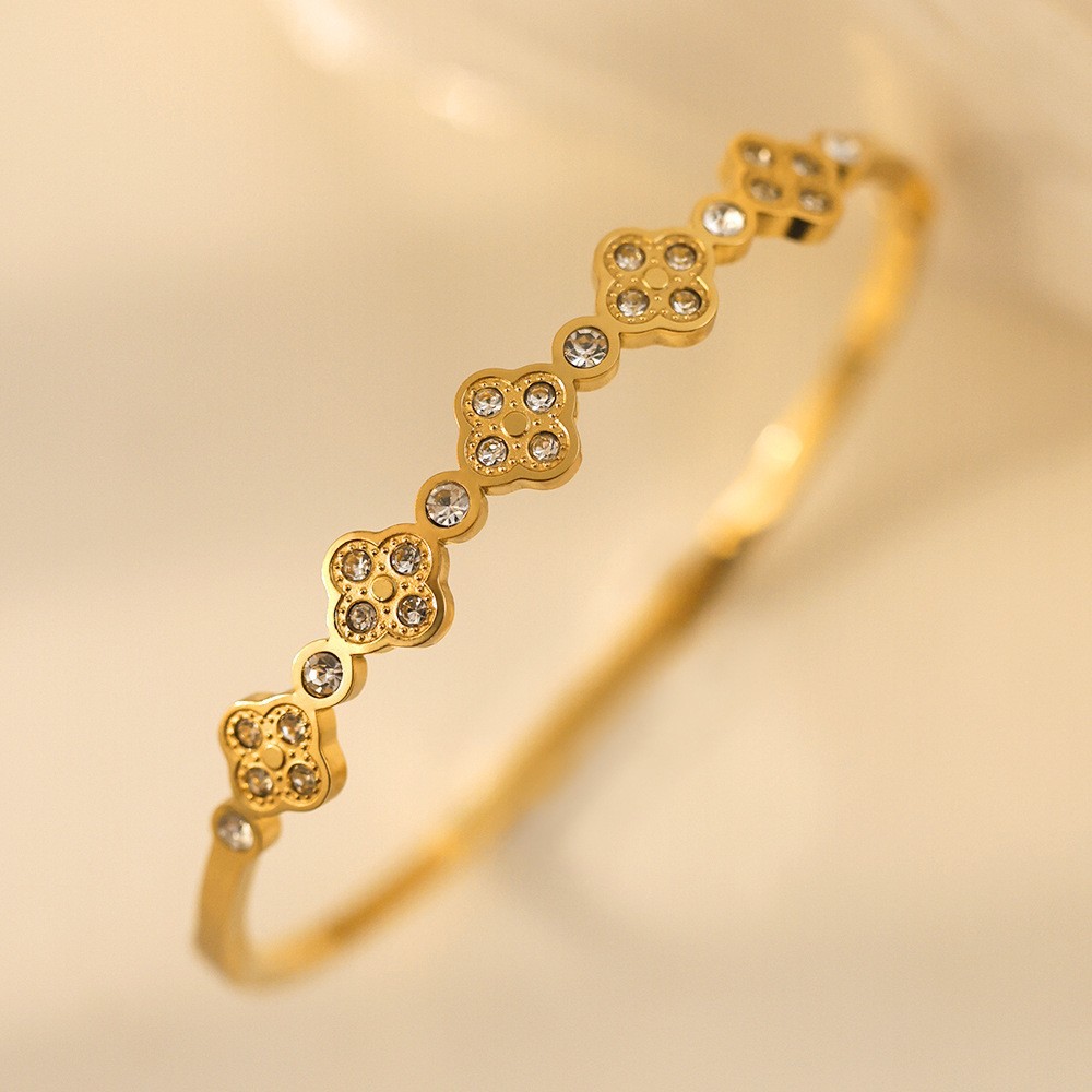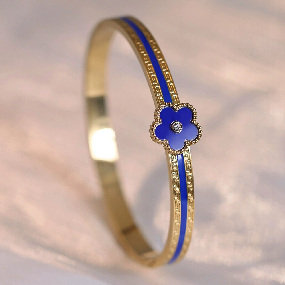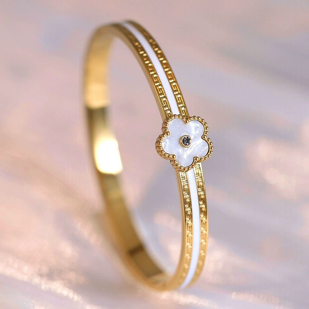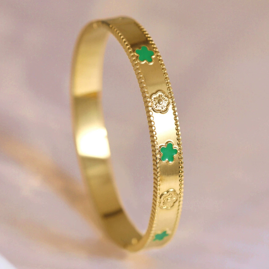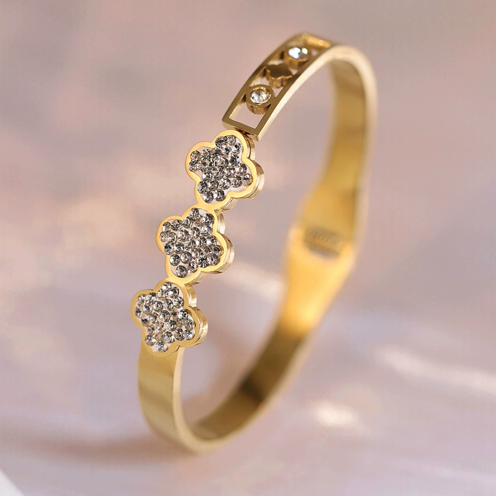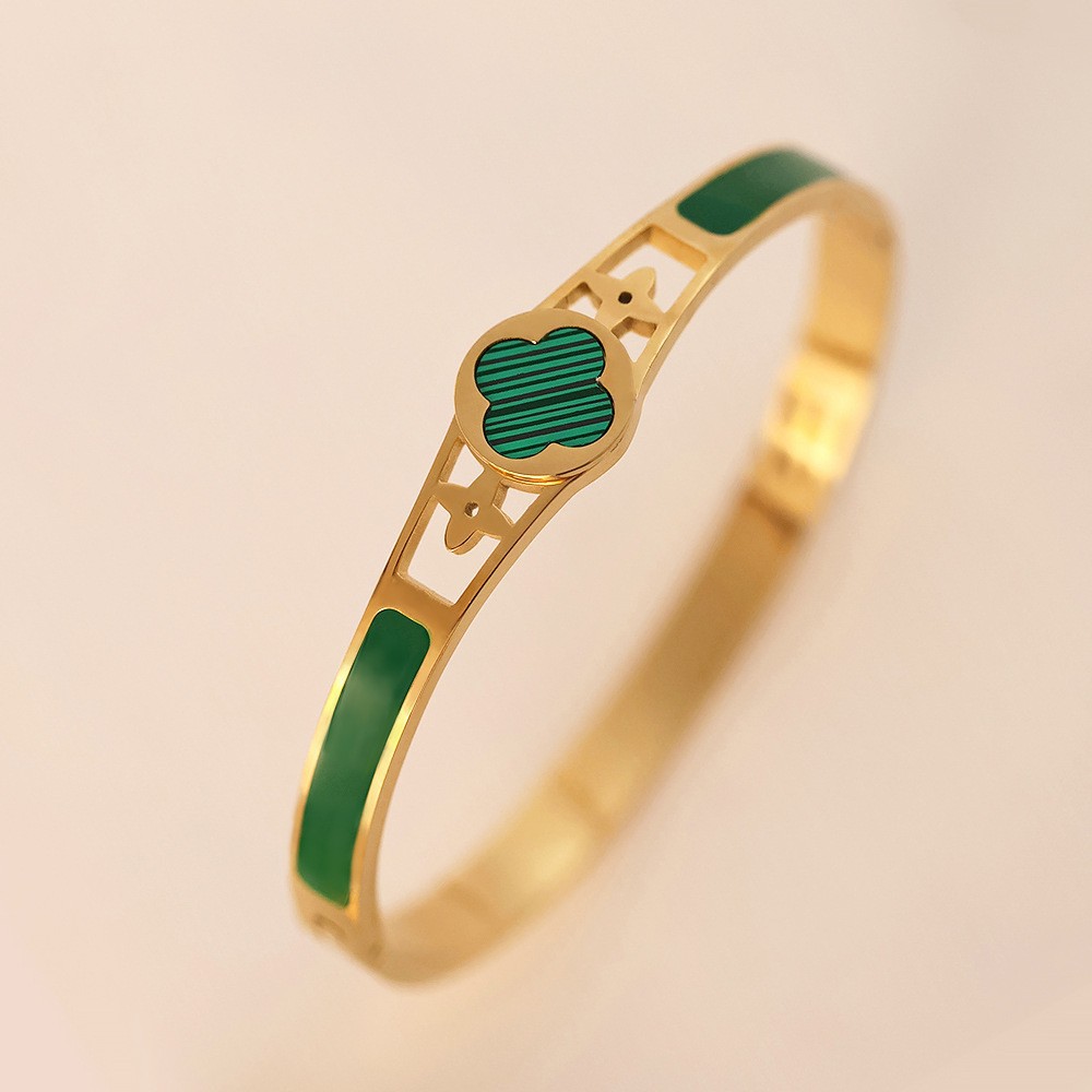 Женский браслет с четырехлистным клевером, покрытый гальваническим покрытием, не выцветает, экологичный, европейский и американский стиль, золотой зеркальный браслет с четырехлистным клевером