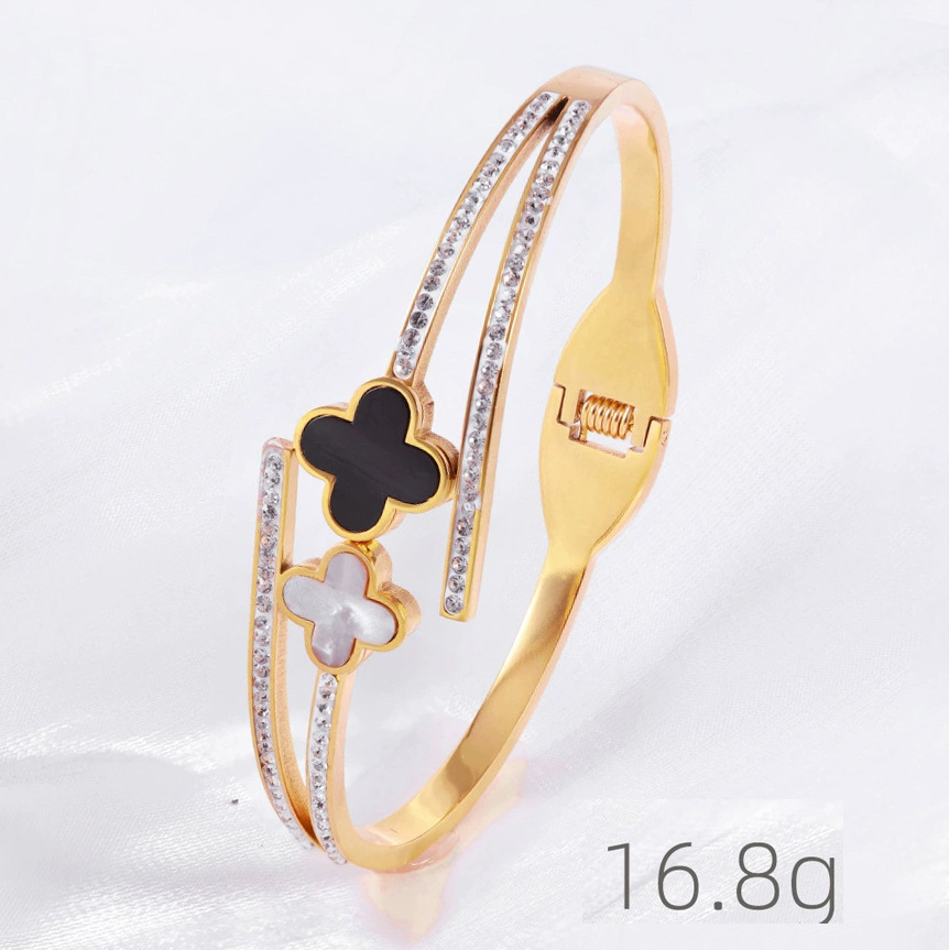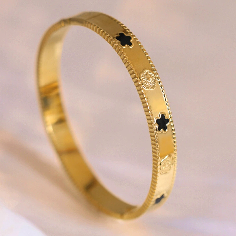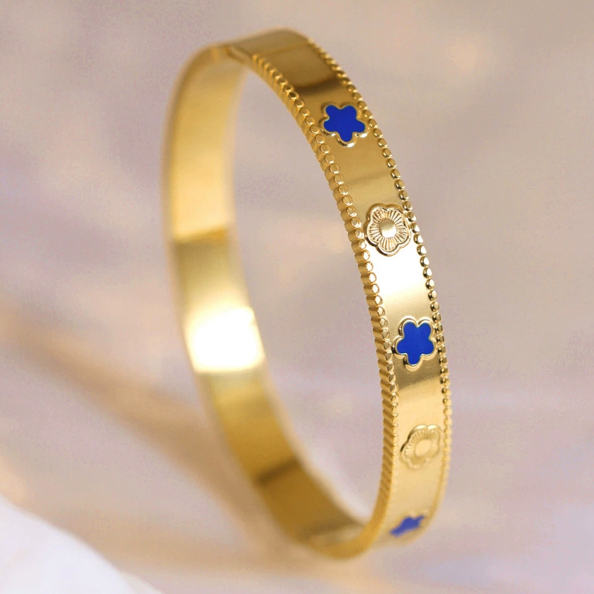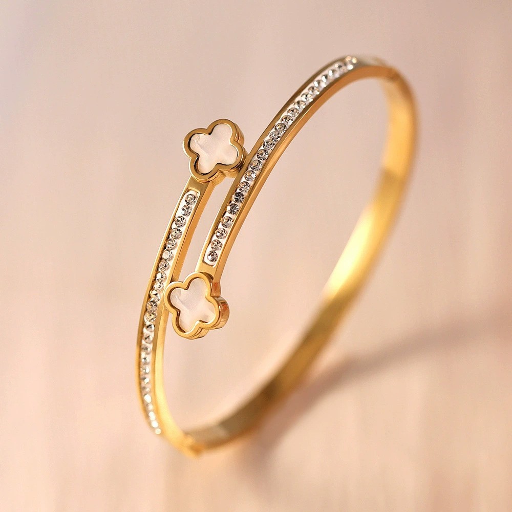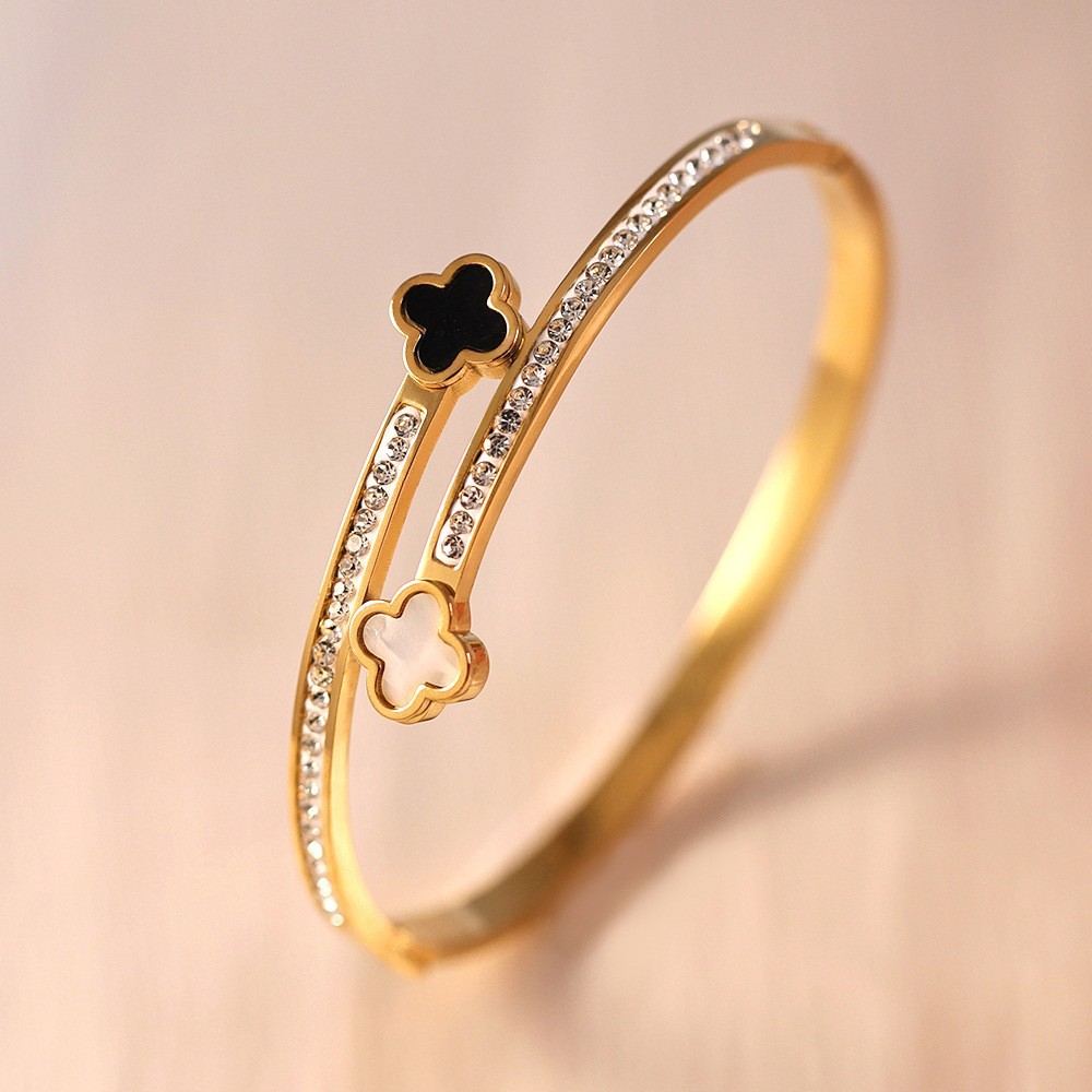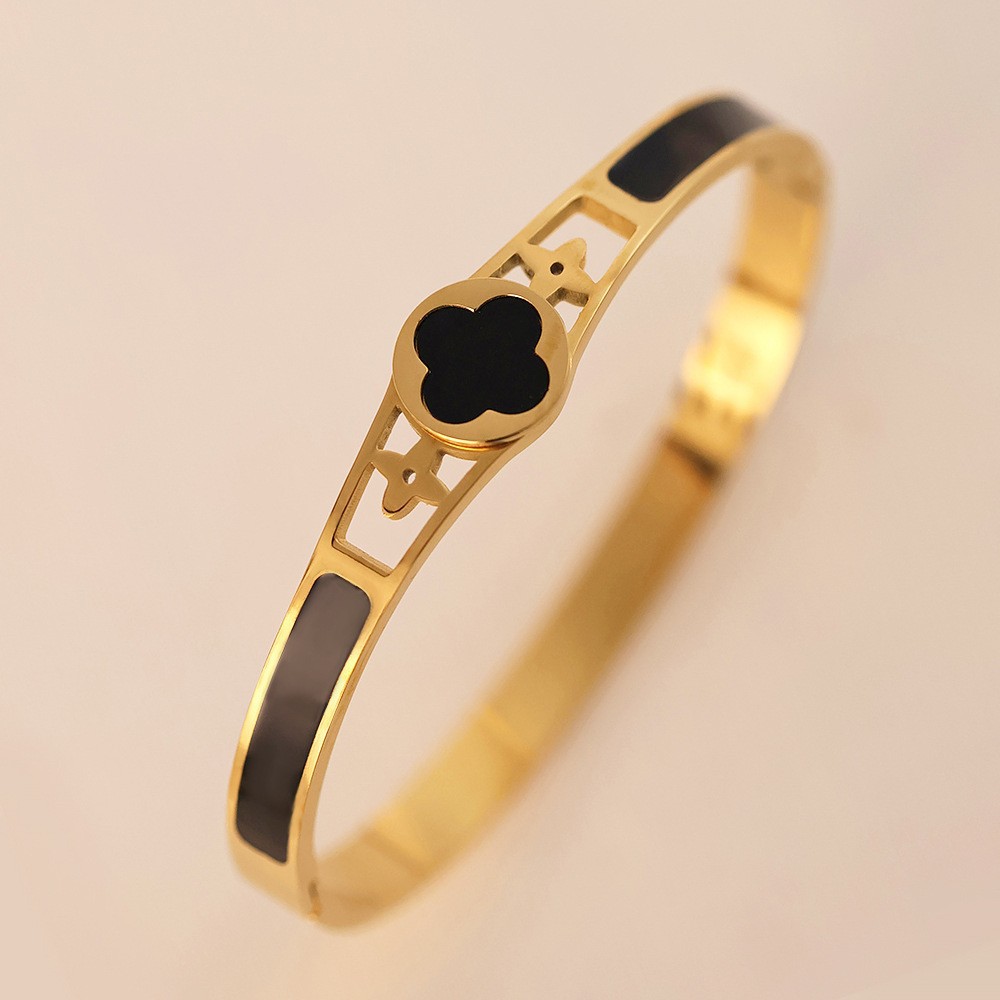 Женский браслет с четырехлистным клевером, покрытый гальваническим покрытием, не выцветает, экологичный, европейский и американский стиль, золотой зеркальный браслет с четырехлистным клевером