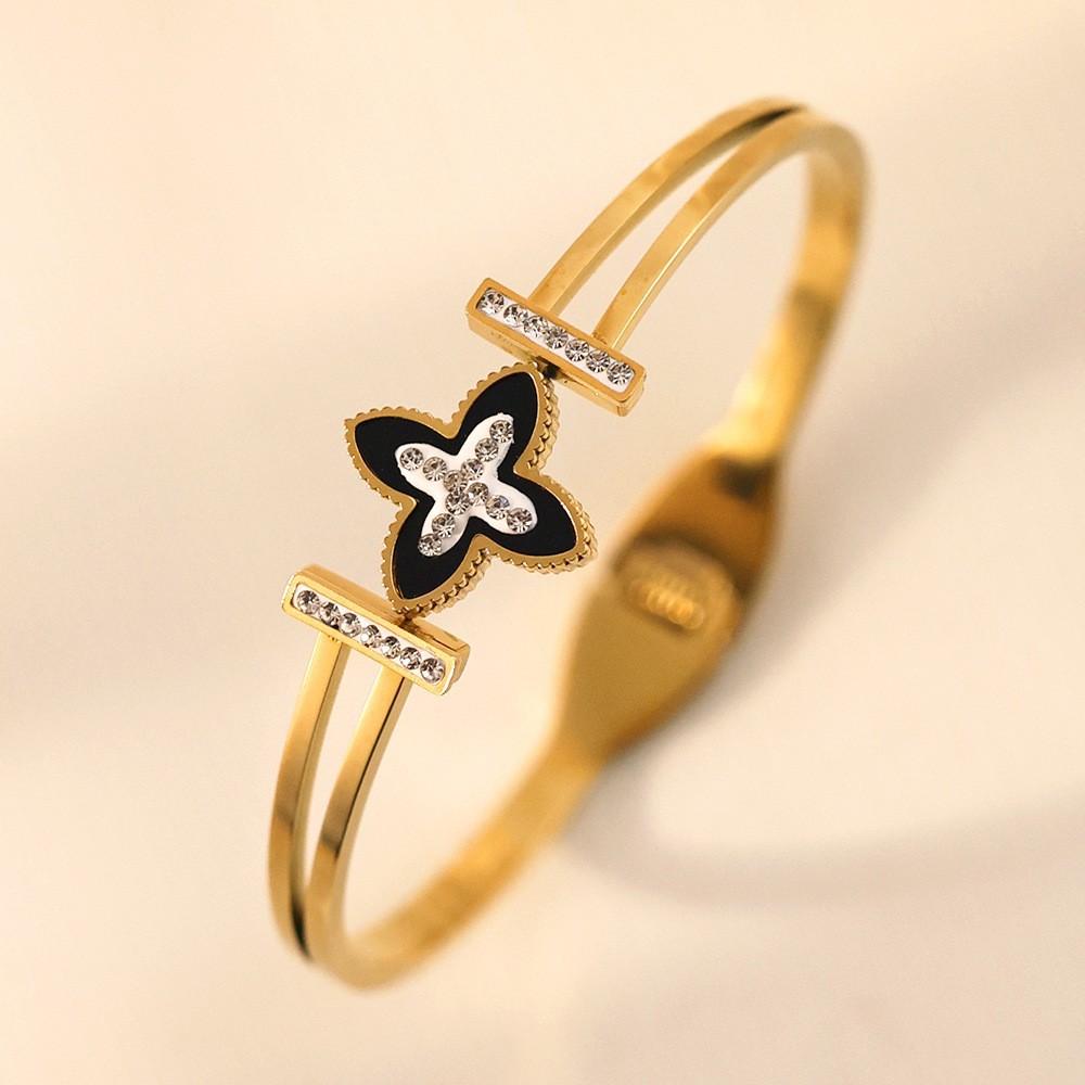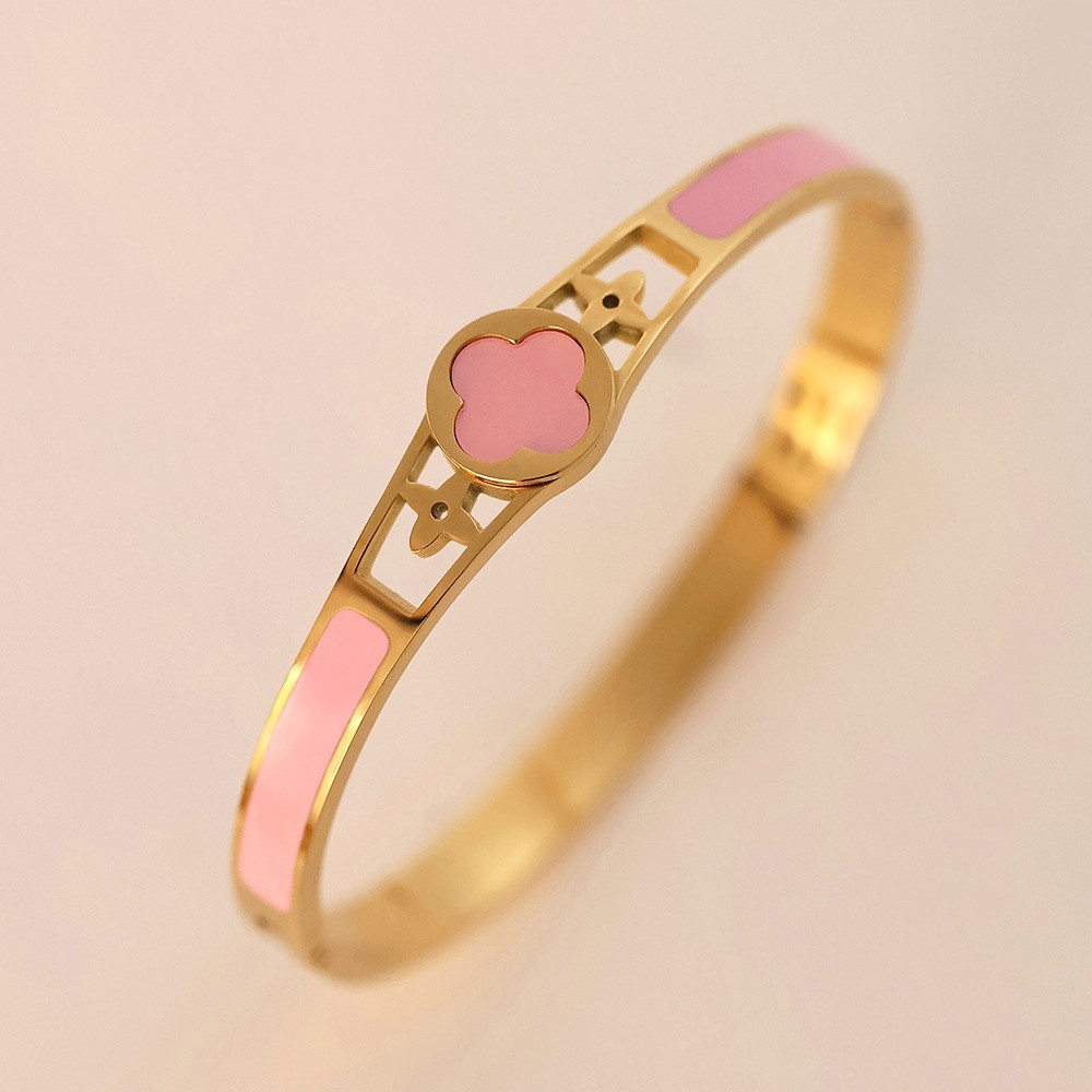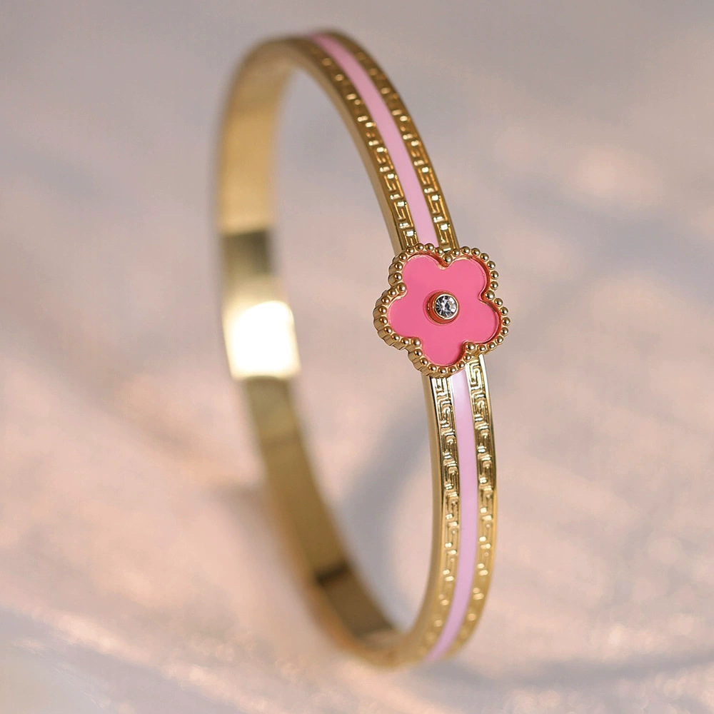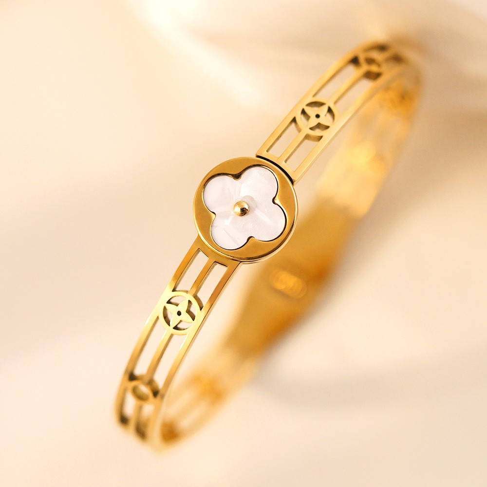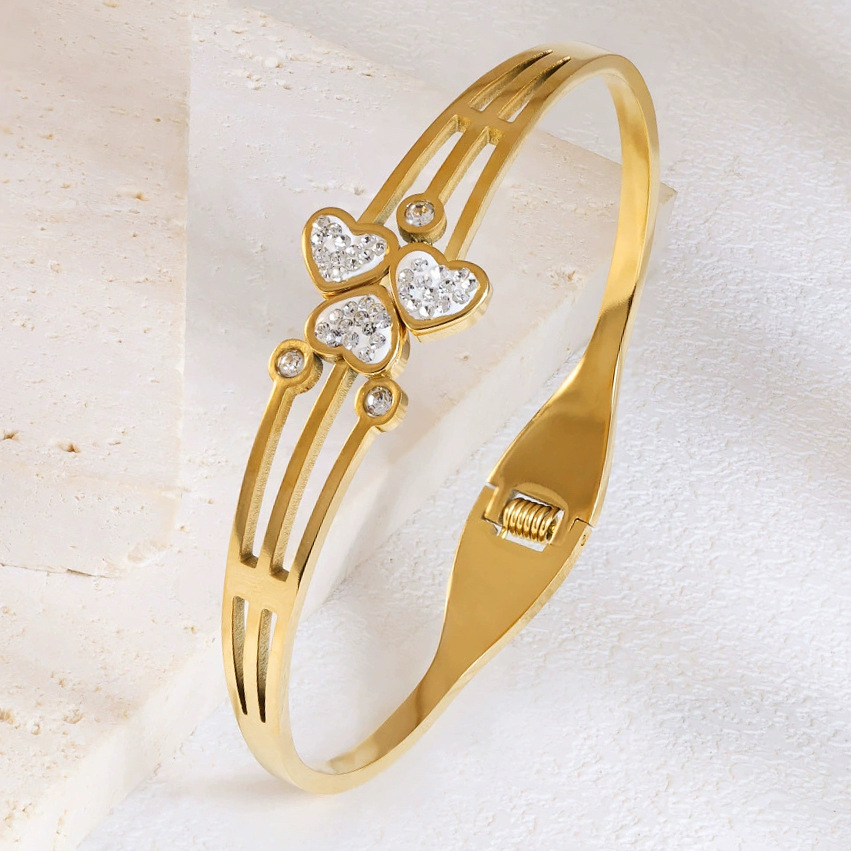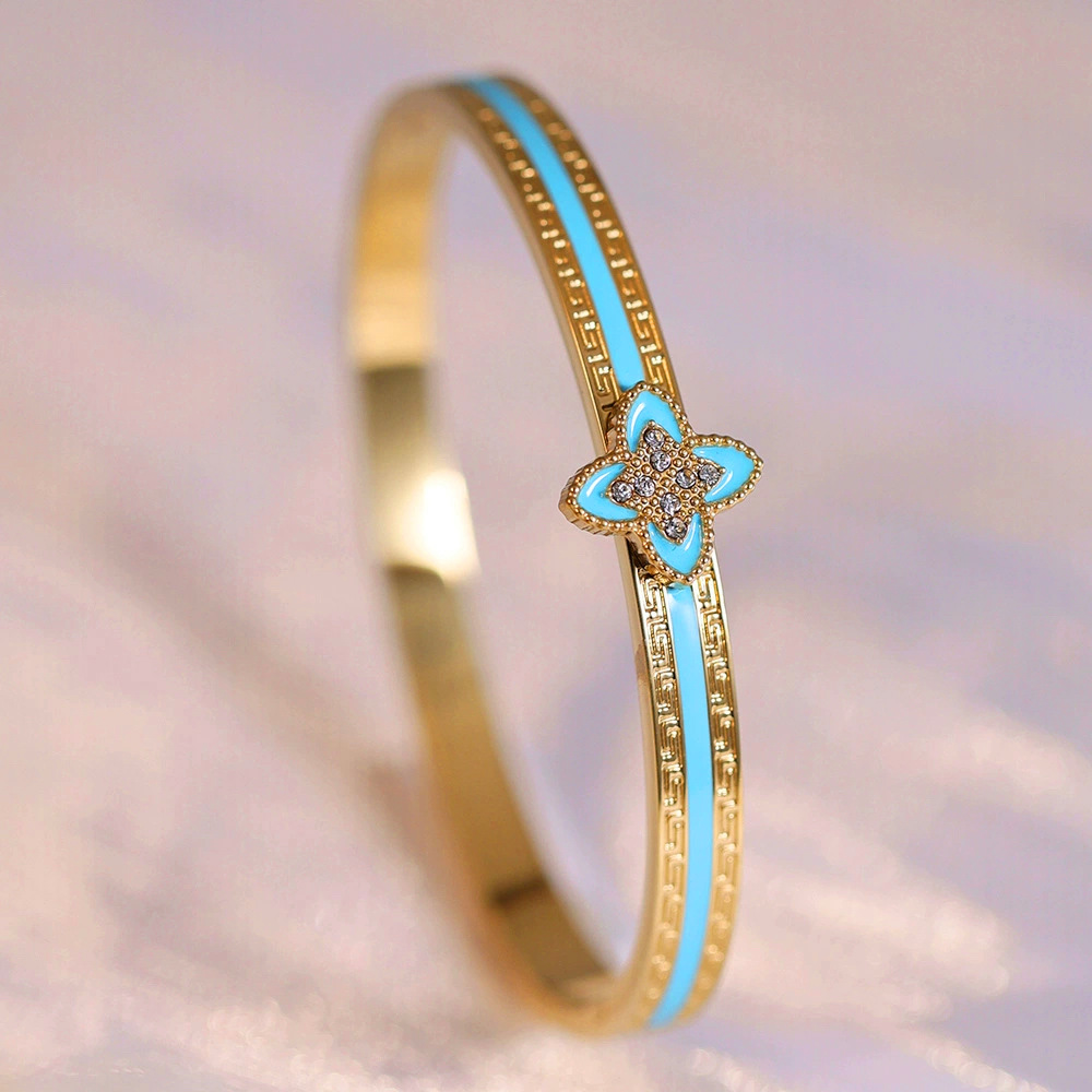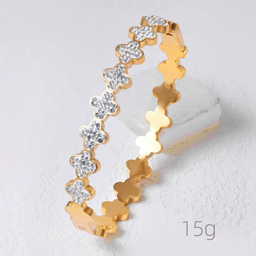 Женский браслет с четырехлистным клевером, покрытый гальваническим покрытием, не выцветает, экологичный, европейский и американский стиль, золотой зеркальный браслет с четырехлистным клевером