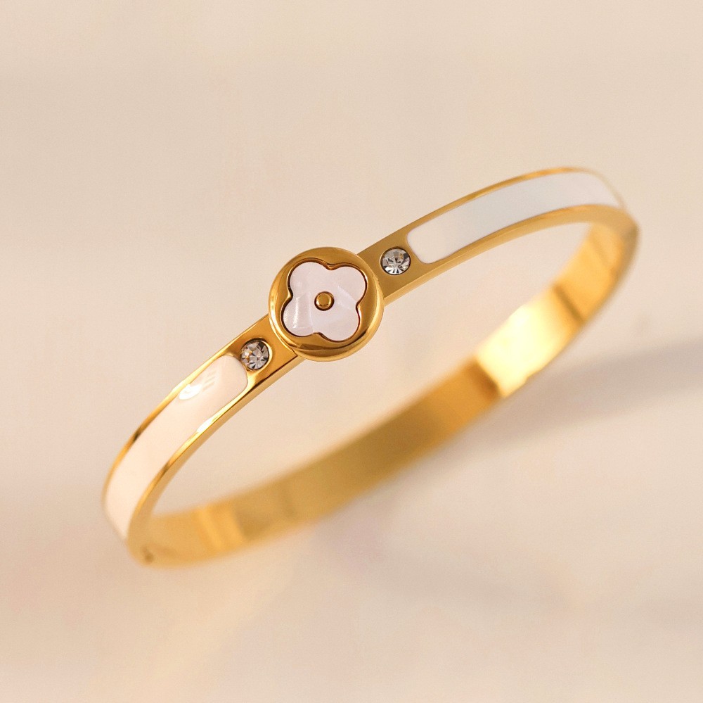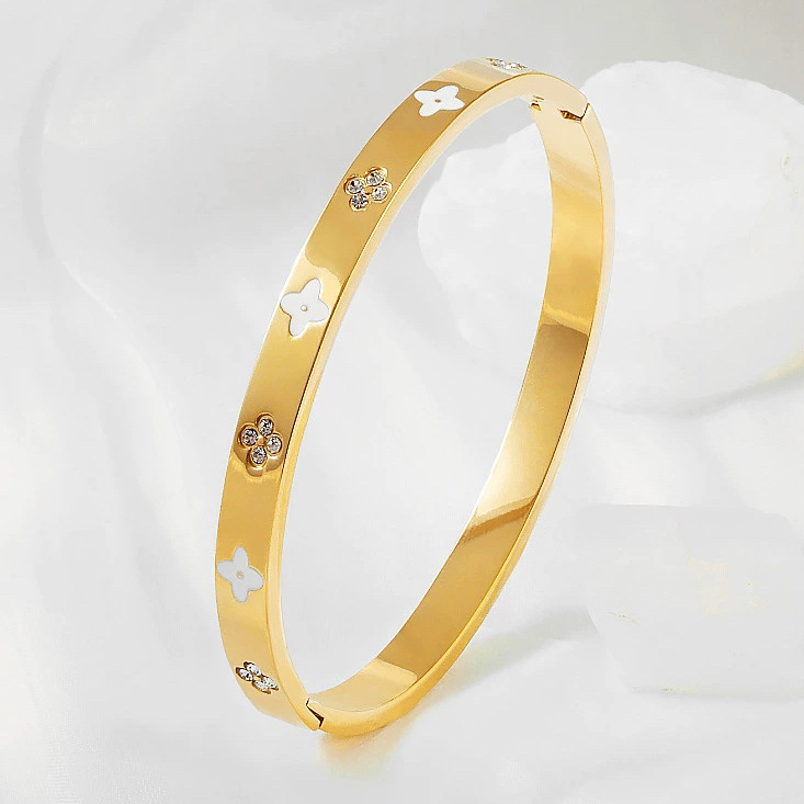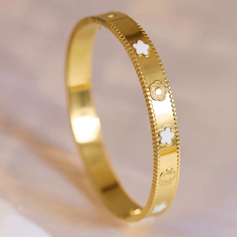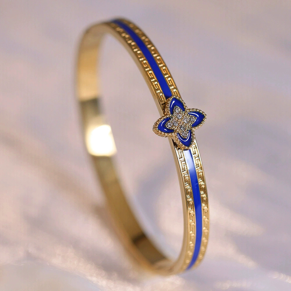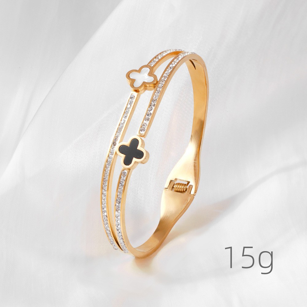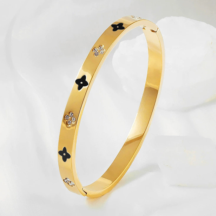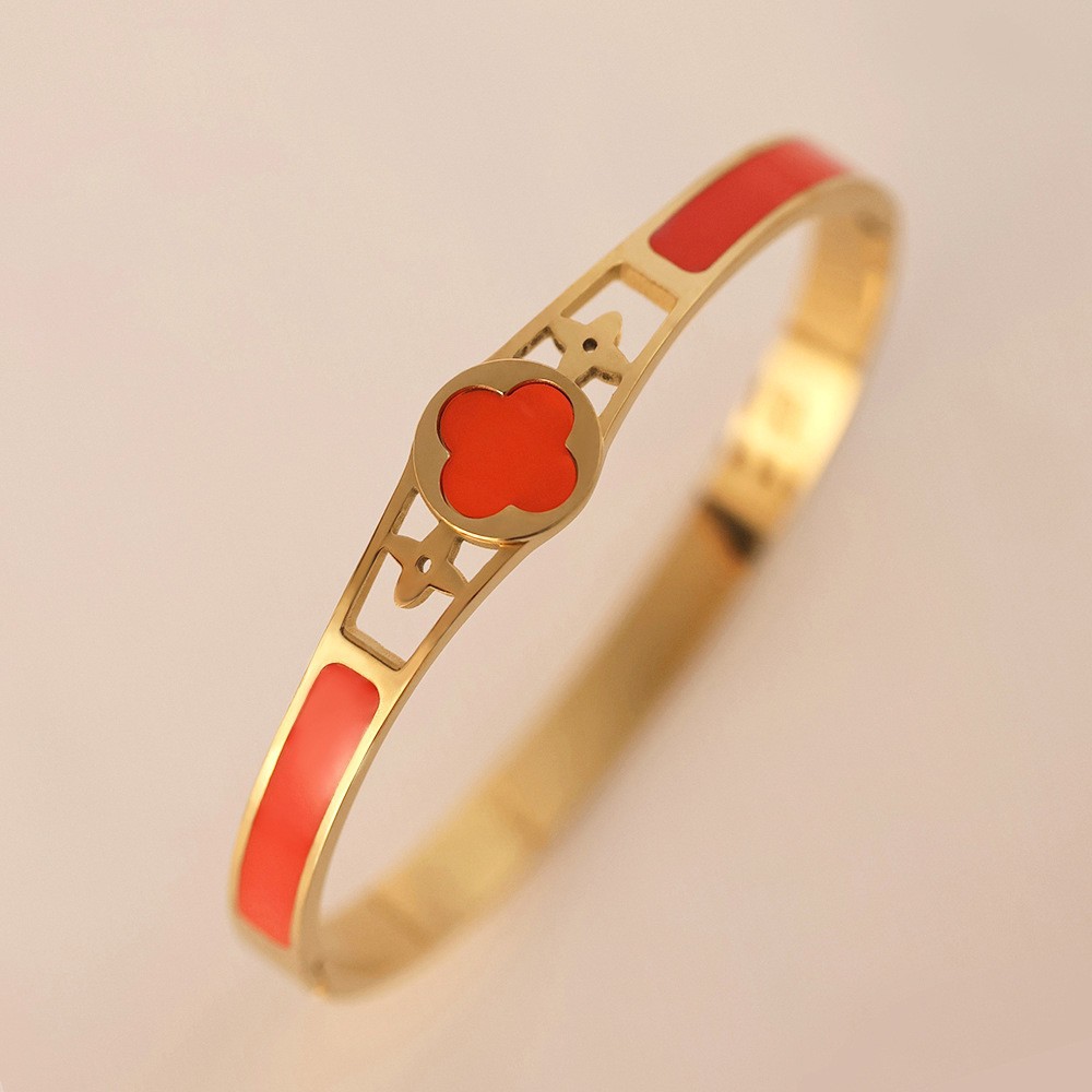 Женский браслет с четырехлистным клевером, покрытый гальваническим покрытием, не выцветает, экологичный, европейский и американский стиль, золотой зеркальный браслет с четырехлистным клевером