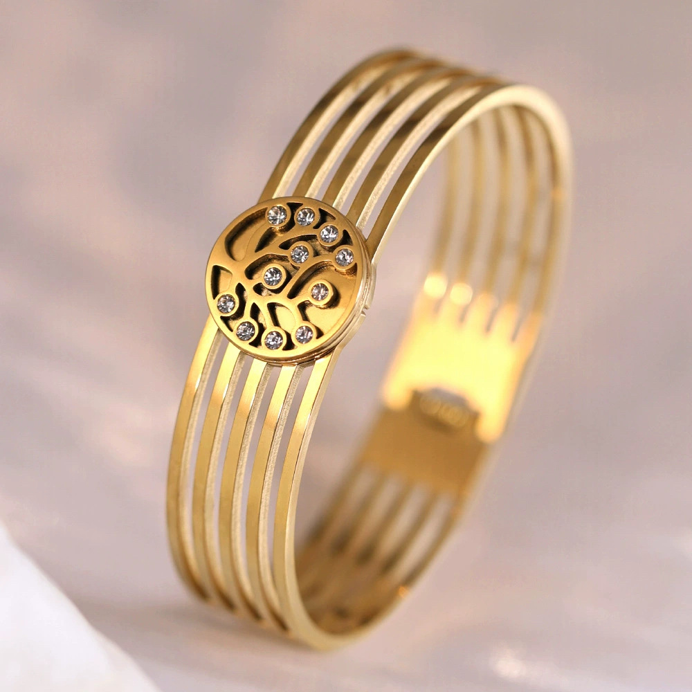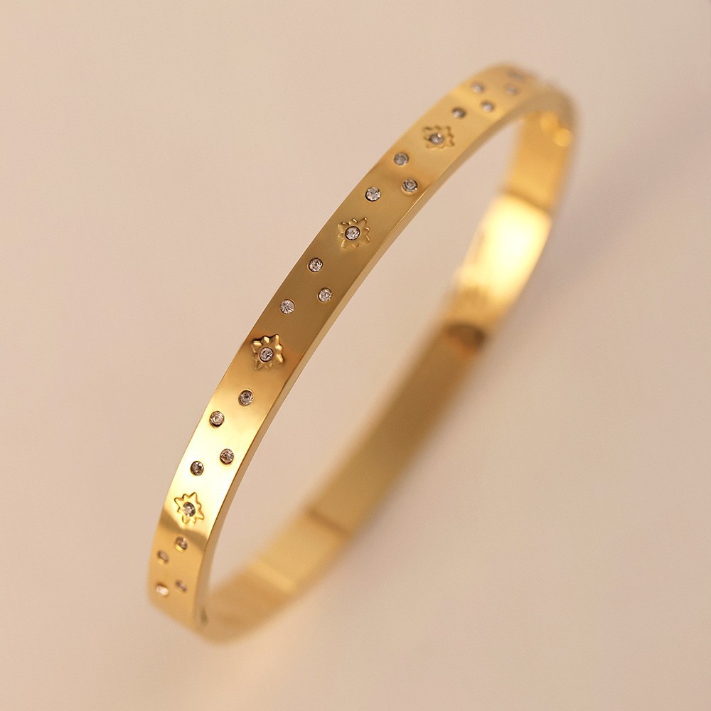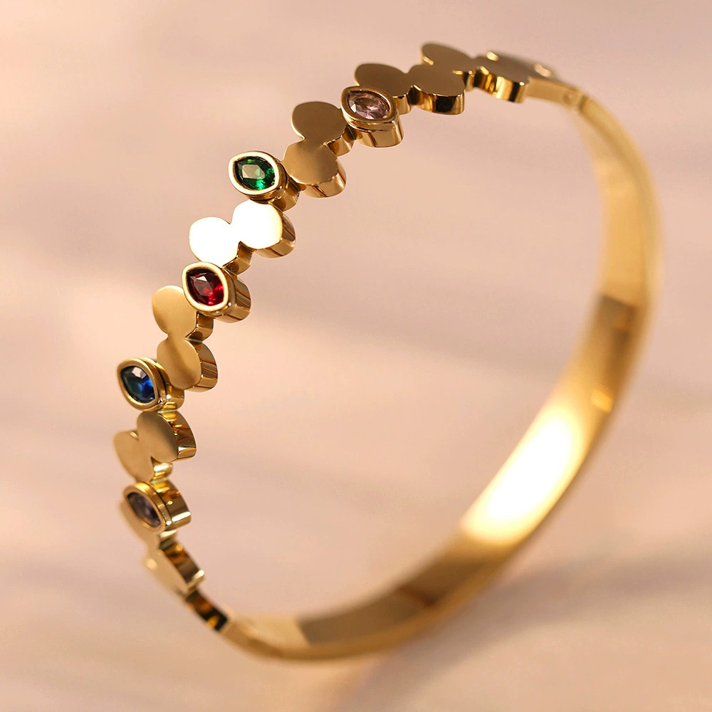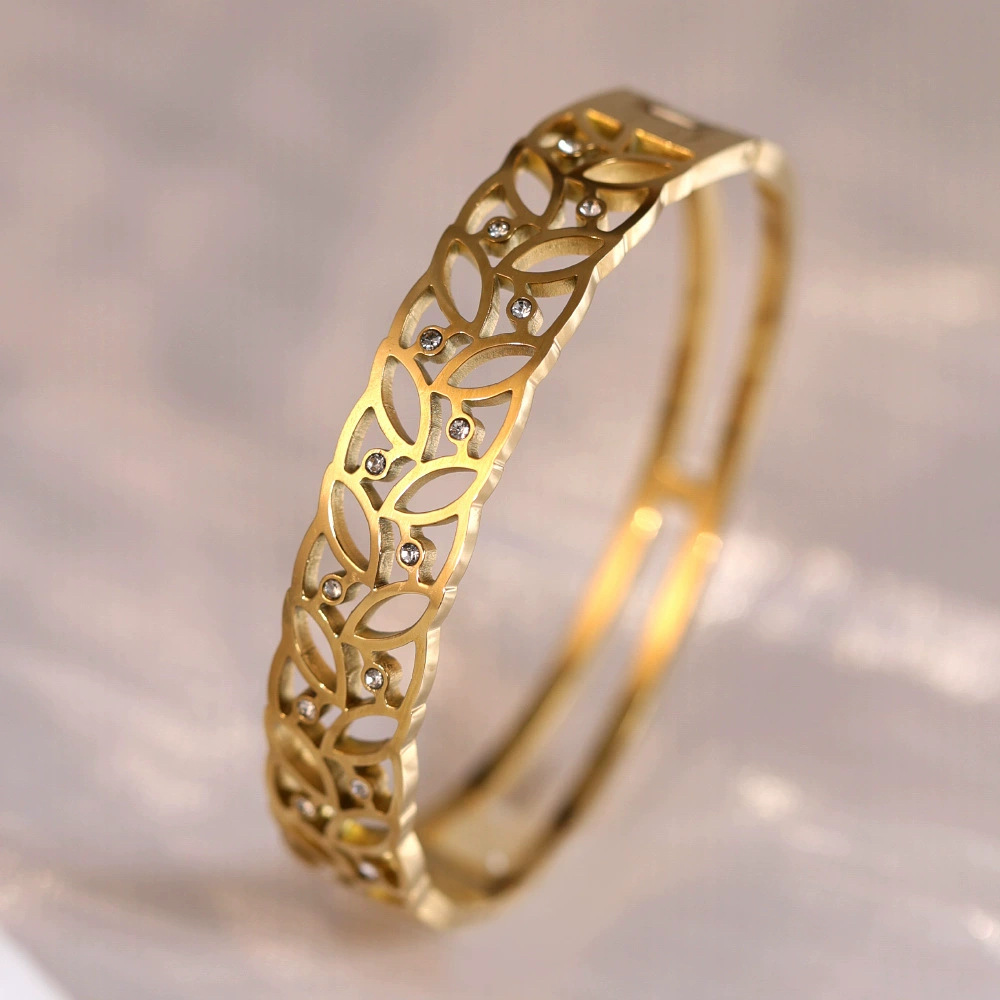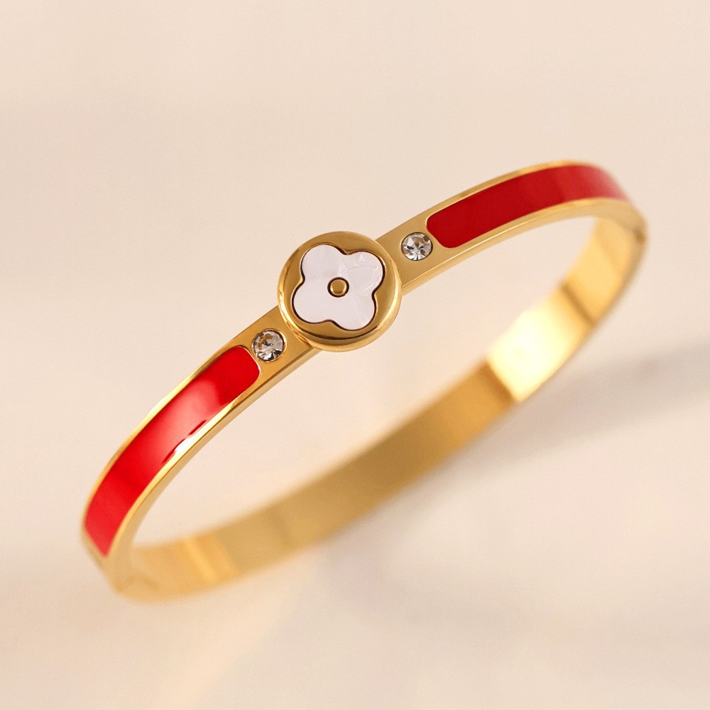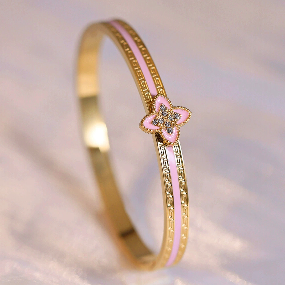 Женский браслет с четырехлистным клевером, покрытый гальваническим покрытием, не выцветает, экологичный, европейский и американский стиль, золотой зеркальный браслет с четырехлистным клевером