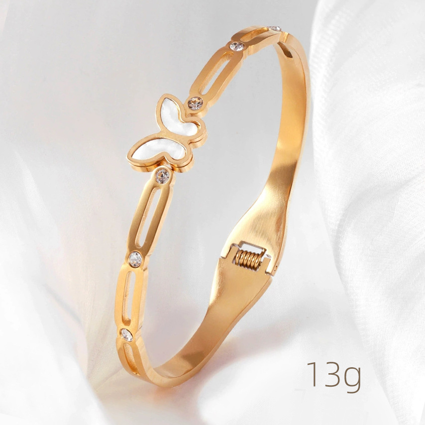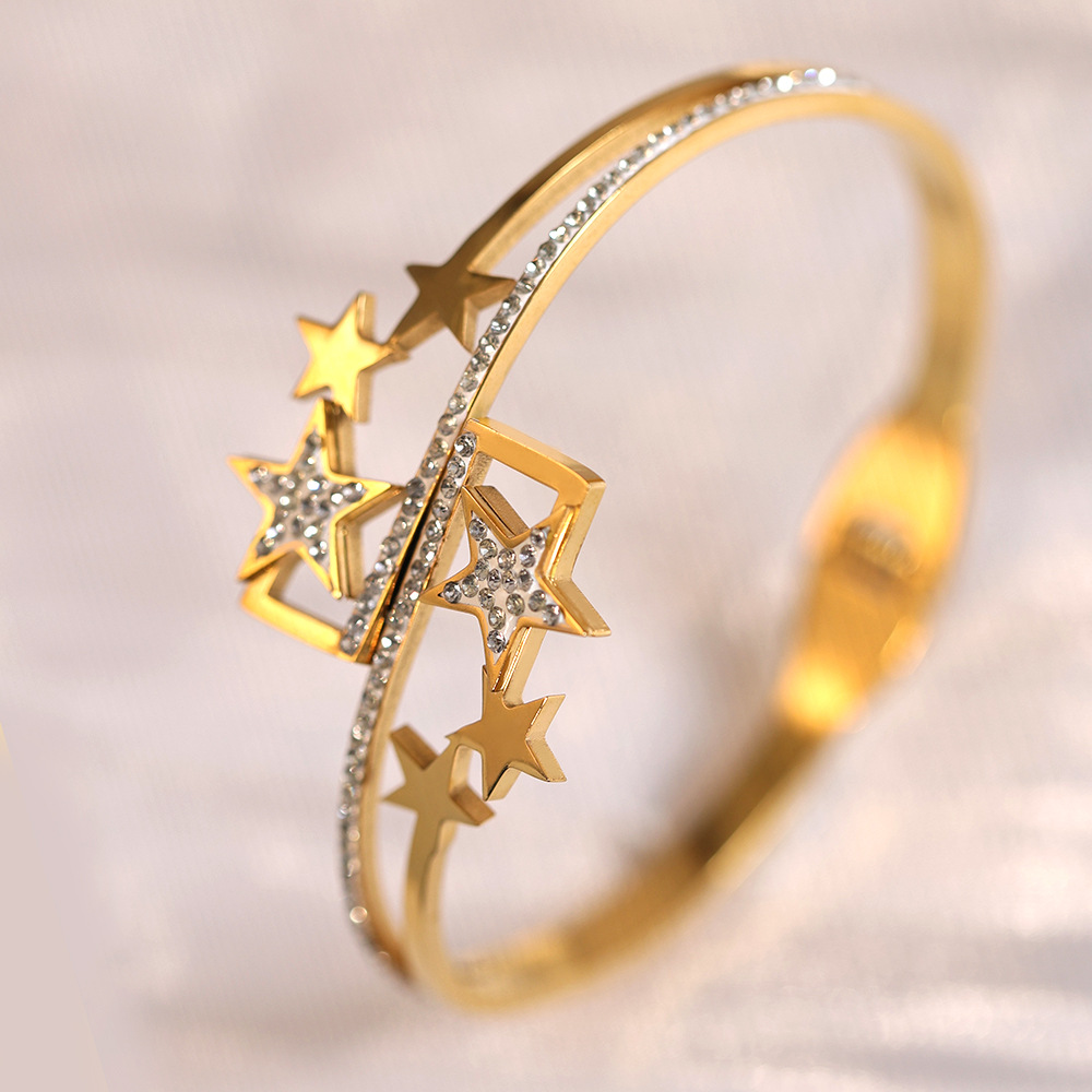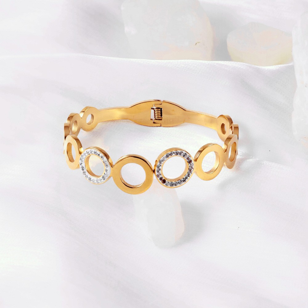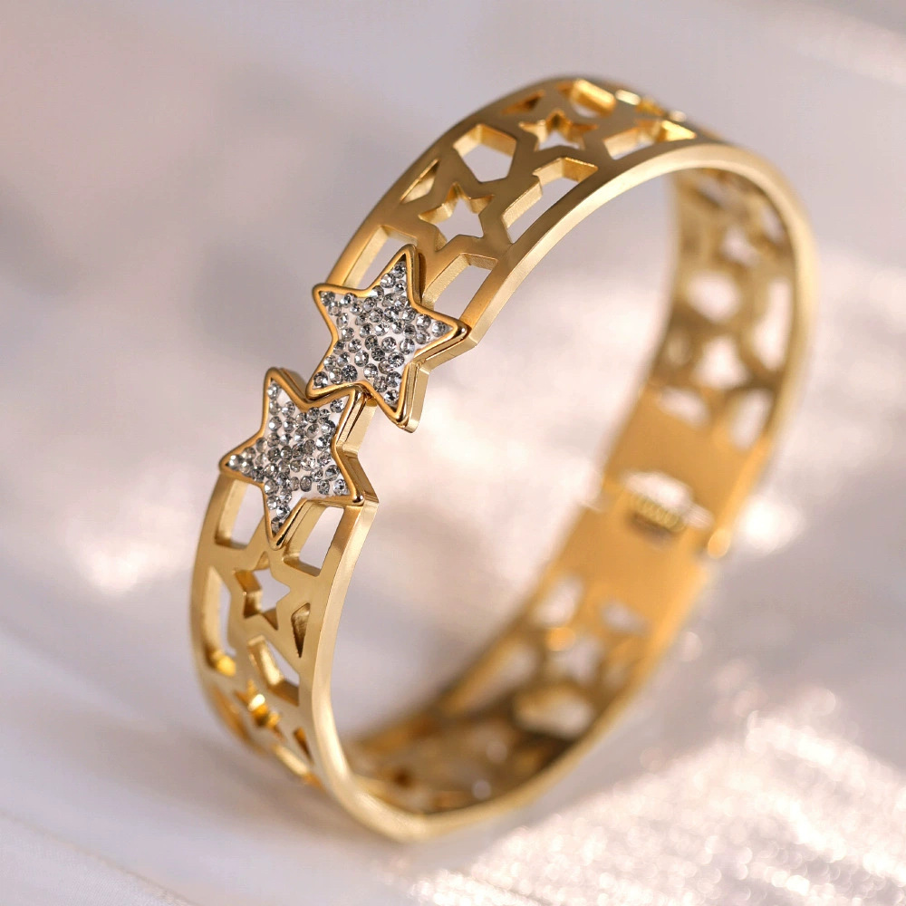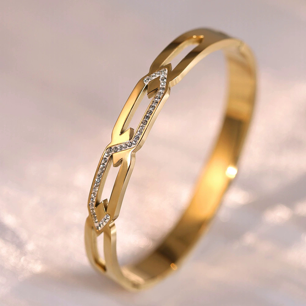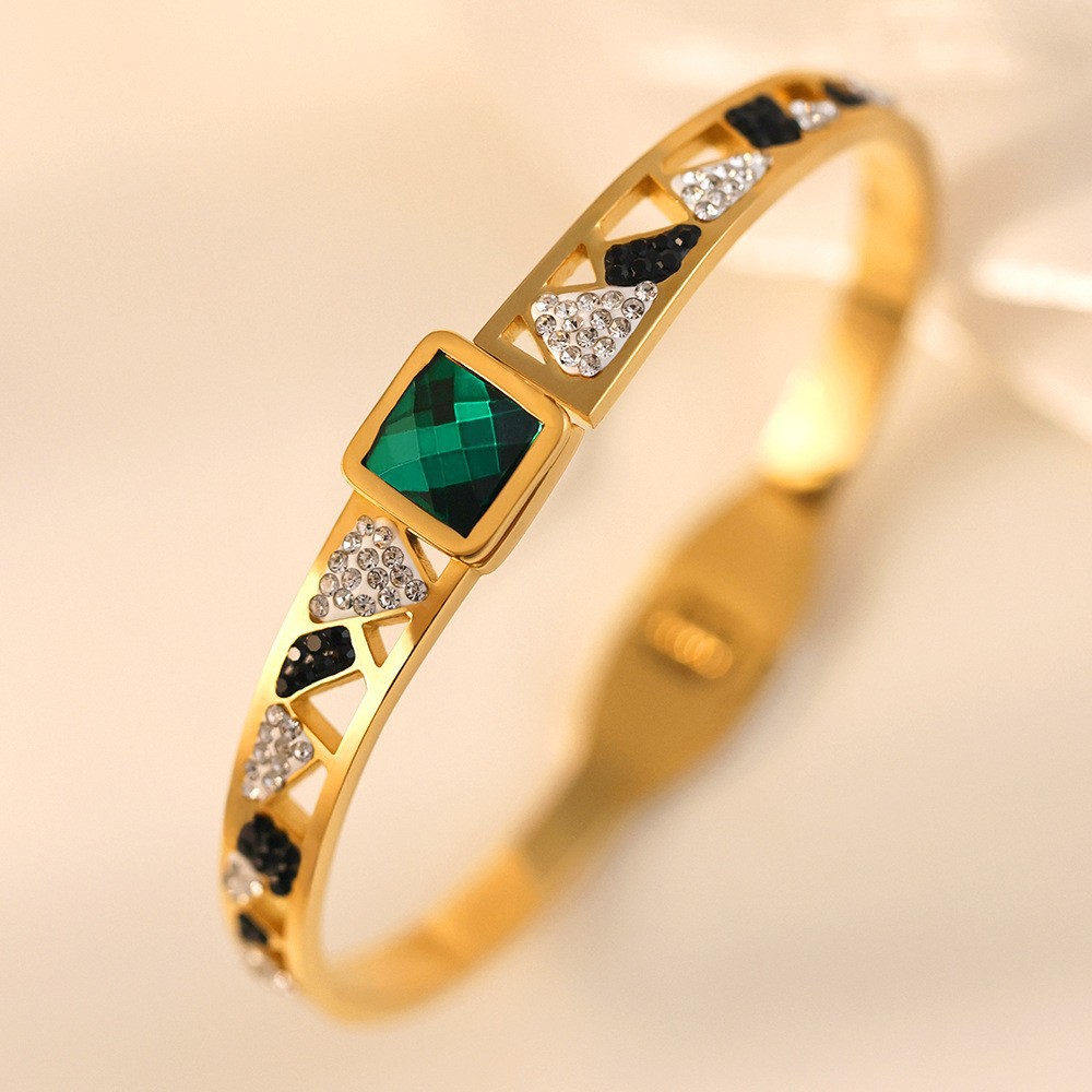 Женский браслет с четырехлистным клевером, покрытый гальваническим покрытием, не выцветает, экологичный, европейский и американский стиль, золотой зеркальный браслет с четырехлистным клевером