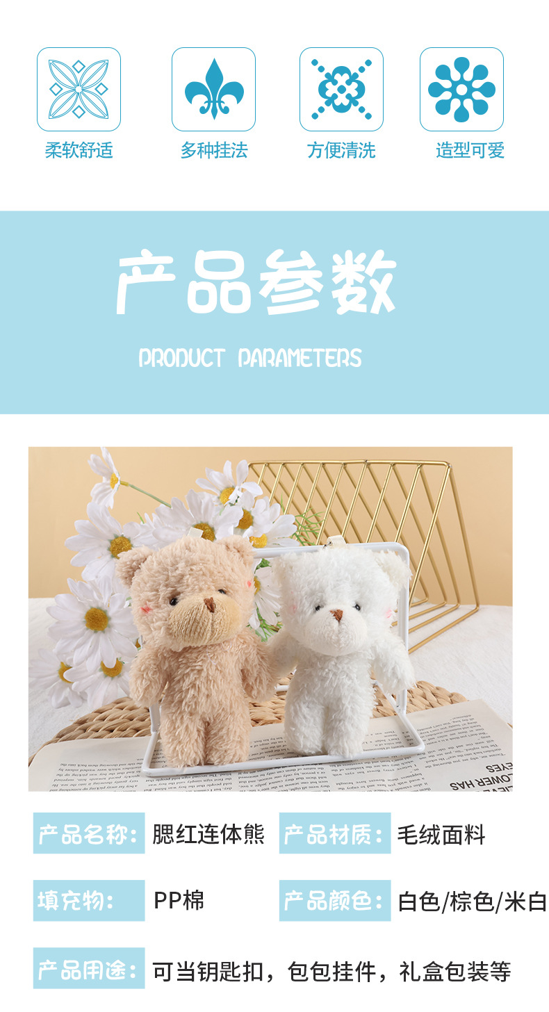Милый мультяшный румянец, цельный медведь, кремовый плюшевый медведь, цепочка из бисера, сумка для мобильного телефона, брелок, подвеска, оптовая продажа