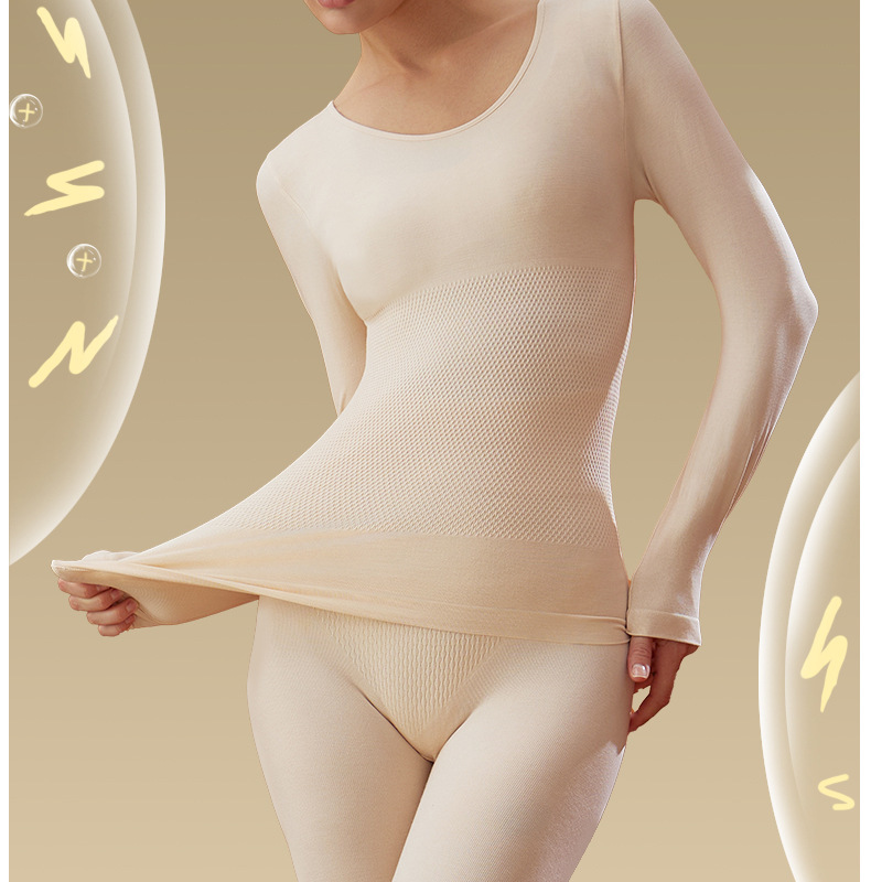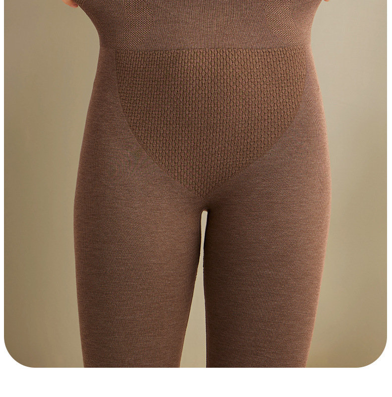 Женский комплект термобелья для коррекции фигуры, больших размеров, утолщенный, высокоэластичный, с круглым вырезом, бесшовный, осенний комплект (топ и леггинсы).