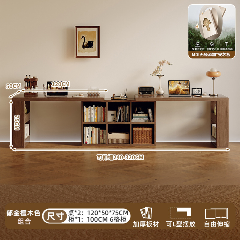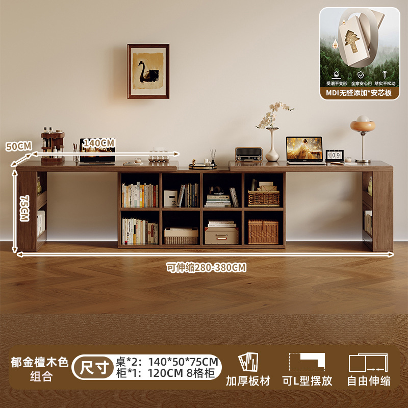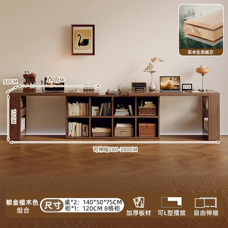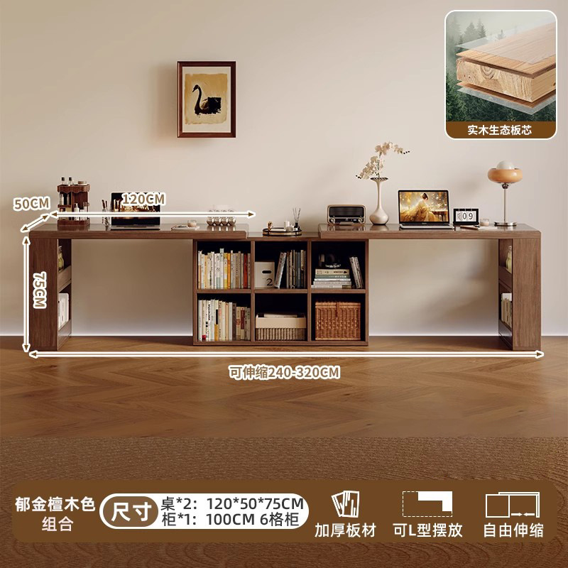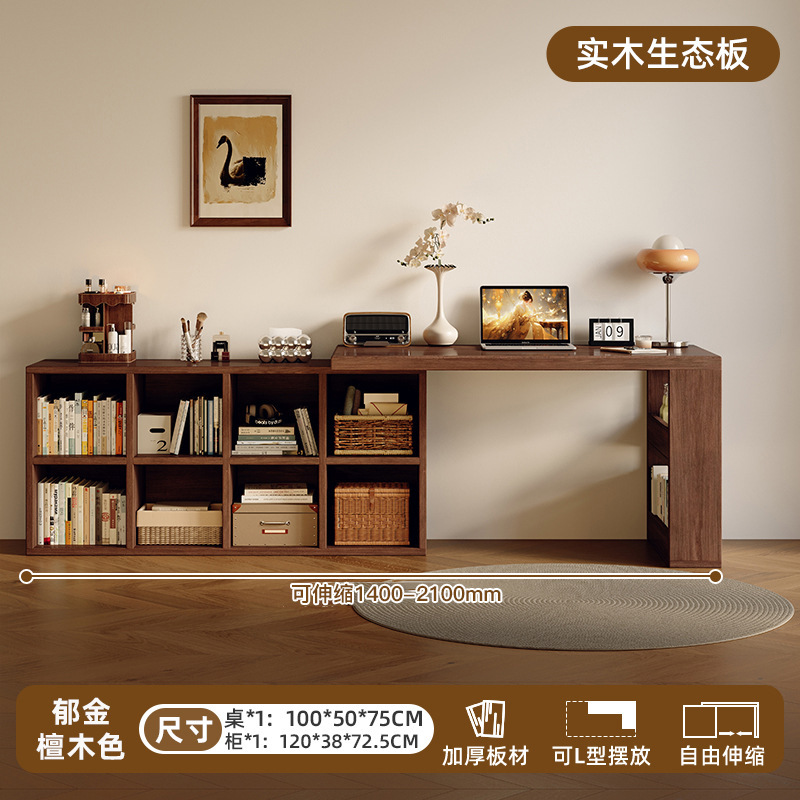 Двойной стол из цельного дерева, домашний учебный стол для взрослых, длинный стол для спальни, шкаф для хранения, встроенный выдвижной компьютерный стол