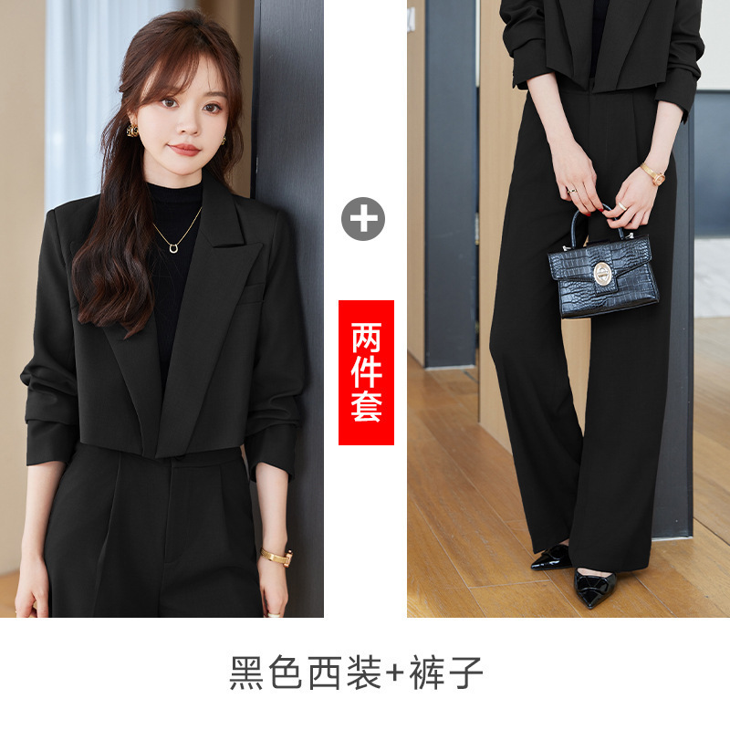 Миниатюрный модный короткий блейзер, профессиональный наряд, элегантный стиль богини, маленький костюм, комплект с широкими брюками, куртка, женский весенне-осенний комплект