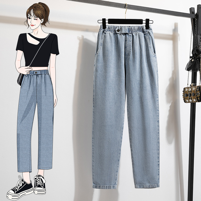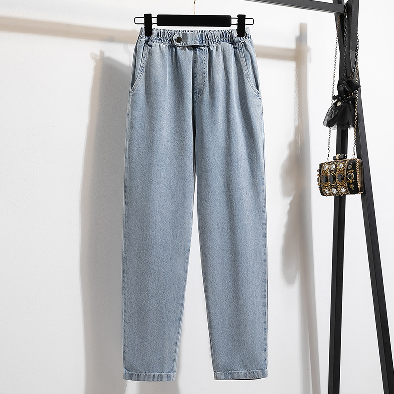 Настоящая фотография женских джинсовых брюк из тенселя с девятью точками в летнем тонком новом стиле, ультратонкие женские брюки большого размера, повседневные шаровары