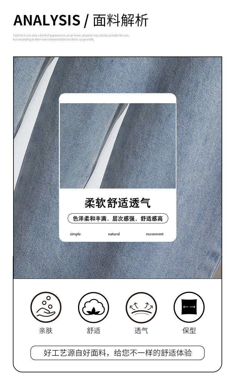 涤说明:建议反面轻柔洗涤,不宜用热水清洗,悬挂晾干,分色洗涤,以免衣服染色,