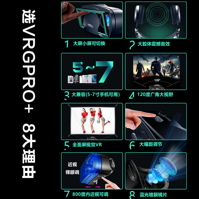 VR-очки для мобильных телефонов, 3D-кинотеатр виртуальной реальности, игры, стерео-очки VR с цифровым звуком