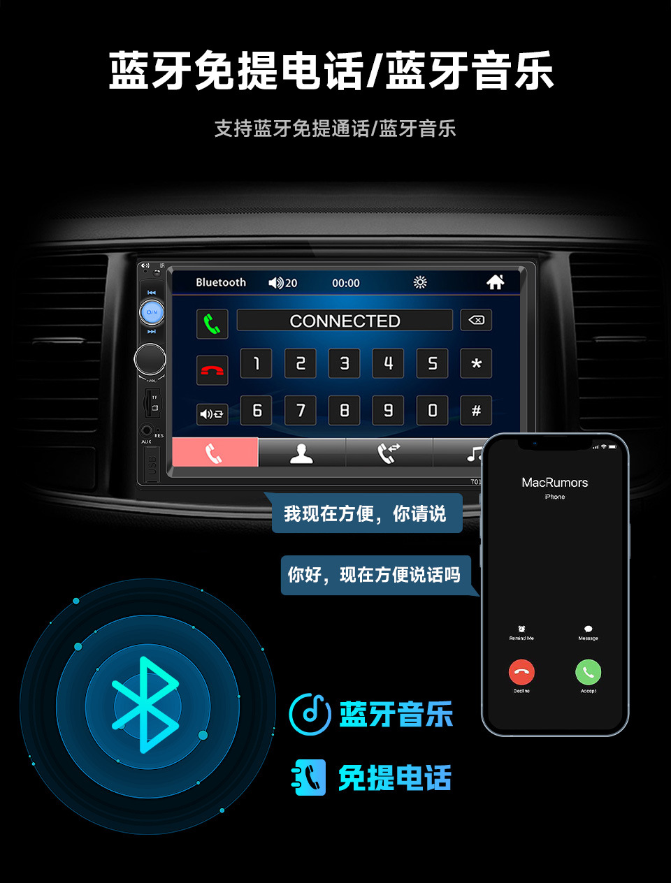 7010 7012 7018B автомобильный MP5 плеер с двойным шпинделем, машина для заднего вида, CarPlay, универсальная машина