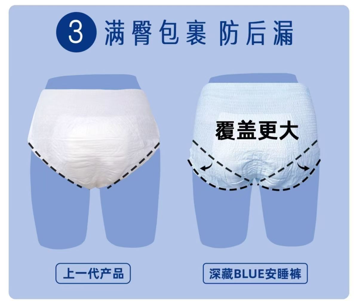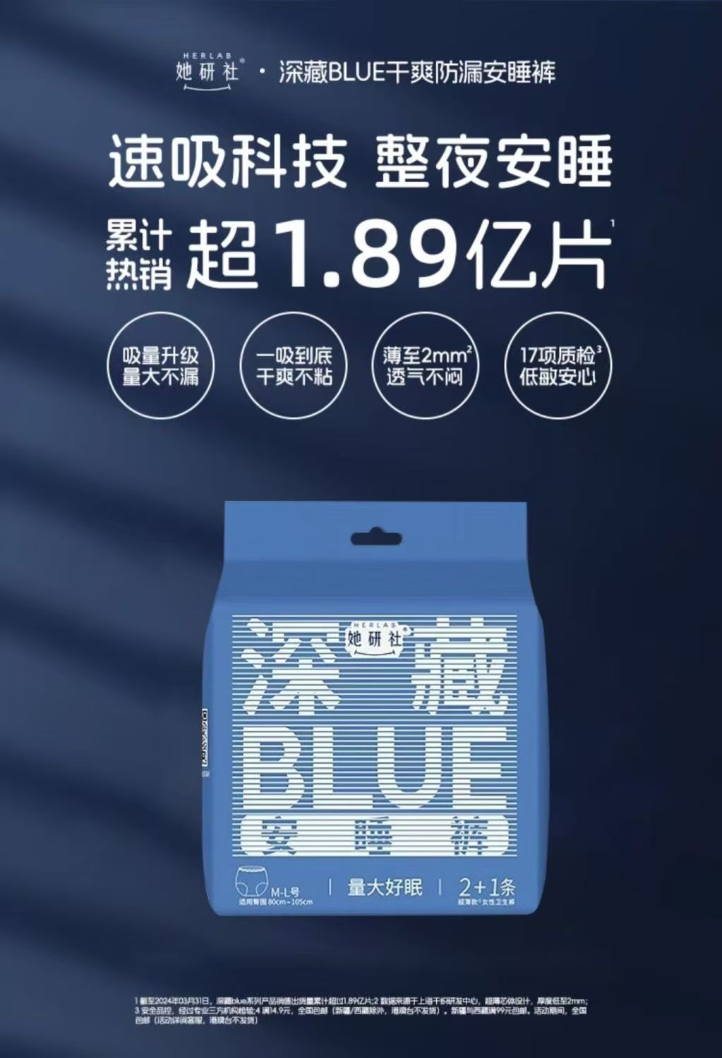 Глубоко скрытые синие брюки для сна She Research Institute — дышащие и герметичные ночные брюки для ночного использования, ультратонкие сухие гигиенические прокладки типа брюк.