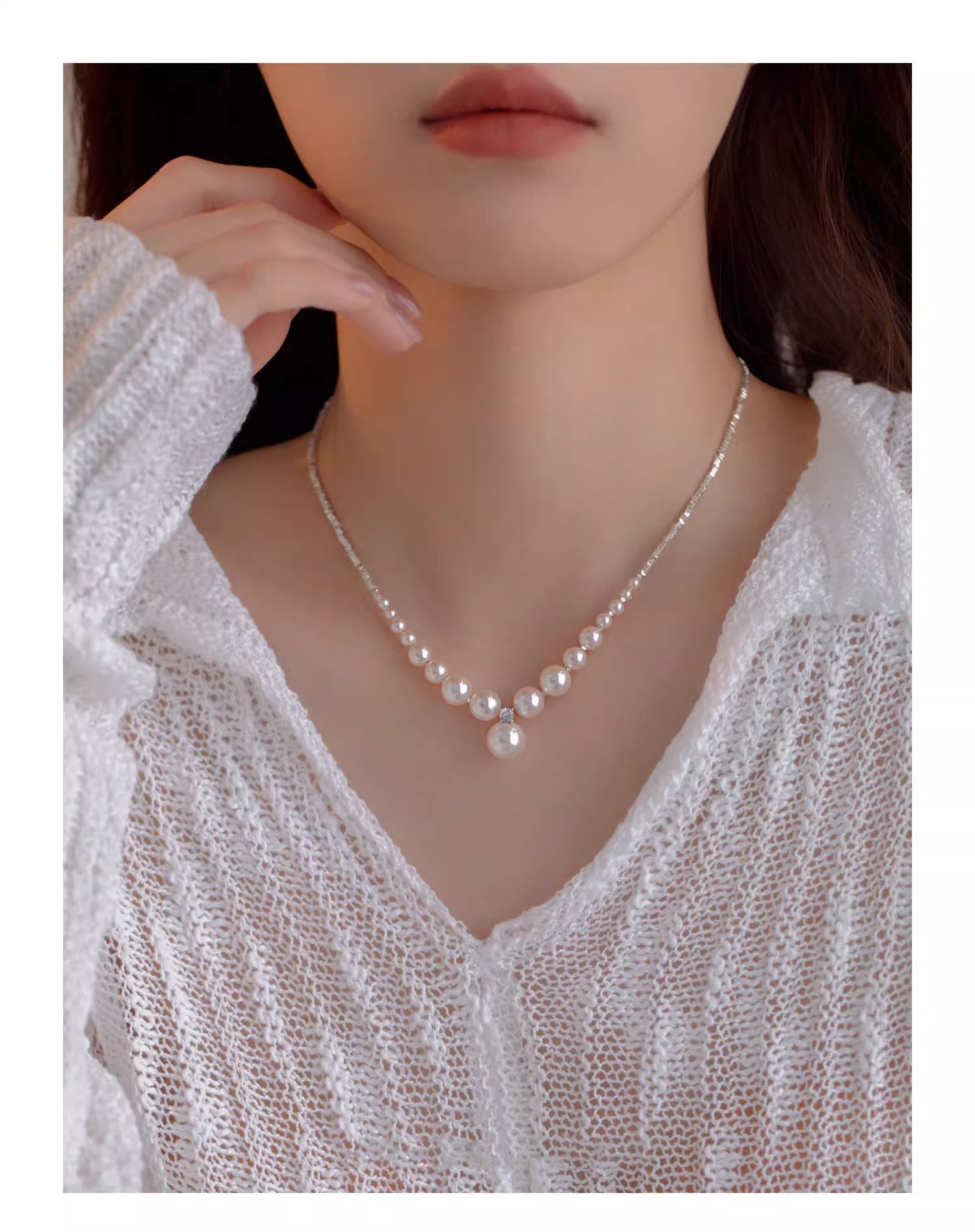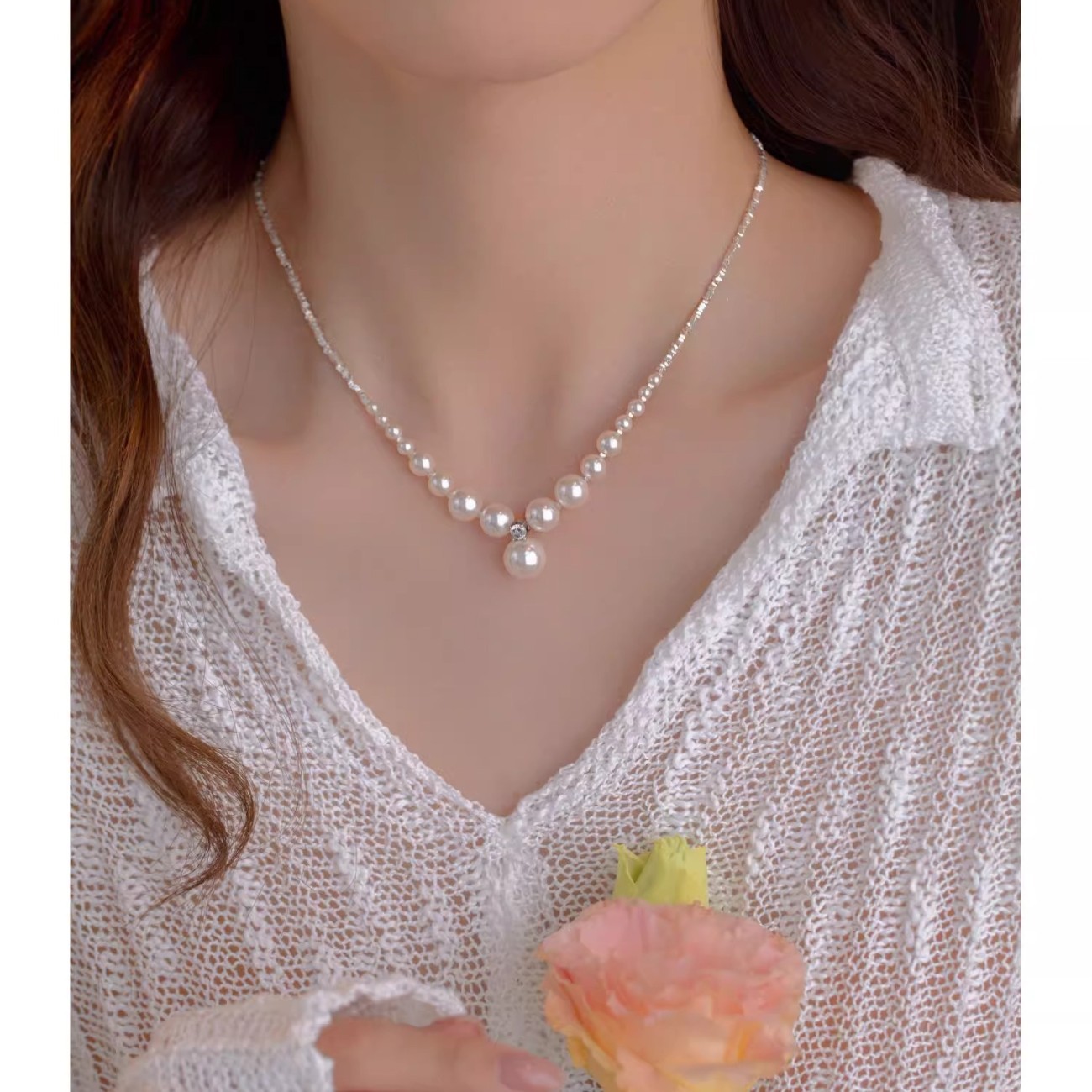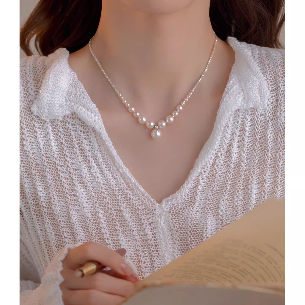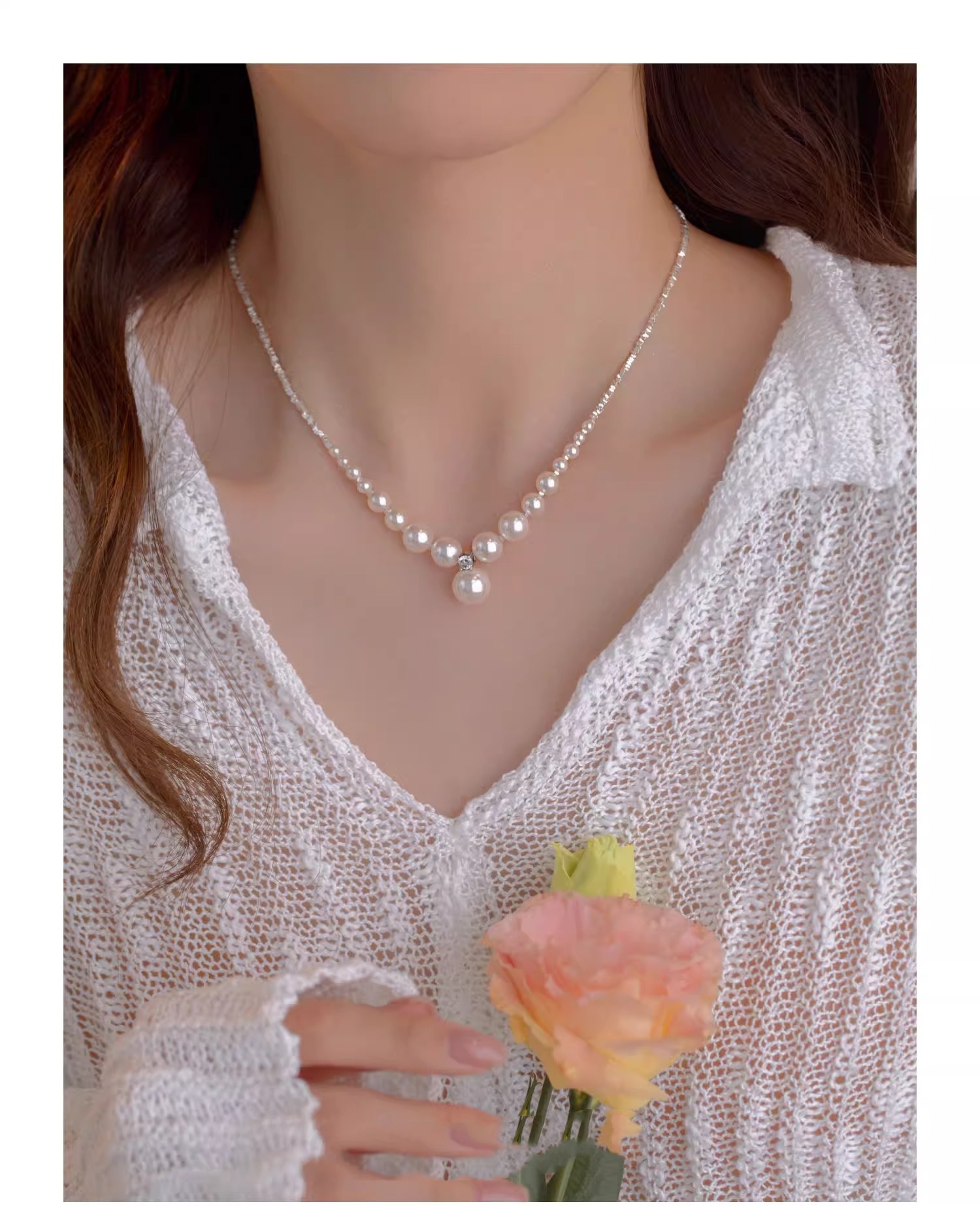 Серебряное жемчужное колье для женщин 2025 года. Новая популярная лёгкая роскошь, высококачественная цепочка на ключицу, нишевое колье.