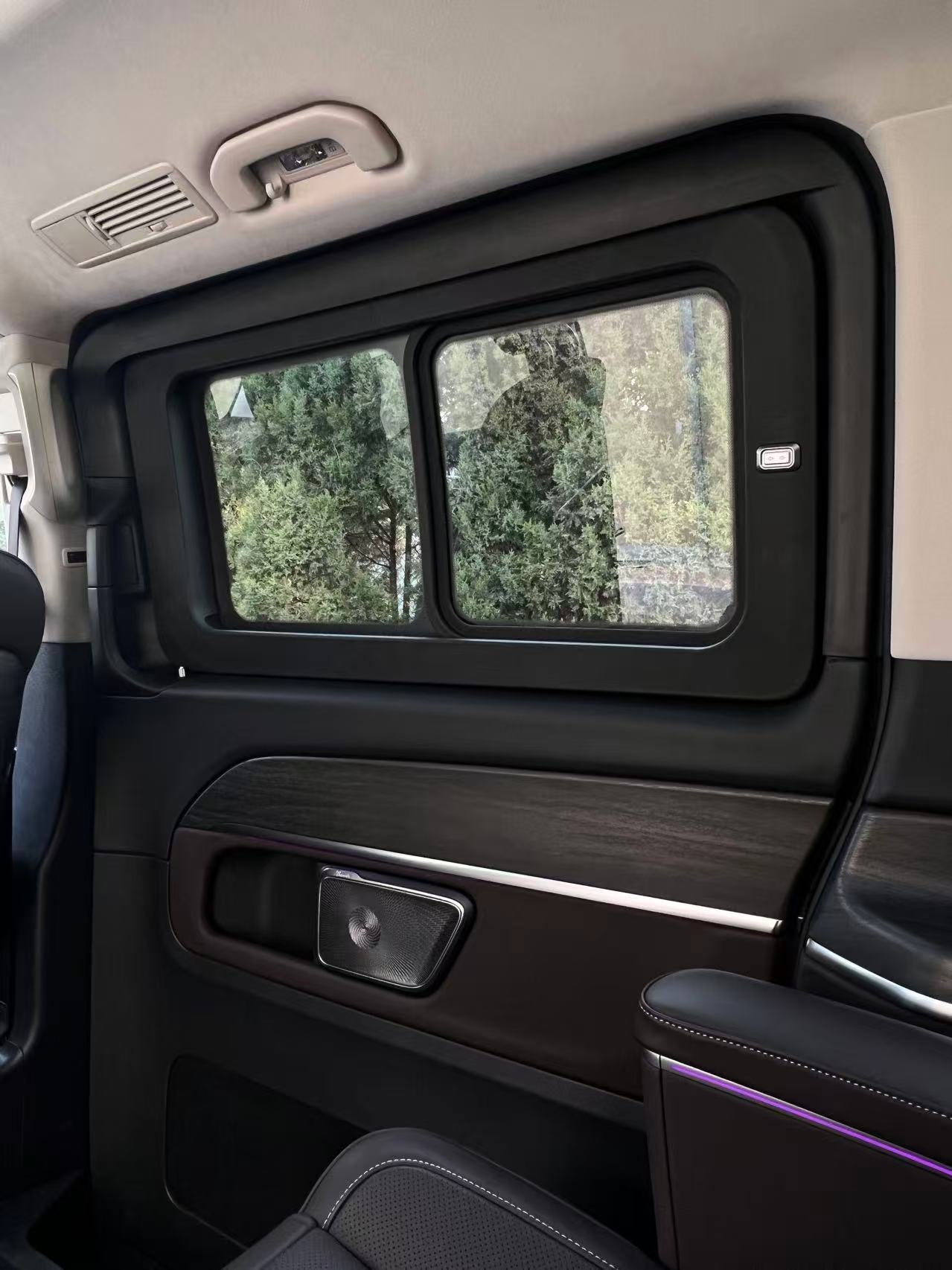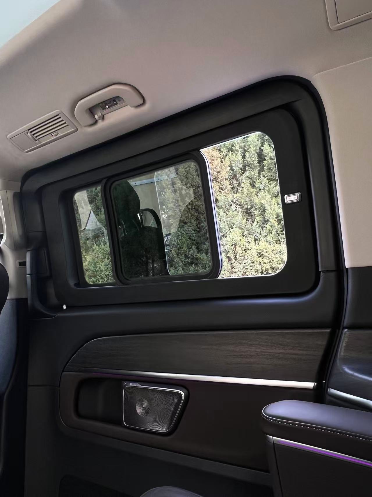 原车中门玻璃无开窗,图片为装电动窗后的效果展示。