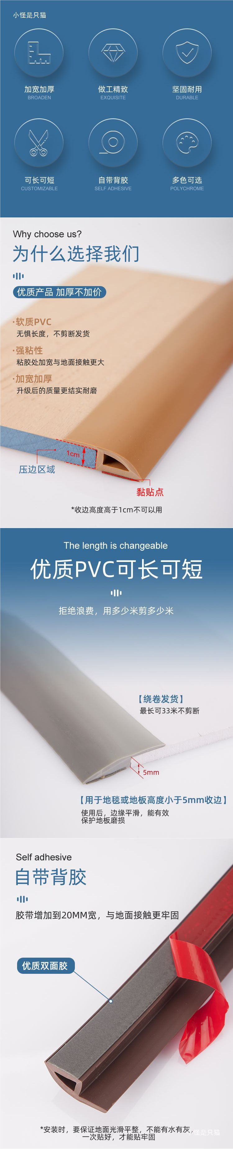 Самоклеящаяся ПВХ мягкая резиновая полоса для деревянного пола с высоким и низким давлением, полоса для шва двери, SPC замковая полоса, кожаная кромочная полоса для закрытия.