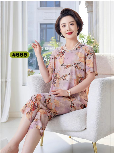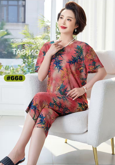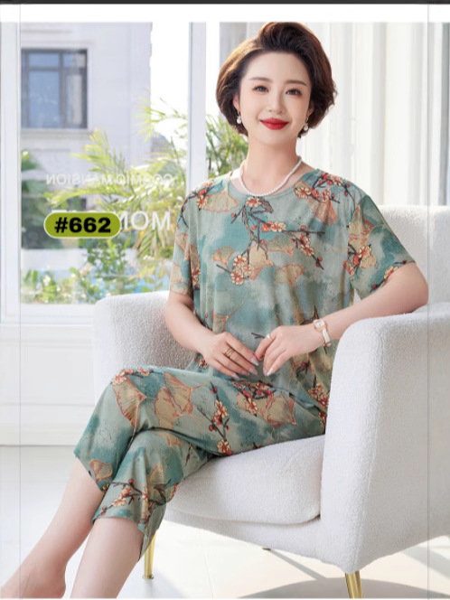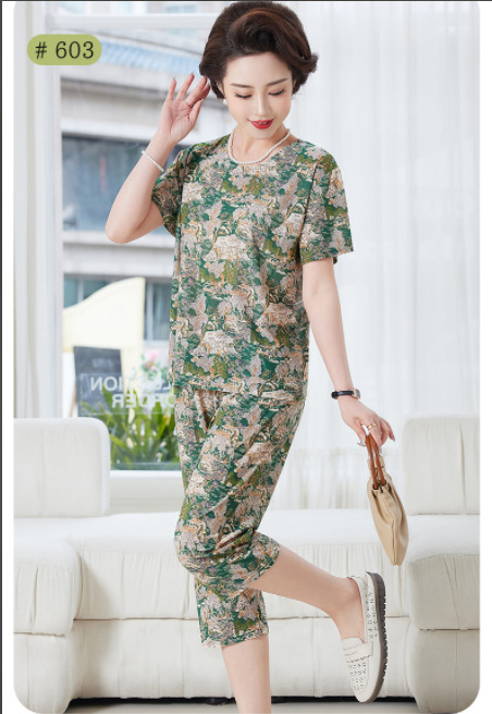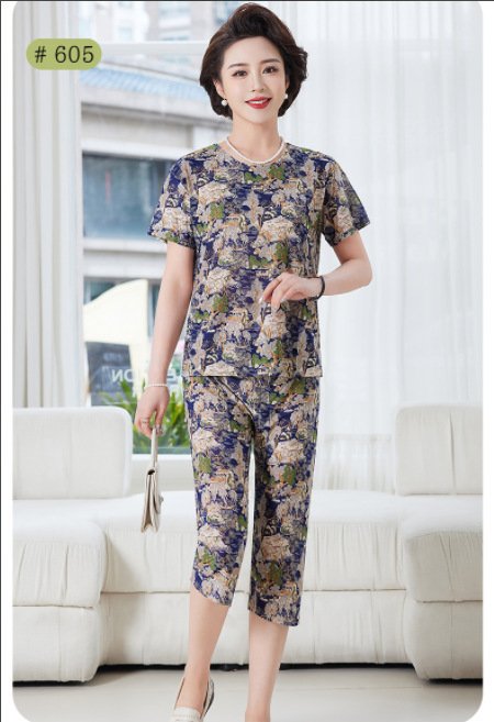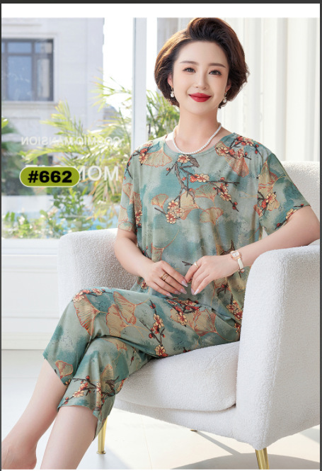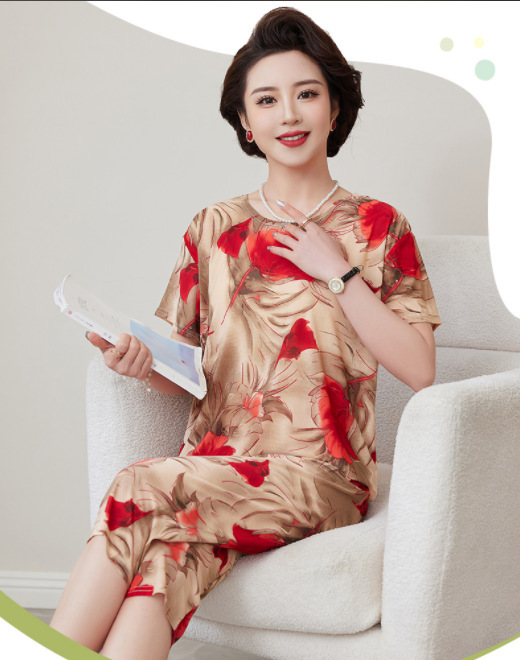 Костюм для мамы среднего и пожилого возраста из ледяного шелка, летние тонкие шорты с короткими рукавами, комплект из двух предметов, свободная повседневная домашняя одежда для среднего и пожилого возраста