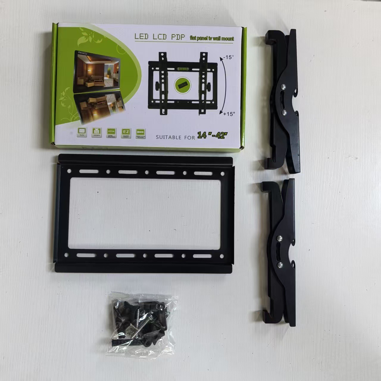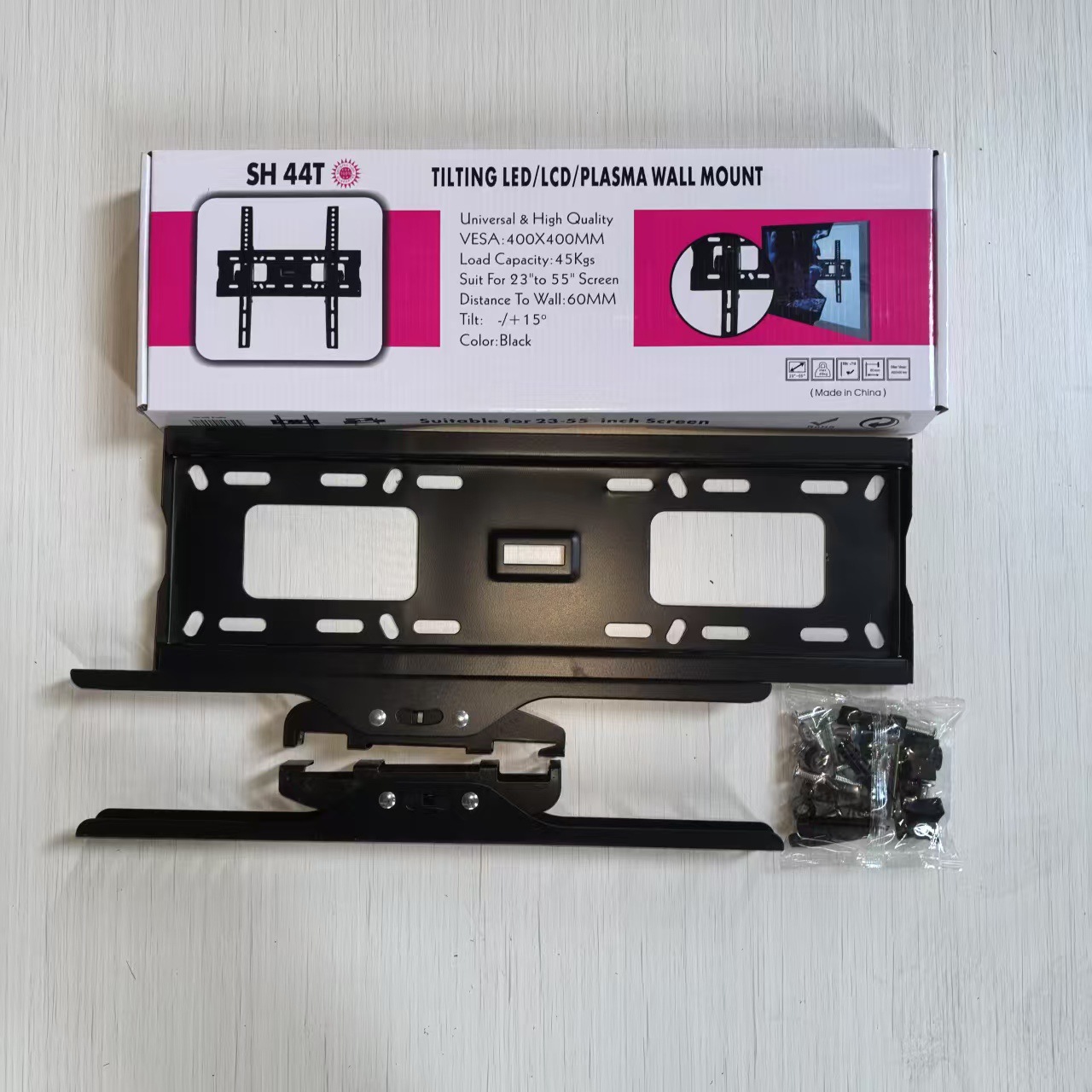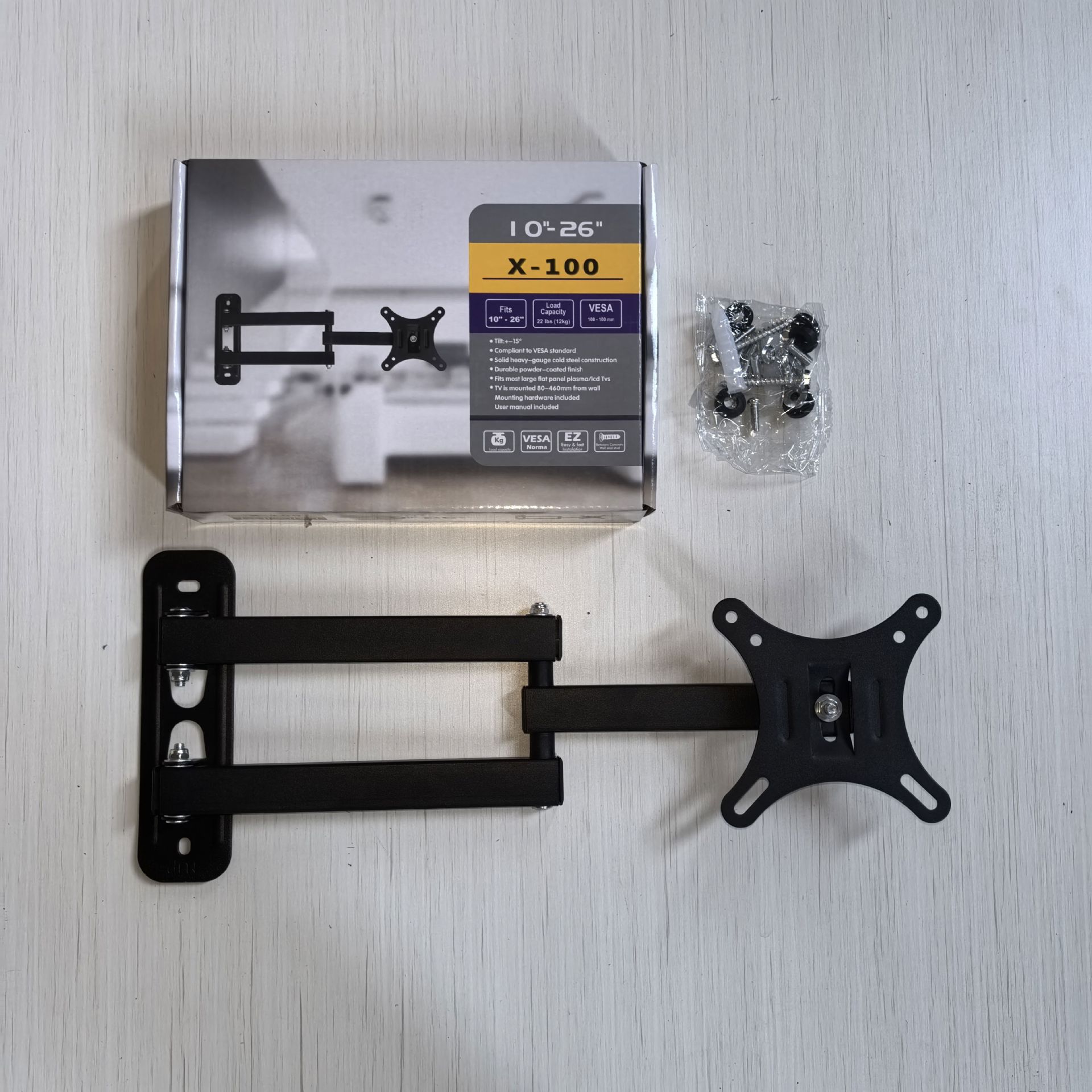 Кронштейн + комплект винтов + инструкция по эксплуатации + цветная коробка
