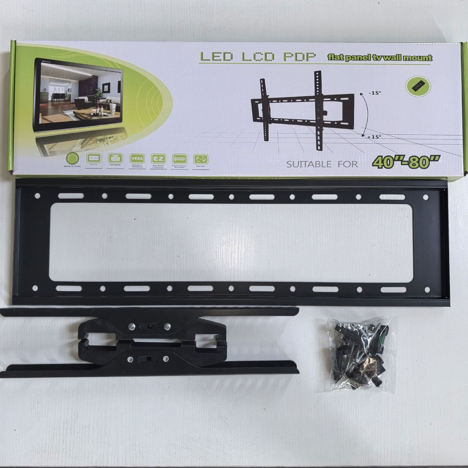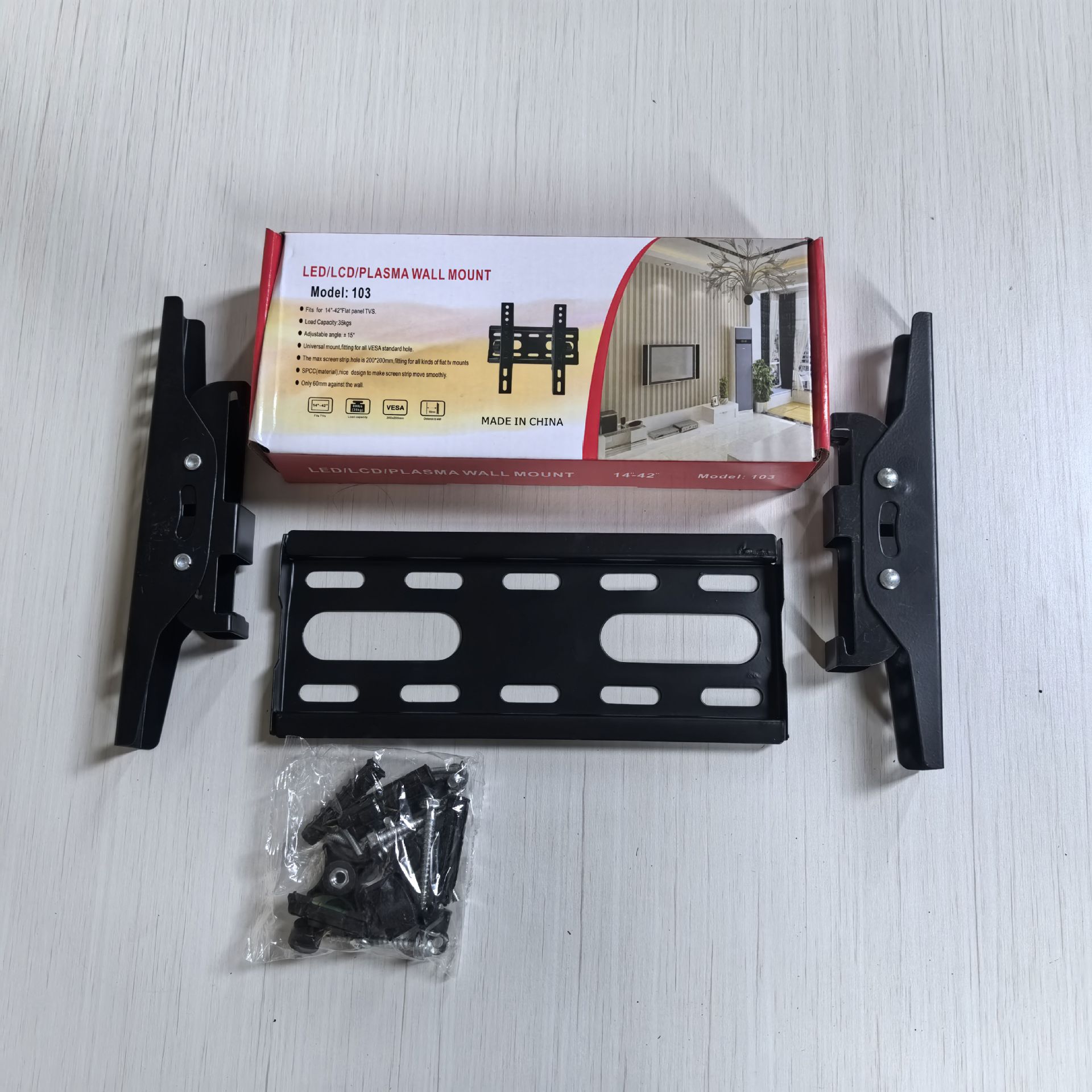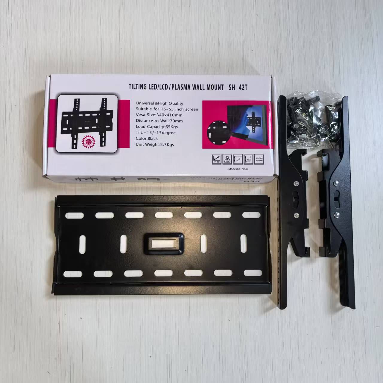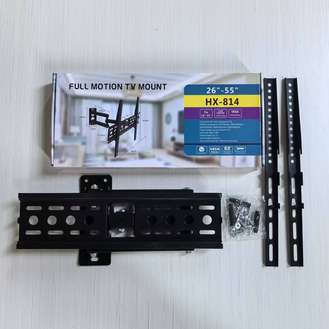 Кронштейн + комплект винтов + инструкция по эксплуатации + цветная коробка