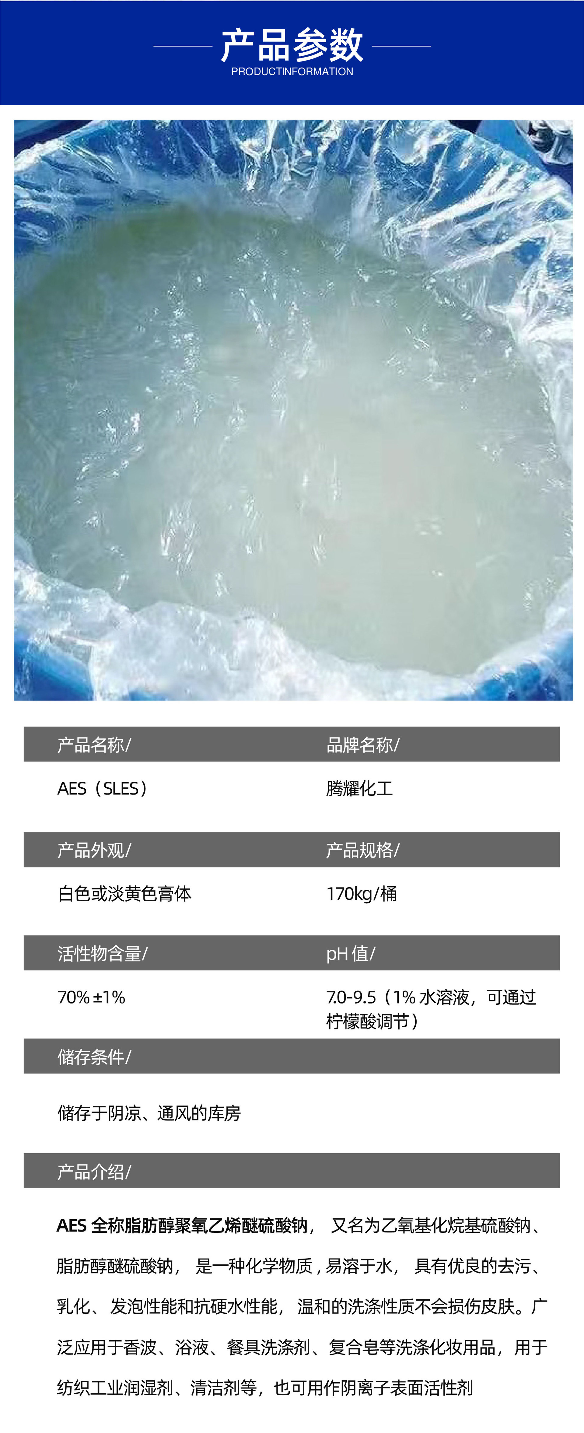 AES SLES 70% Лаурилсульфат натрия SLES Химическое вещество 70%