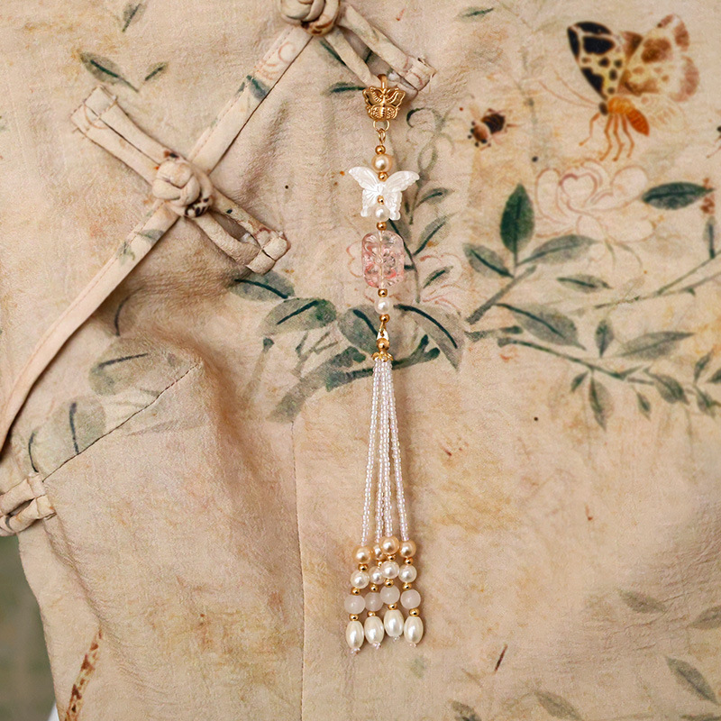 Новый стильный чонсам с прессованным лацканом, ретро, свежий и универсальный чайный костюм, новая одежда в китайском стиле, длинные струящиеся аксессуары, простые подвесные украшения.