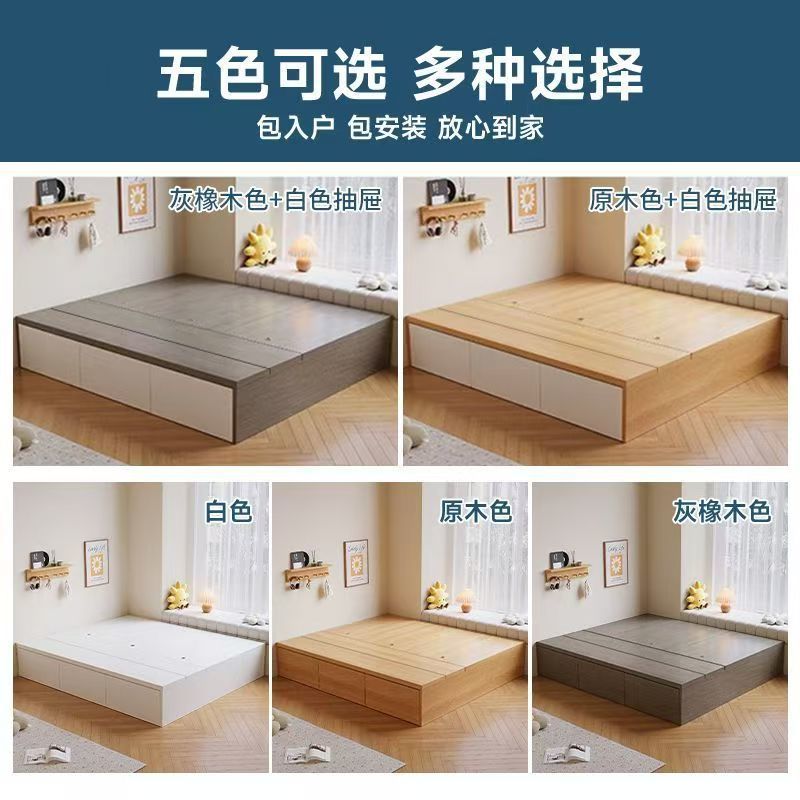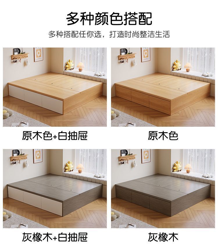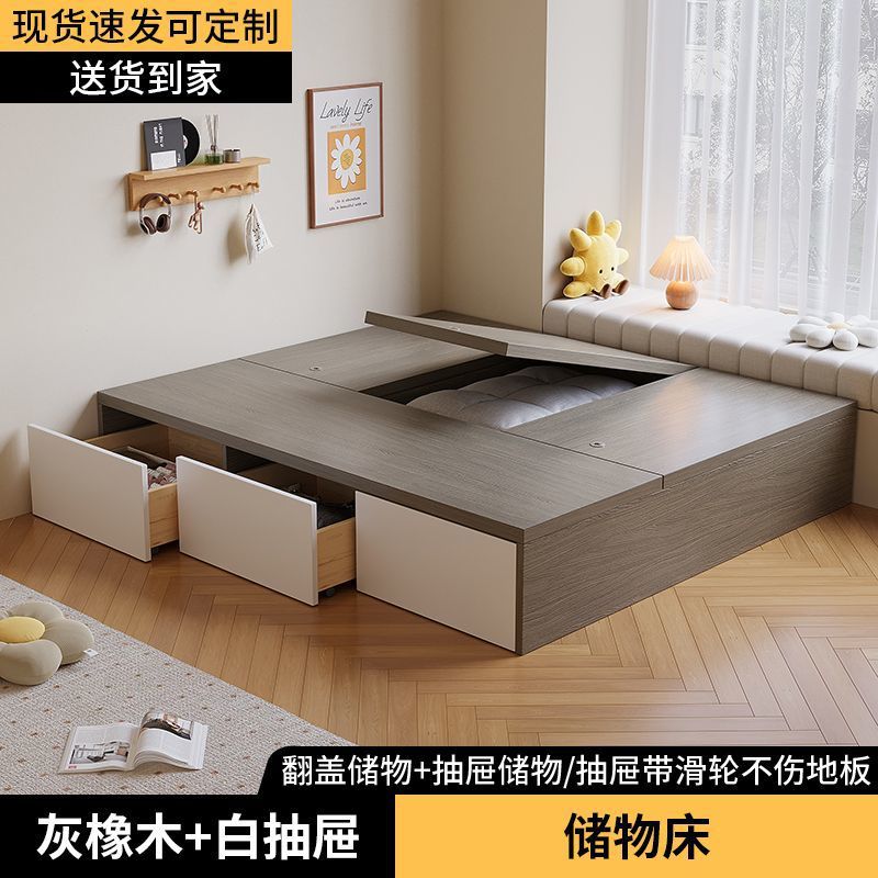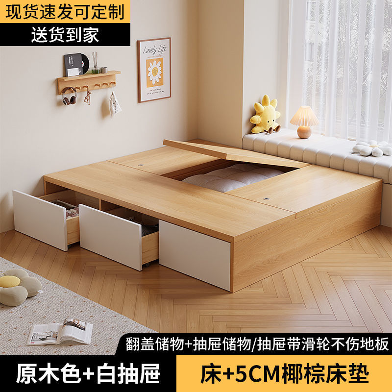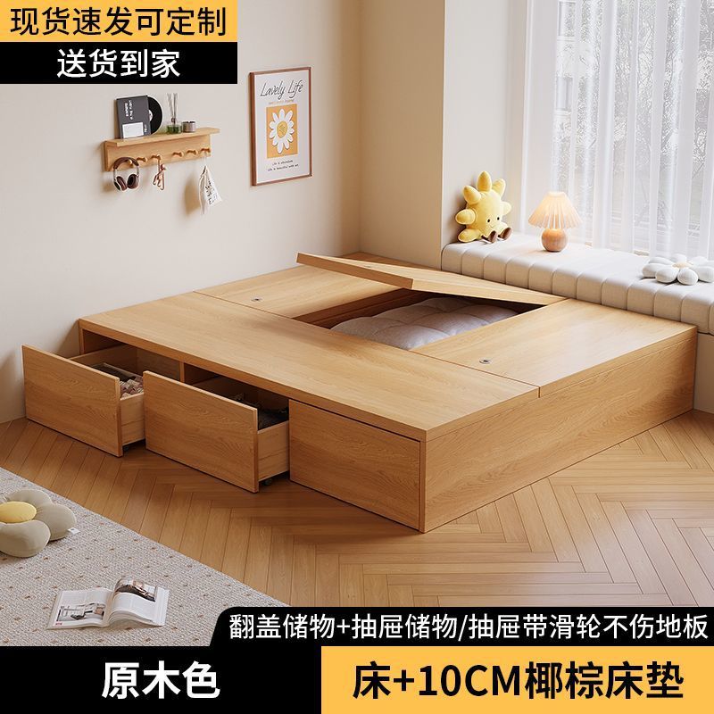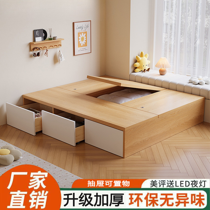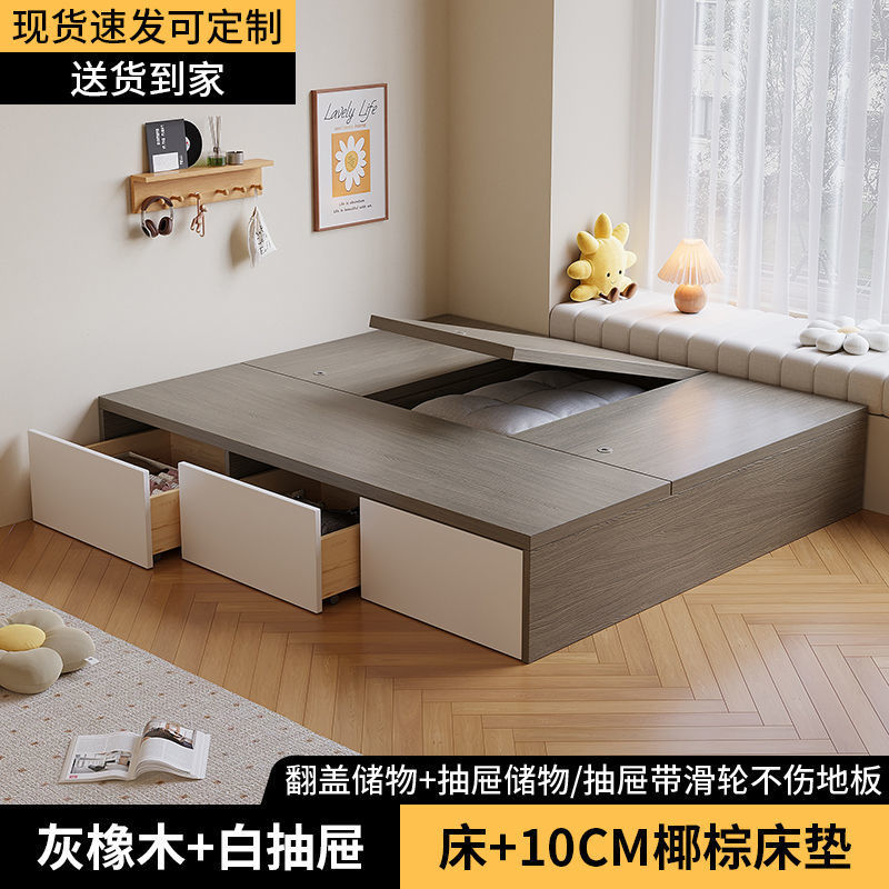 Кровать-гардероб с татами, высокий ящик для хранения, двуспальная кровать, современная простая кровать с ящиком для хранения, односпальная кровать для маленькой квартиры, возможна индивидуальная настройка с ящиком.