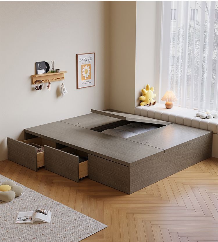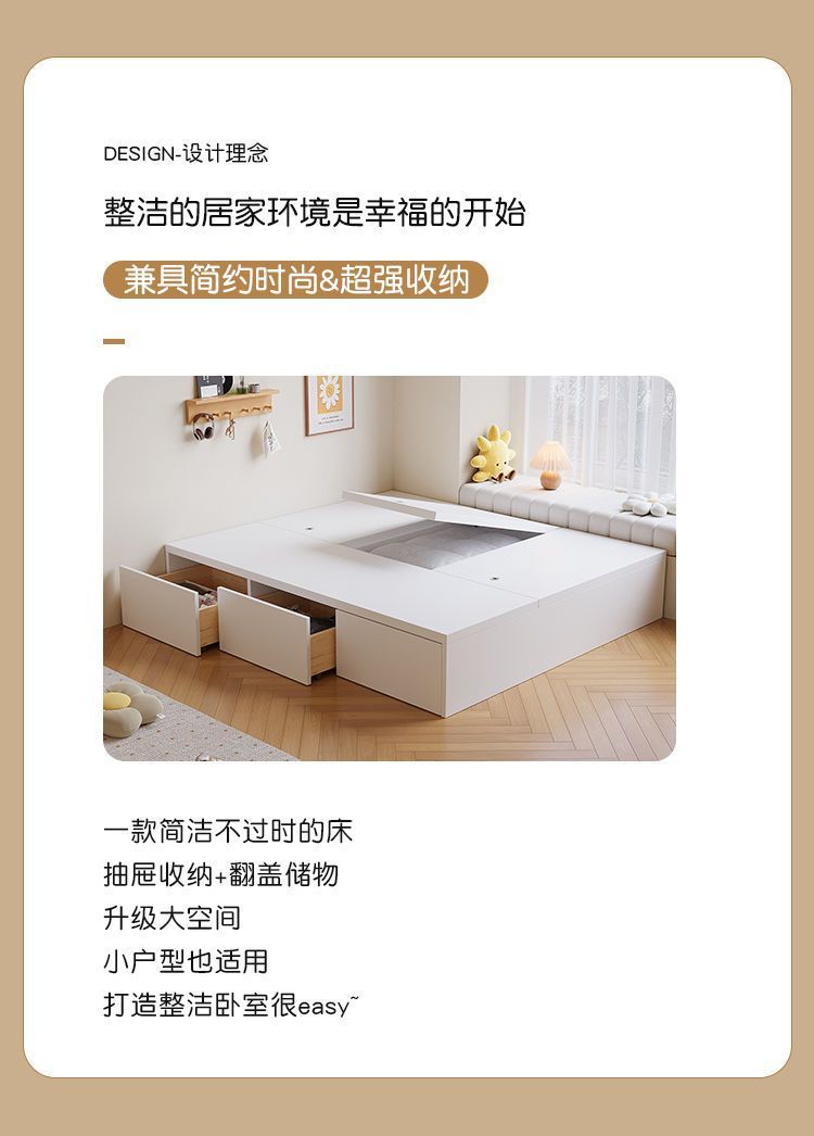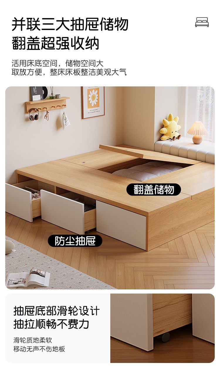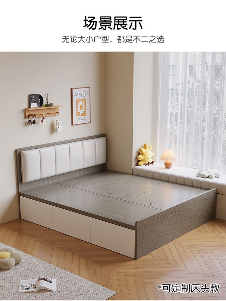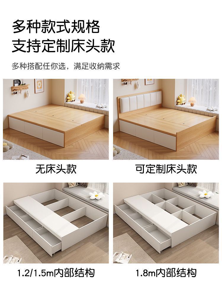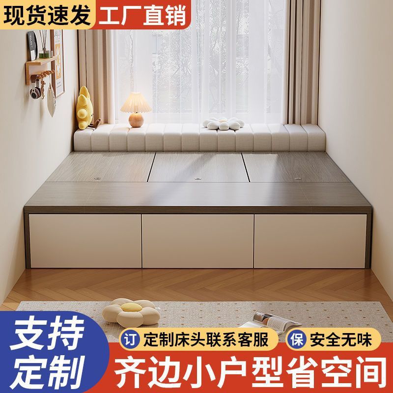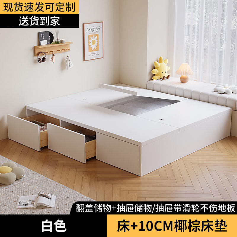 Кровать-гардероб с татами, высокий ящик для хранения, двуспальная кровать, современная простая кровать с ящиком для хранения, односпальная кровать для маленькой квартиры, возможна индивидуальная настройка с ящиком.