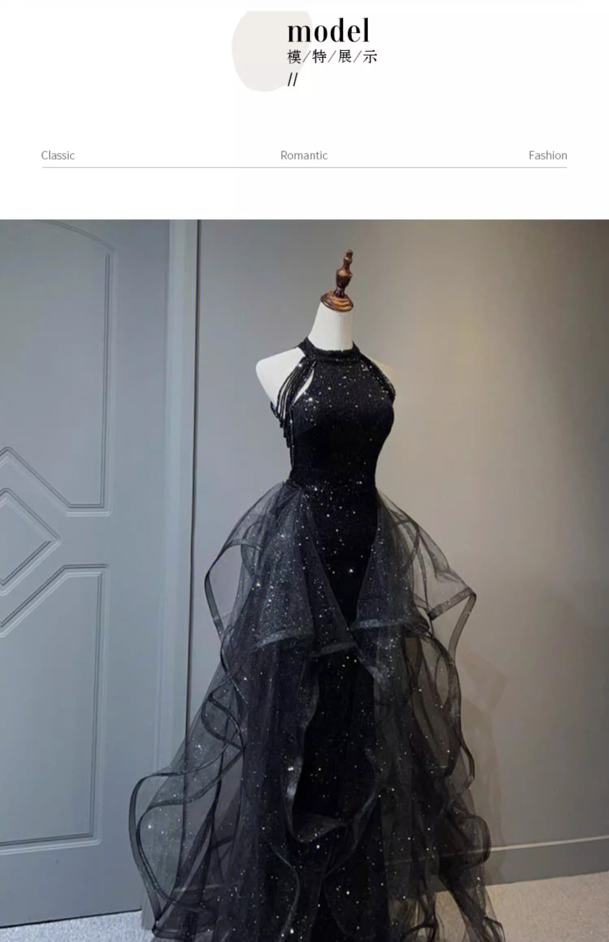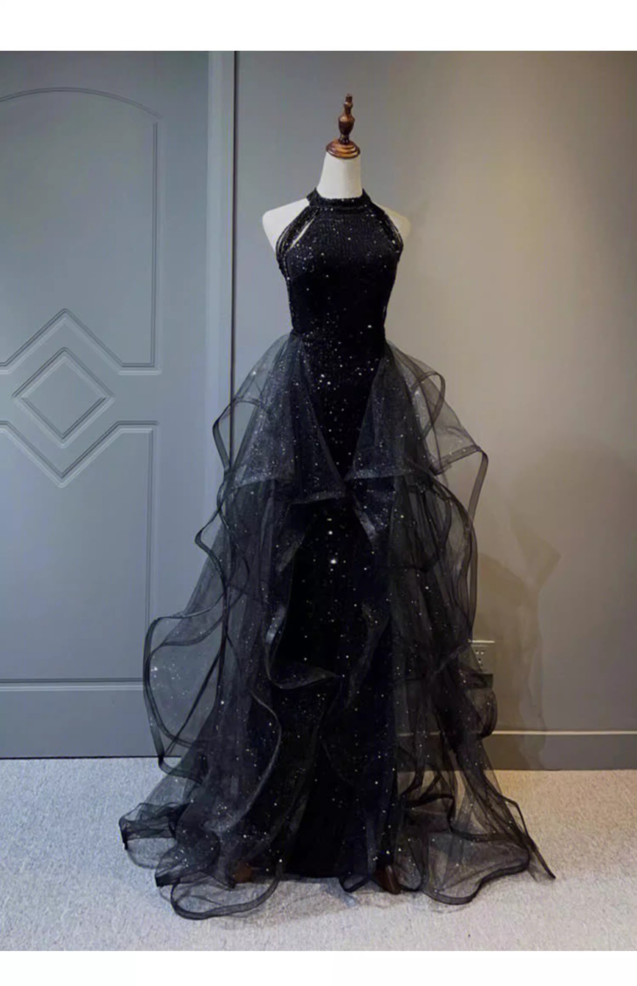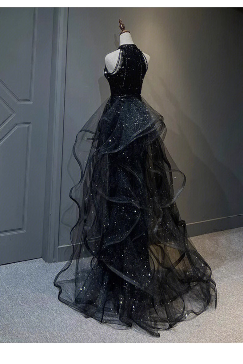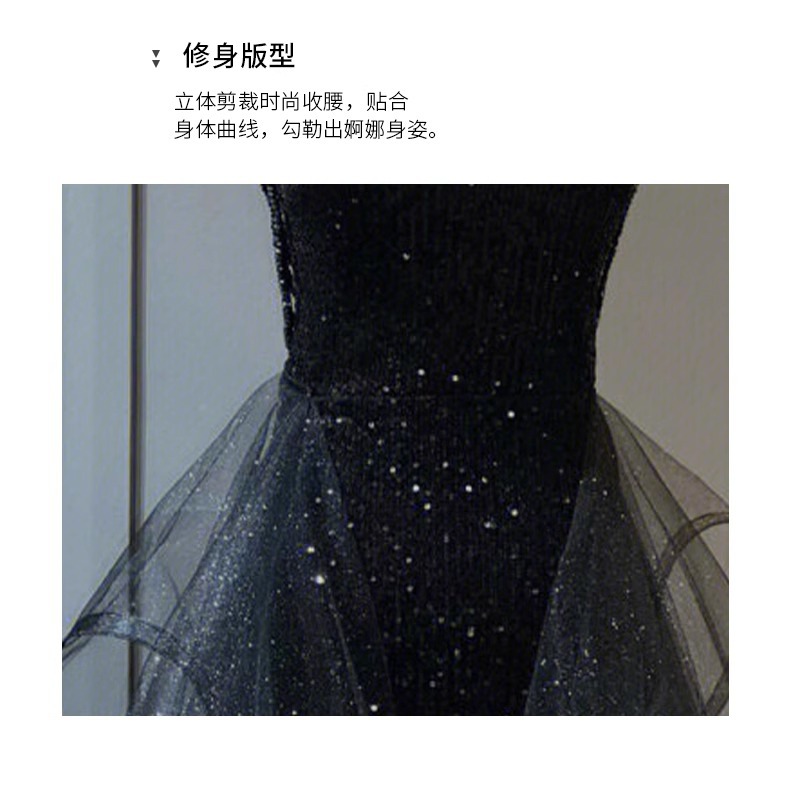 Черное вечернее платье, легкое роскошное нишевое платье с воротником-халтером, стиль ежегодной вечеринки, блестки, экзамен по вокальному искусству для женщин