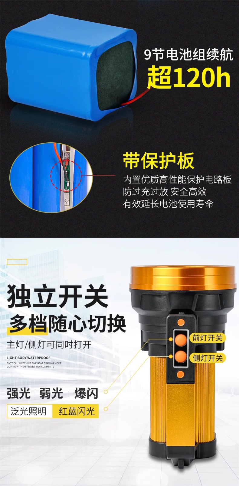 6000 Вт, срок службы батареи 10 часов, одна литиевая батарея с USB; 7000 Вт, время автономной работы 20 часов, литиевая батарея, оголовье из сплава USB; 8000 Вт, время автономной работы 30 часов, тройная литиевая батарея, оголовье из сплава USB; Рекомендовано менеджером магазина, 9000 Вт, время автономной работы 40 часов, четыре литиевых аккумулятора, оголовье из сплава с USB-дисплеем; 9800 Вт, срок службы батареи 100 часов, четыре литиевые батареи, алюминиевый сплав, электронный дисплей USB, односторонний фонарь; 9900 Вт, срок службы батареи 100 часов, четыре литиевые батареи, алюминиевый сплав с USB-дисплеем, двойные боковые фонари; Четырехъядерный процессор мощностью 12000 Вт, время автономной работы 120 часов, девять литиевых батарей, алюминиевый сплав с электронным дисплеем USB, односторонний фонарь; Четырехъядерный процессор мощностью 15000 Вт, время автономной работы 120 часов, девять литиевых батарей, алюминиевый сплав с электронным дисплеем USB, двойные боковые фонари; Верхняя часть оснащена девятикратным ядром мощностью 18000 Вт, временем автономной работы 120 часов, литиевой батареей с девятью элементами, алюминиевым сплавом с электронным дисплеем USB, двойными боковыми огнями.