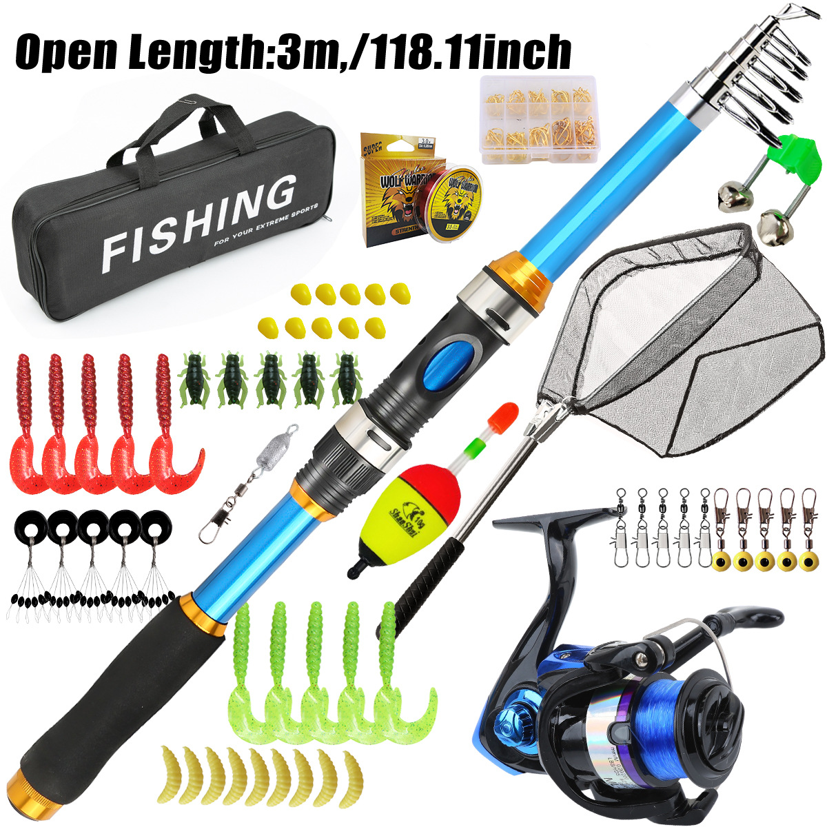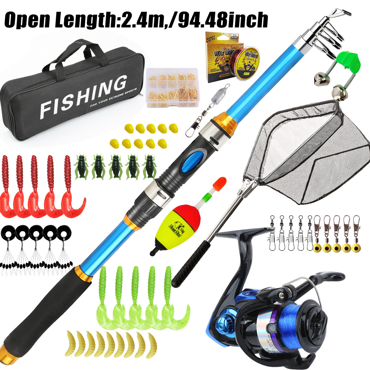 Четырехцветное удилище для рыбалки на открытом воздухе, телескопическое удилище из стекловолокна для путешествий, оптовая продажа через Amazon, популярный набор