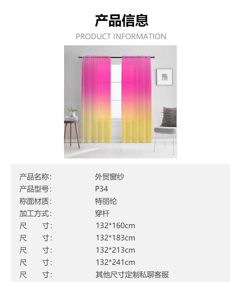 Поддержка JIT-доставки, эксклюзивные трансграничные прямые продажи от производителей, градиентная пряжа розово-желтого цвета, цифровая печать на шторах и оконных сетках.
