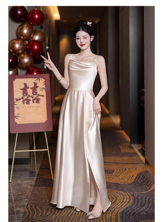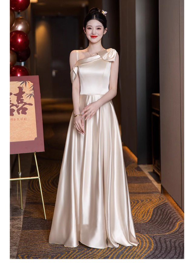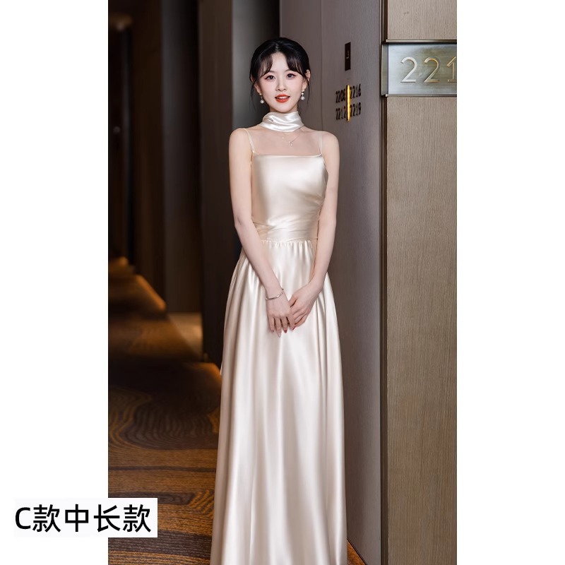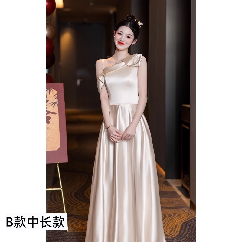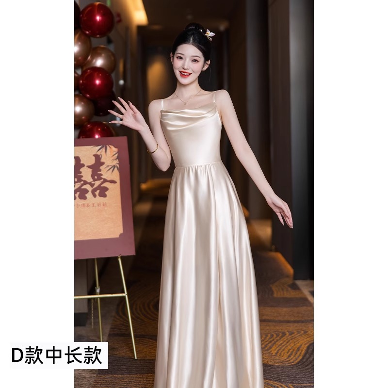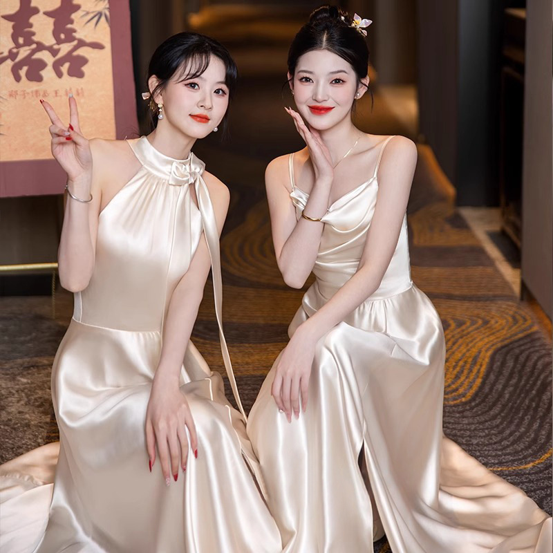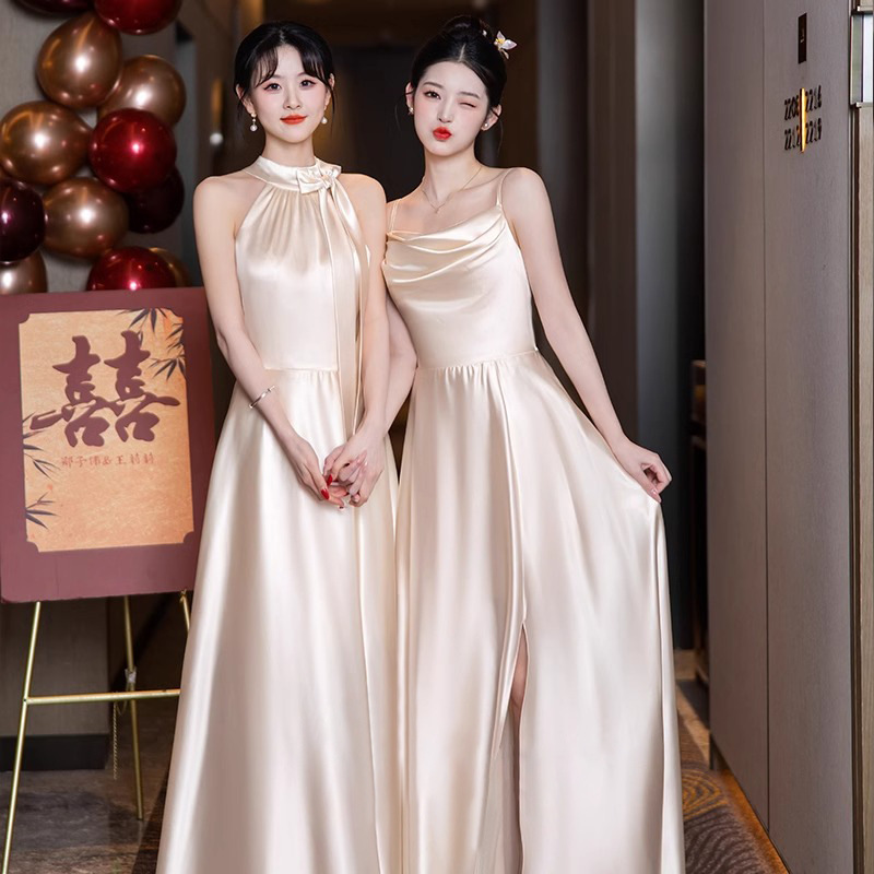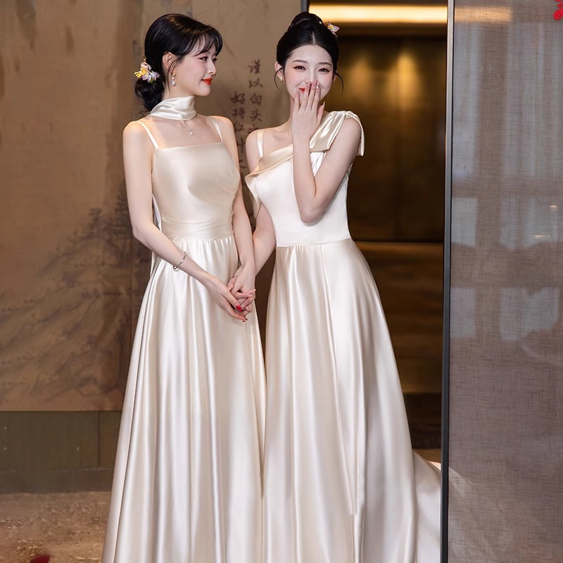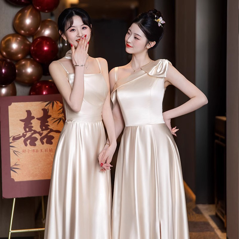 Платье подружки невесты цвета шампань 2025, новое высококачественное нишевое свадебное платье для группы сестер, юбка, атласное платье