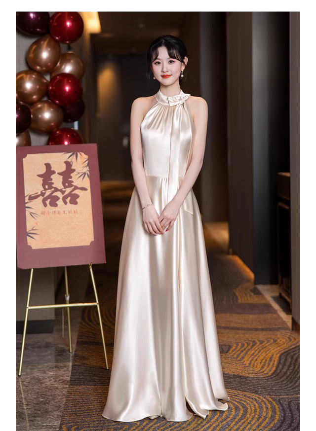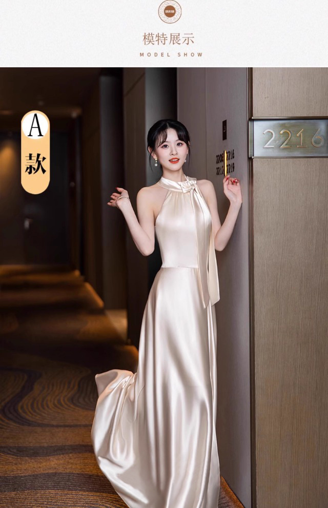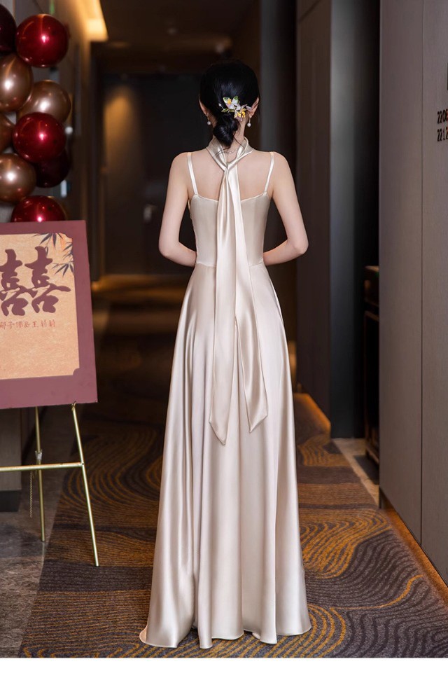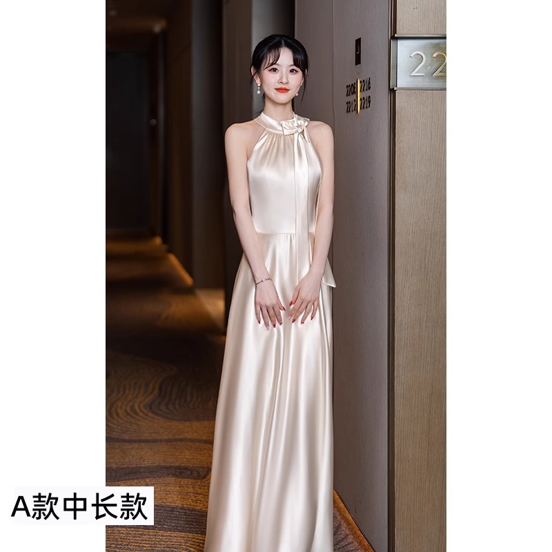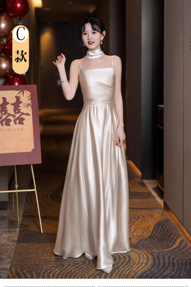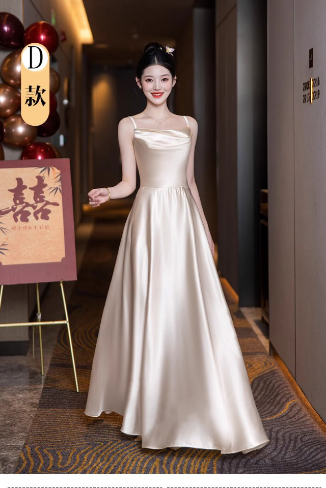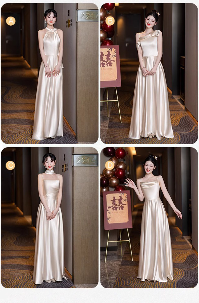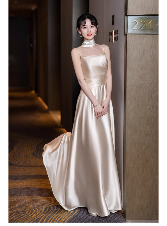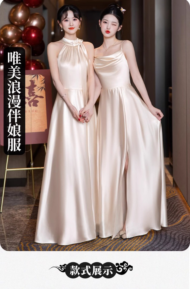 Платье подружки невесты цвета шампань 2025, новое высококачественное нишевое свадебное платье для группы сестер, юбка, атласное платье