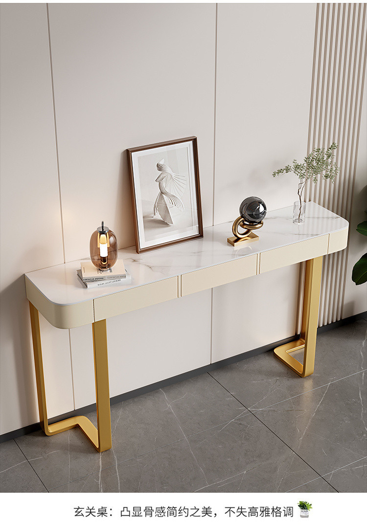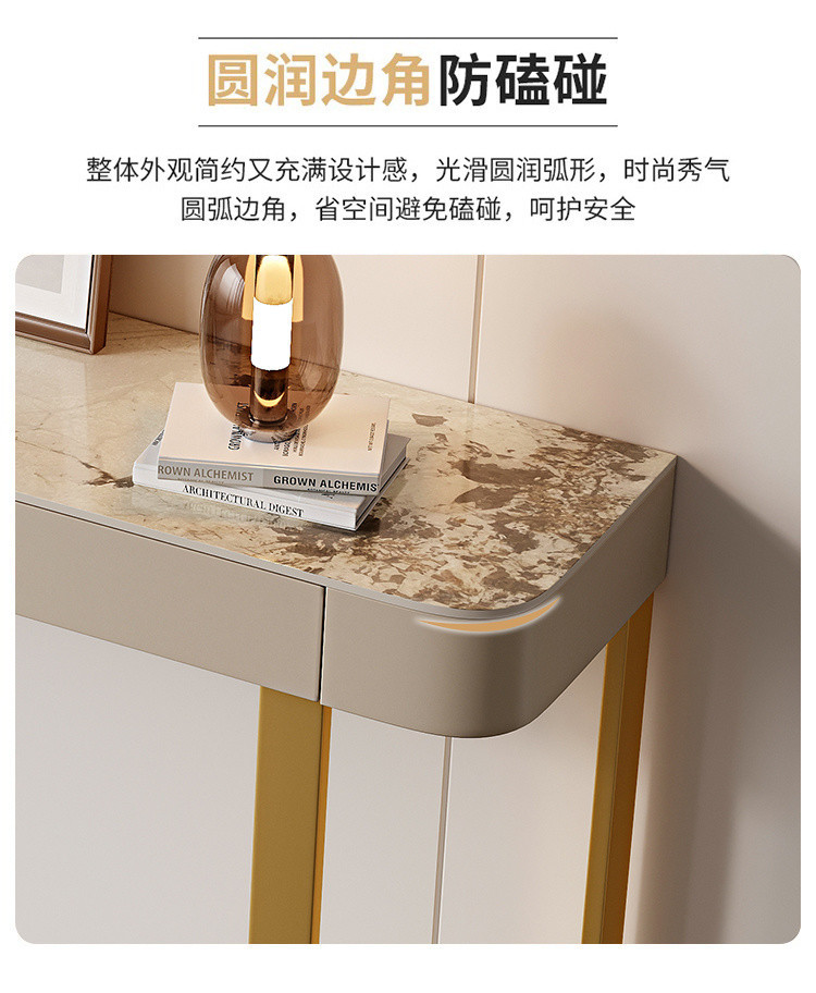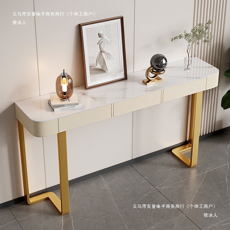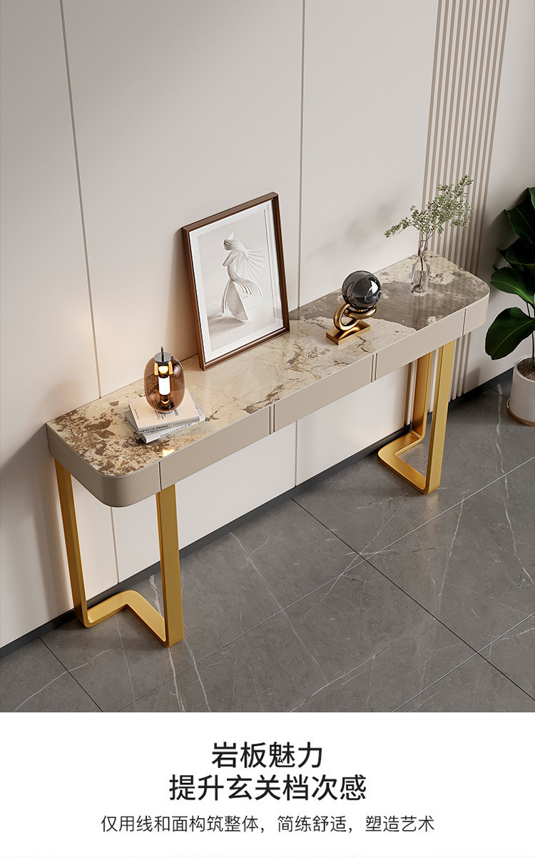Стол для прихожей Yibingren DND, декоративный стол, столешница из сланца, модный шкафчик в итальянском стиле, минималистичный современный полукруглый стол для гостиной в стиле лёгкой роскоши.