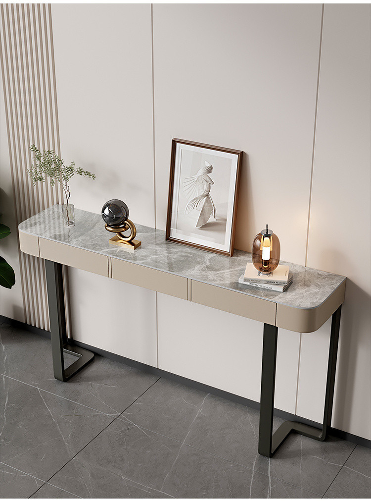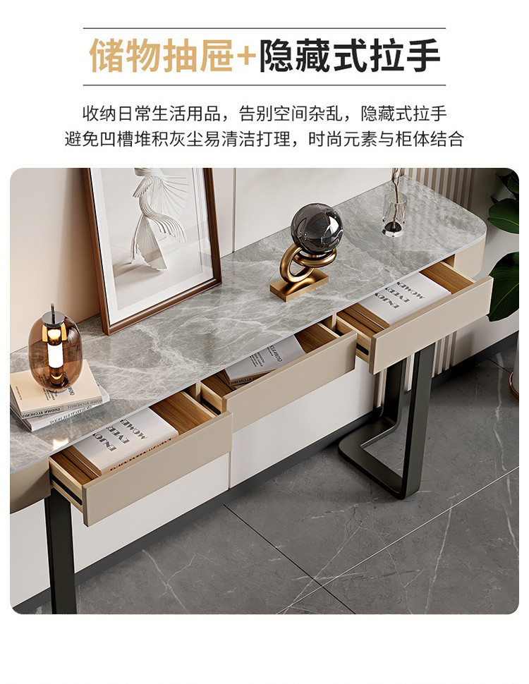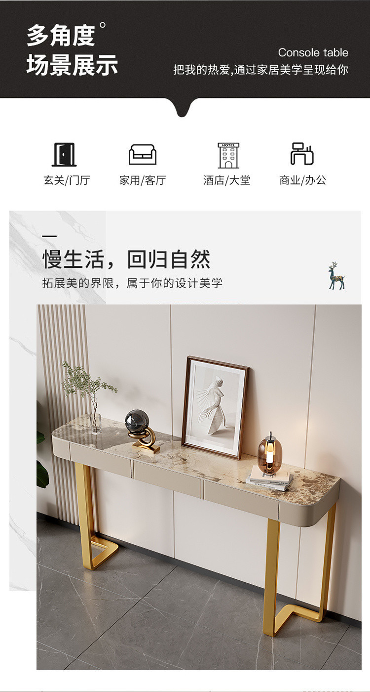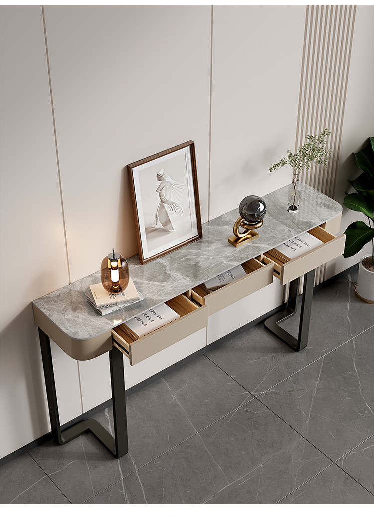 Стол для прихожей Yibingren DND, декоративный стол, столешница из сланца, модный шкафчик в итальянском стиле, минималистичный современный полукруглый стол для гостиной в стиле лёгкой роскоши.