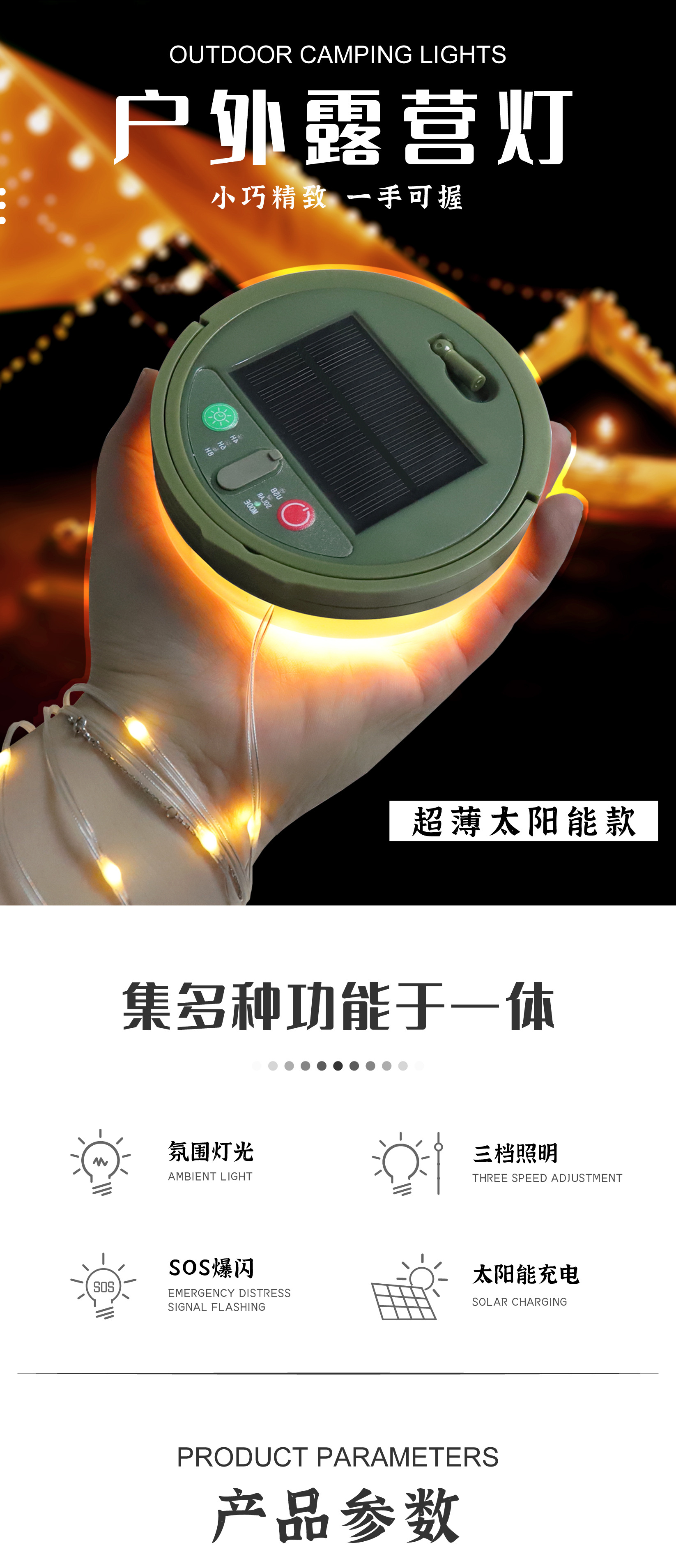 Ультратонкий солнечный перезаряжаемый светильник в стиле кемпинга, светодиодный светильник в стиле кемпинга, уличный светильник в стиле кемпинга, декоративная гирлянда для палатки, аварийное освещение