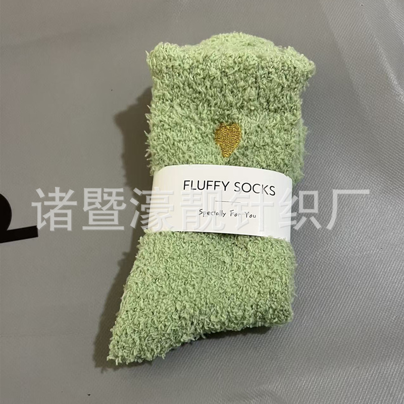 【产品名称】 刺绣爱心珊瑚绒女袜 不掉毛