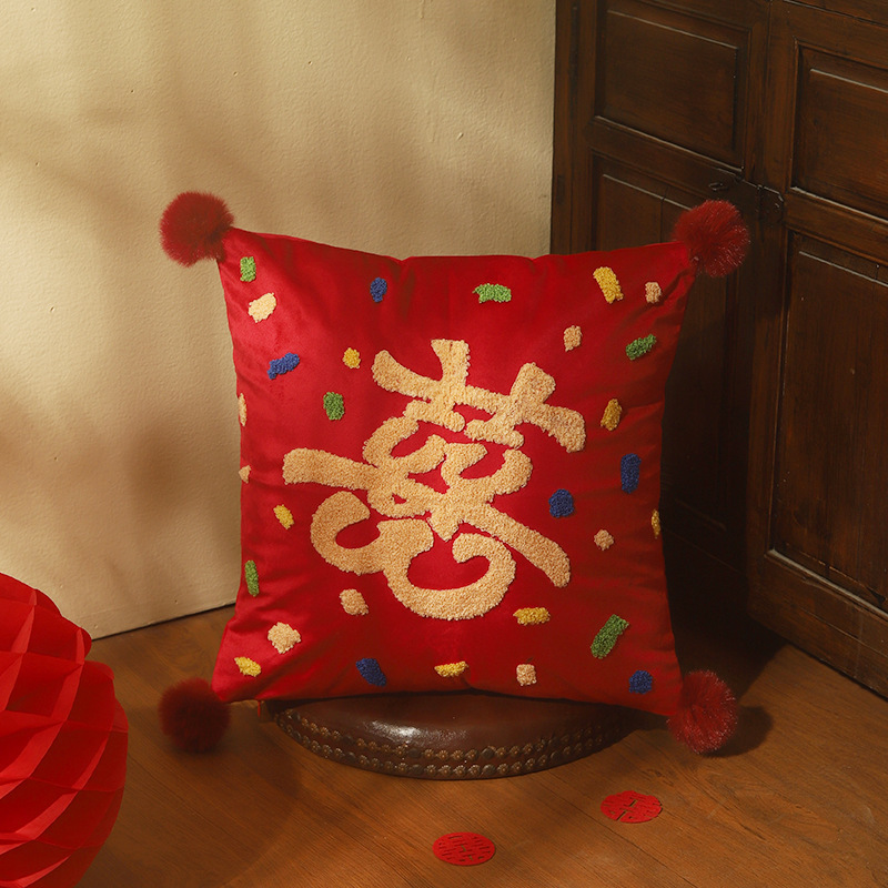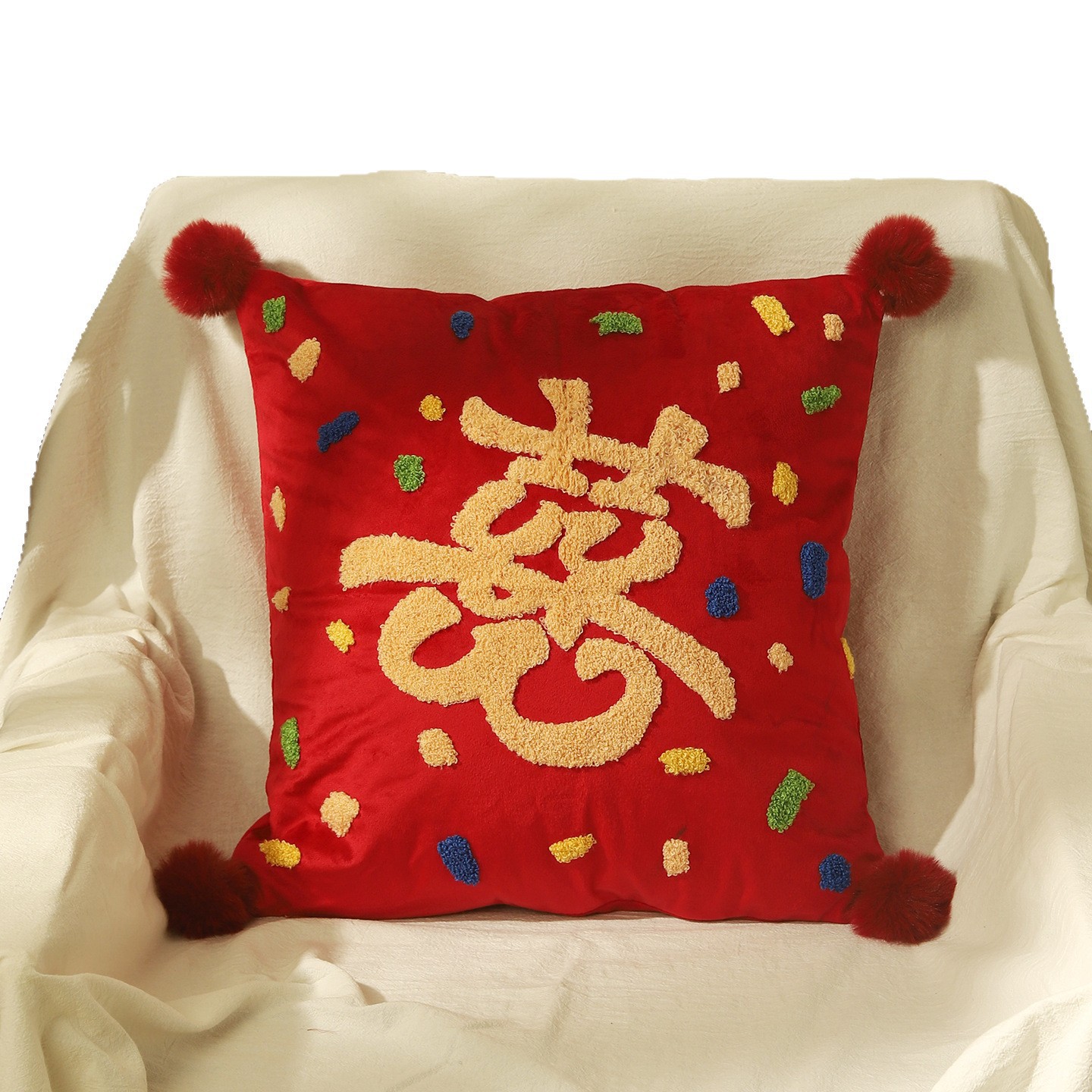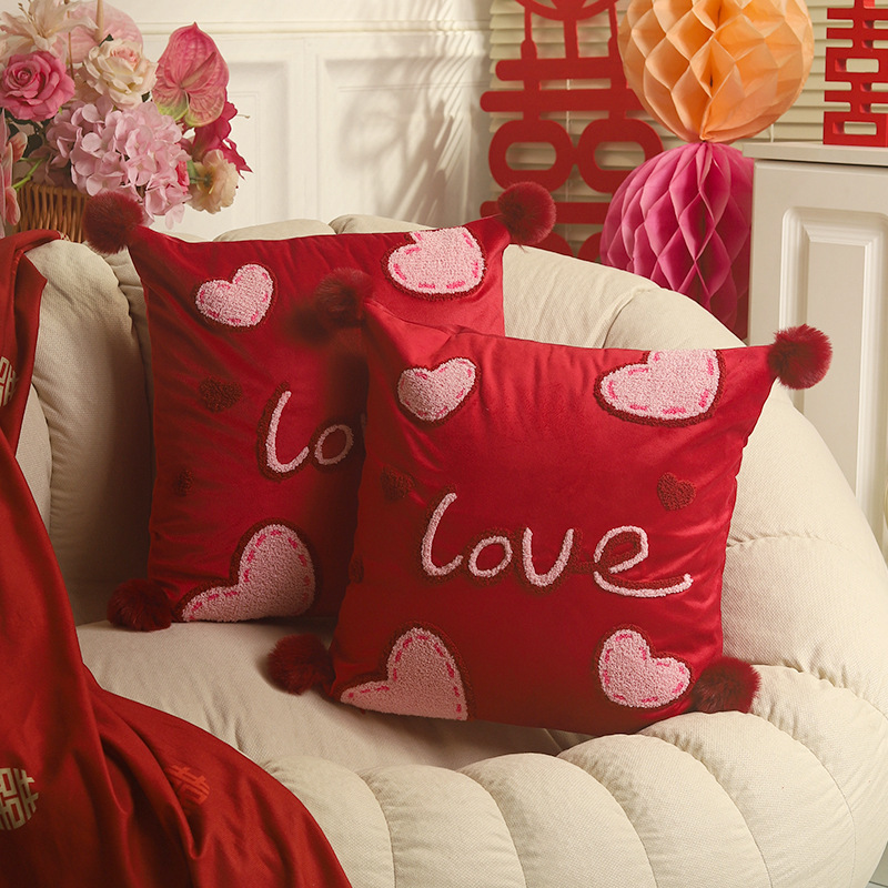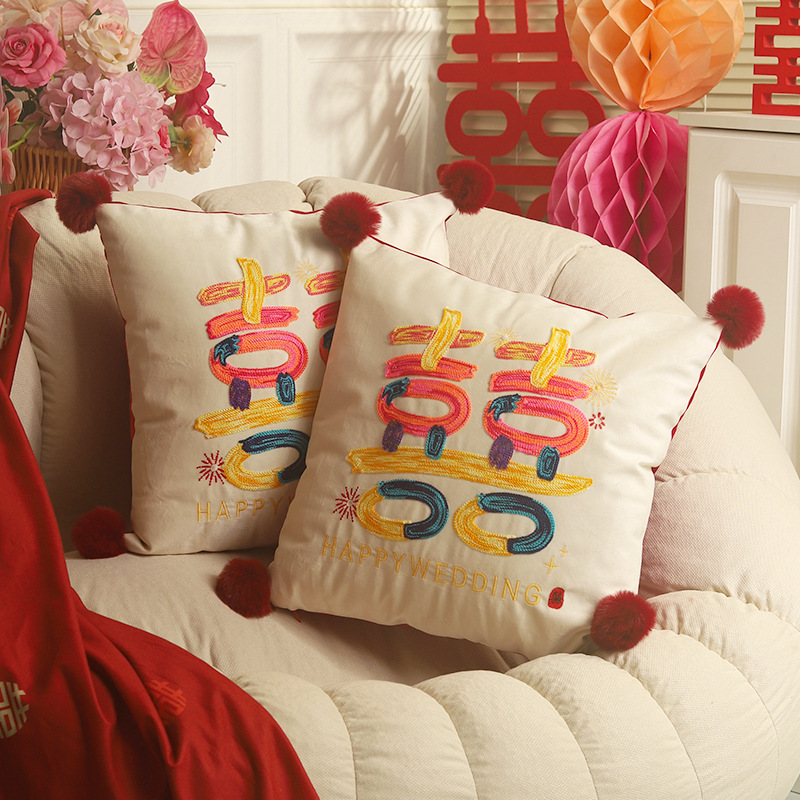 Свадебные подушки, свадебные принадлежности, свадебные плюшевые подушки, пара праздничных красных подушек для кровати, вышивка украшения свадебной комнаты.