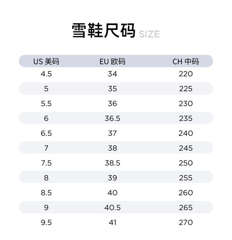 36 (внутренняя длина 230 мм); 35 (внутренняя длина 225 мм); 36,5 (внутренняя длина 235 мм); 37 (внутренняя длина 240 мм); 38 (внутренняя длина 245 мм); 39 (внутренняя длина 255 мм)
