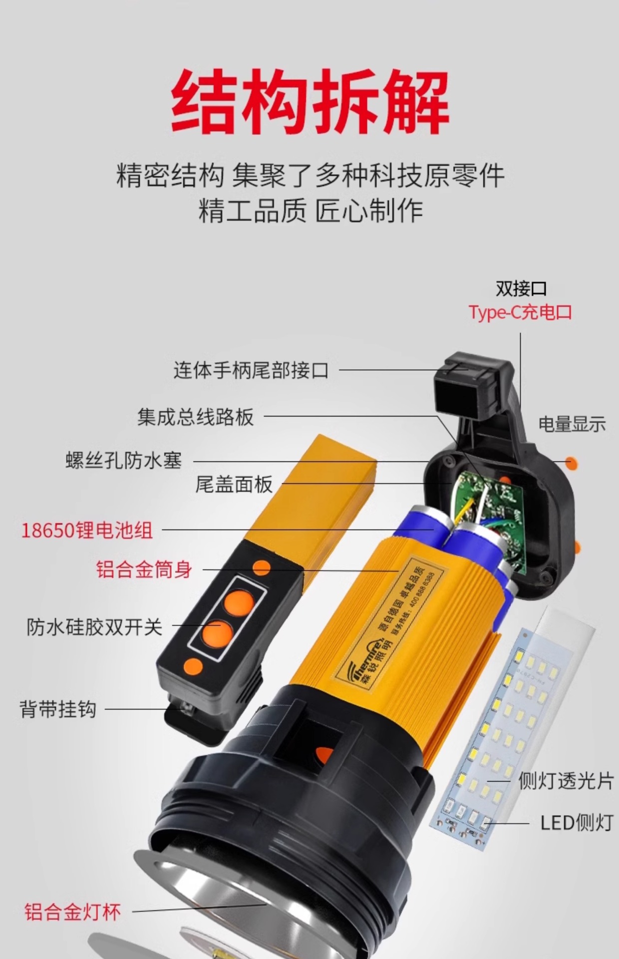 Фонарик сильный свет перезаряжаемый уличный ультра-яркий мощный светодиодный ксеноновый прожектор дальнего действия для бытового патрулирования и поиска