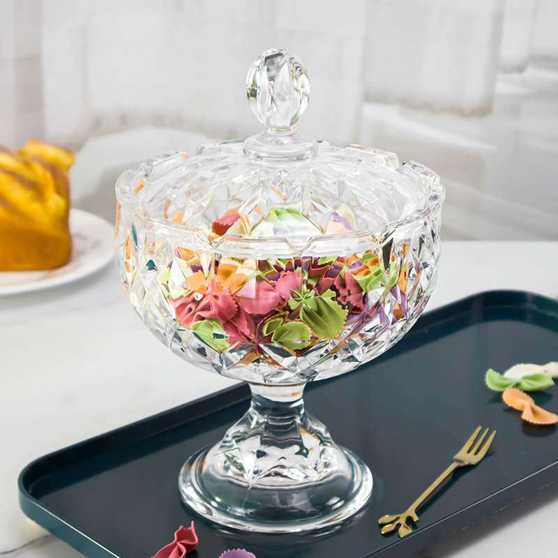 Европейская доступная роскошь: ретро-стеклянная банка для конфет с кристальным узором, серия сахарниц
