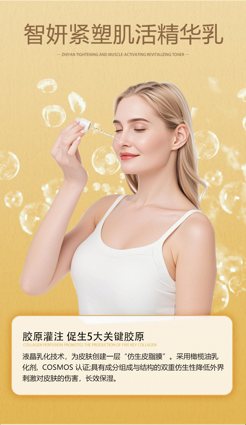 Индивидуальная обработка OEM Zhiyan, укрепляющий мышечный активный лосьон-эссенция, легкие линии, укрепляющий отбеливающий лосьон против морщин, удаление желтого цвета, завод ODM
