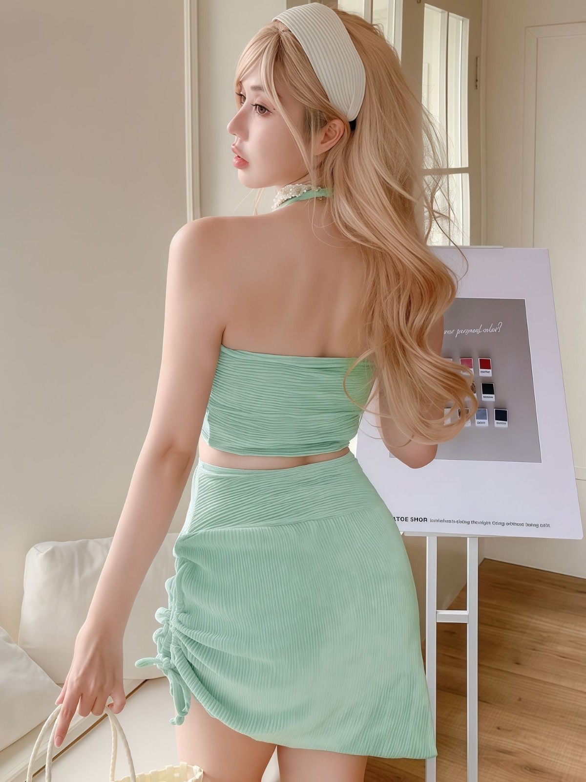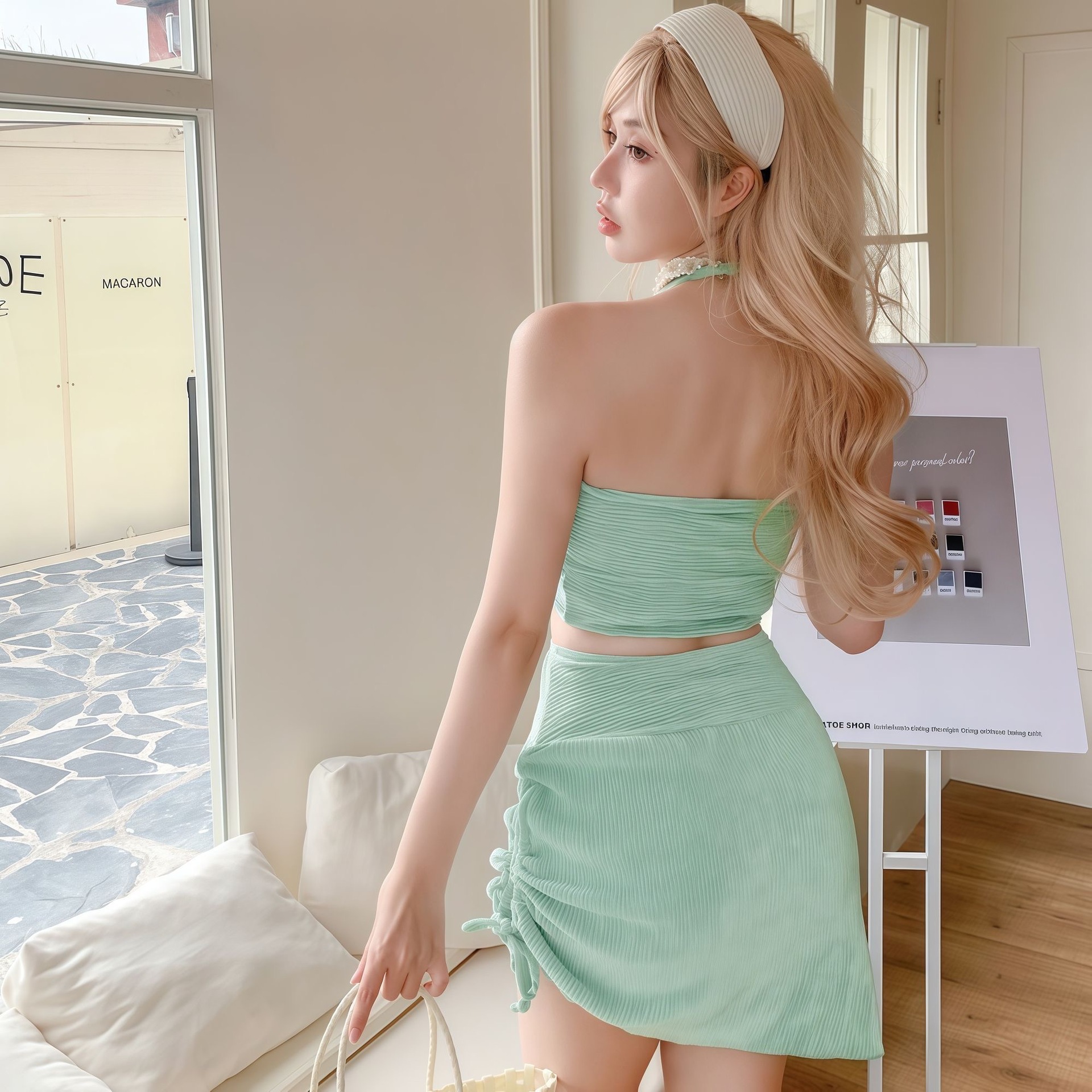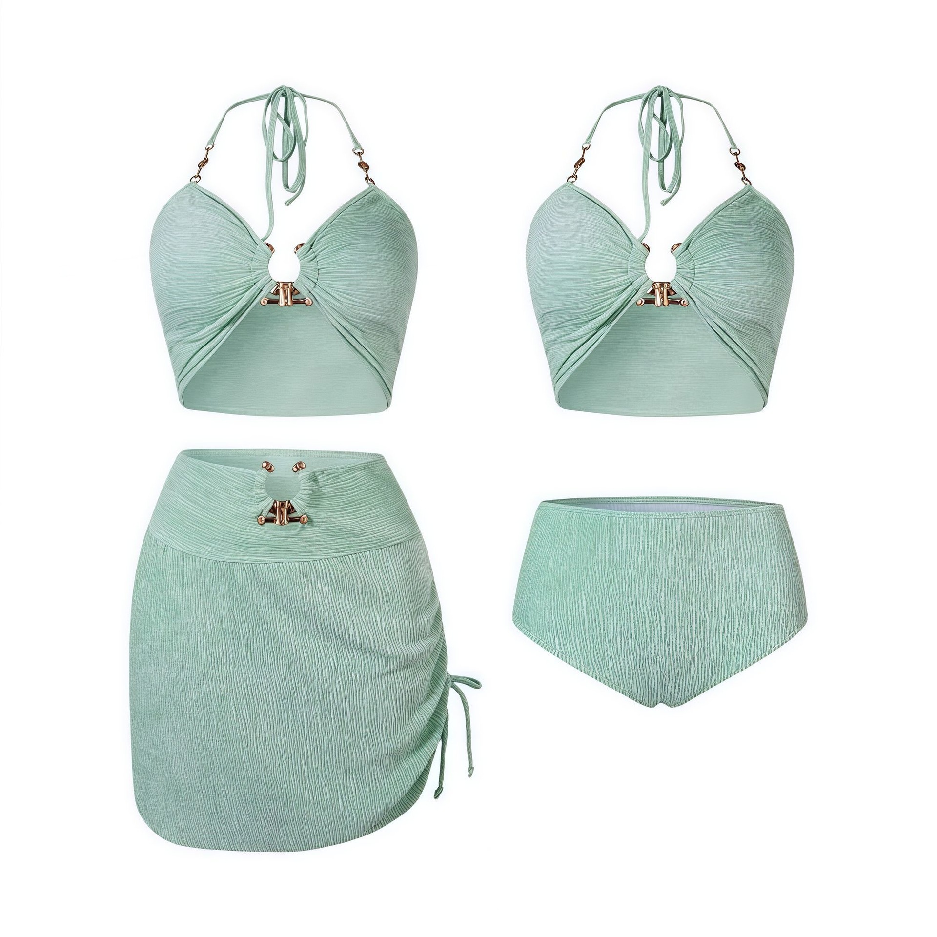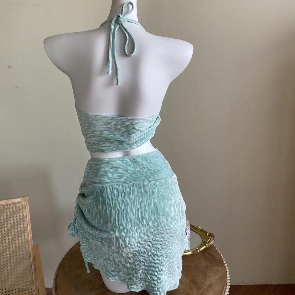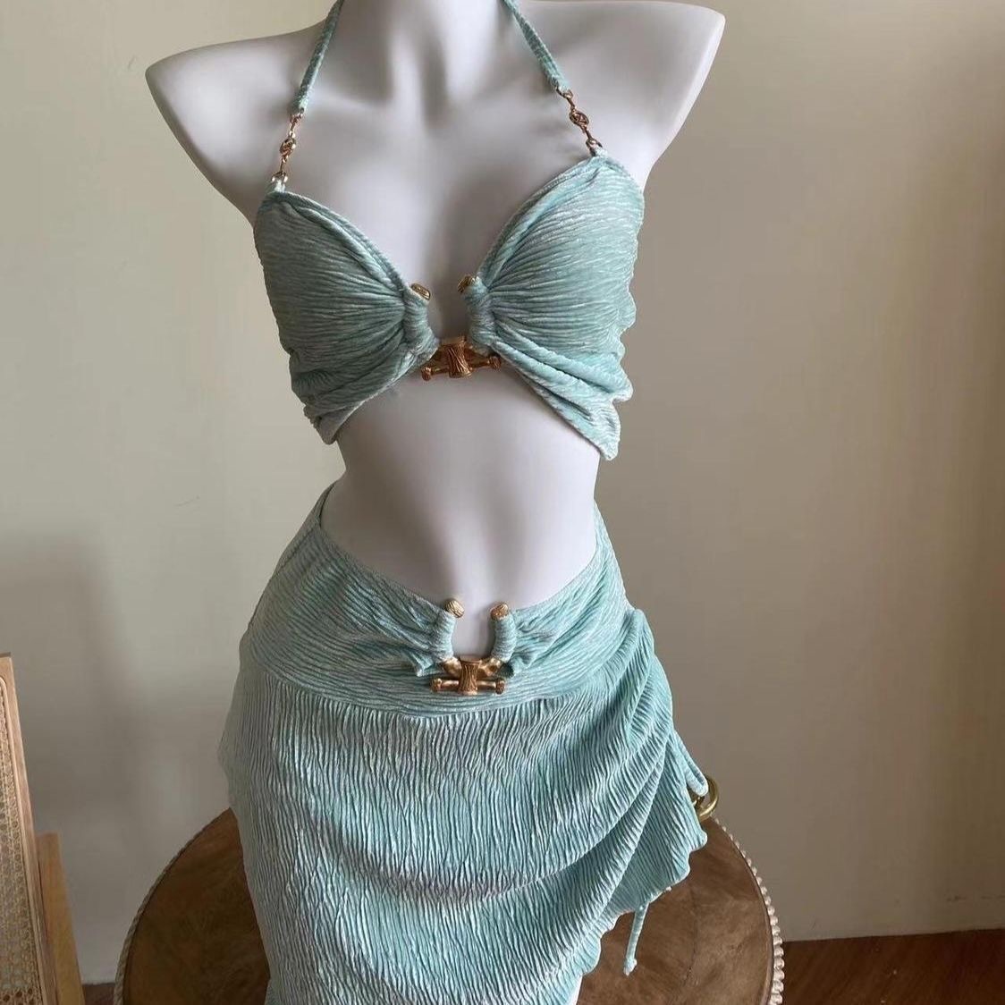 Флокированный купальник, женский комплект из трех предметов, юбка-бикини Pure Lust, комплект из трех предметов, пуш-ап для маленькой груди, утягивающий купальник для отдыха на горячих источниках, оптовая продажа