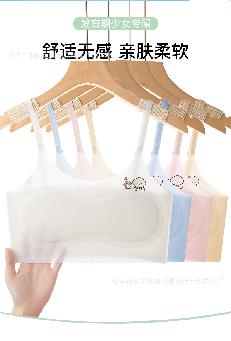 Развивающее нижнее белье для девочек начальной школы, жилет для средней школы, бесшовное нижнее белье из ледяного шелка для девочек, регулируемые бретели, летний тонкий стиль