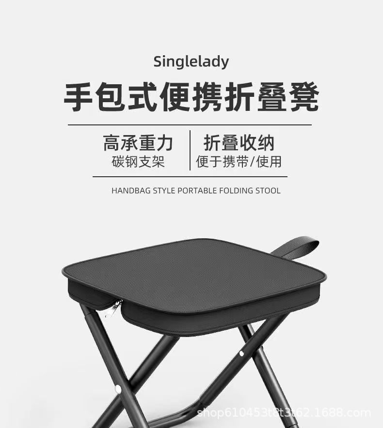 Черный [двухслойная ткань] Полностью складной табурет-сумочка; Хаки [ручная сумка складной тип] открывается за считанные секунды