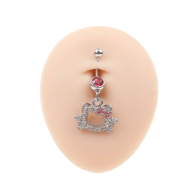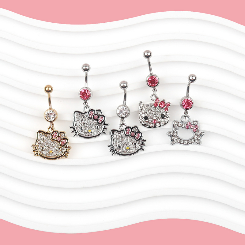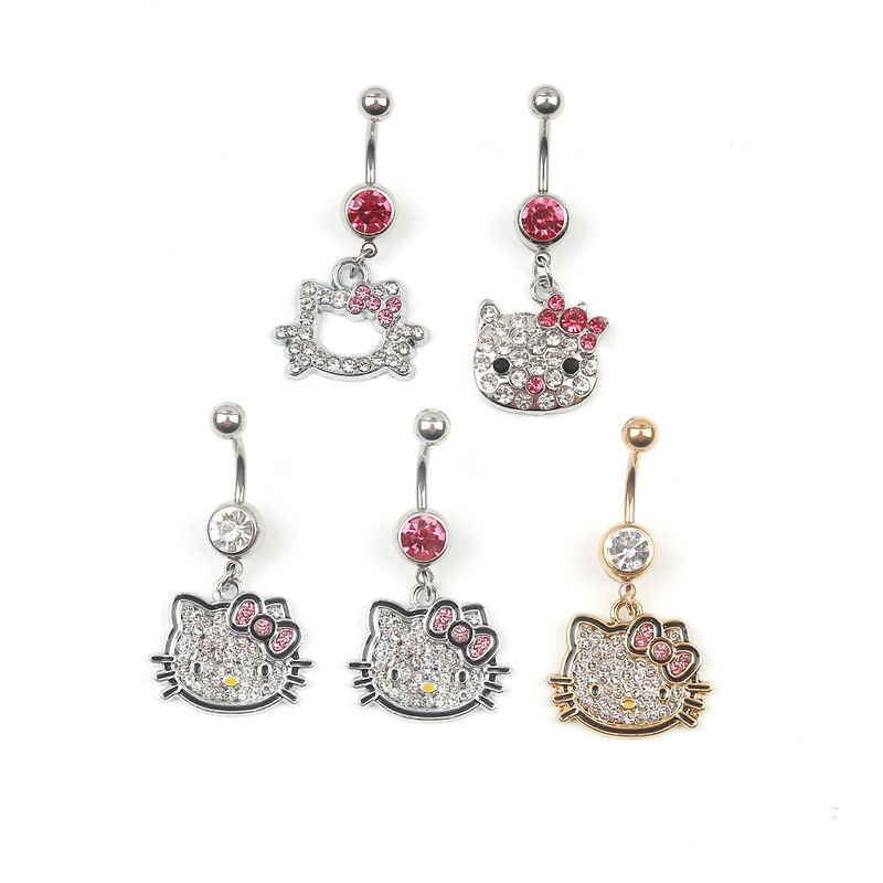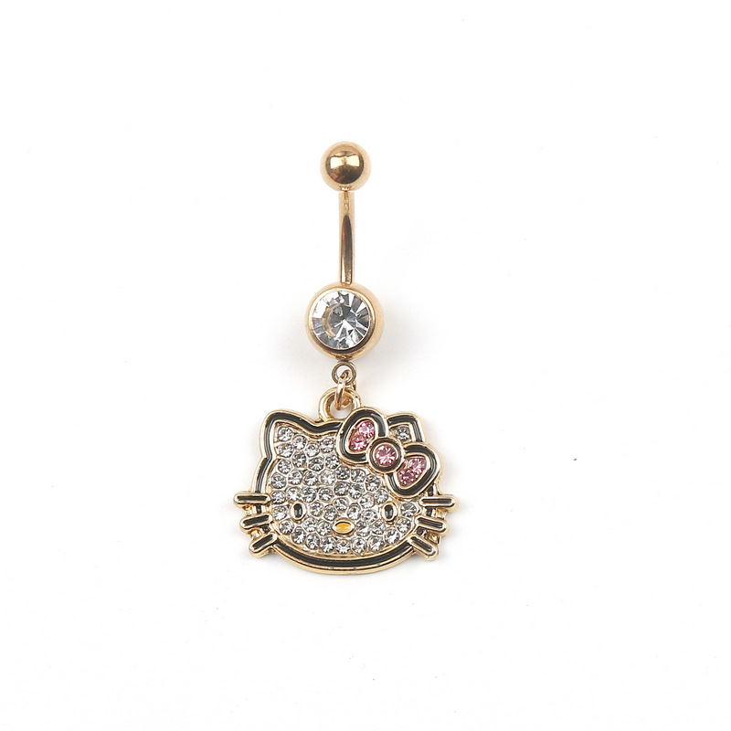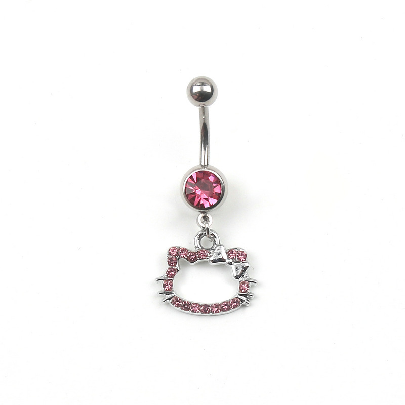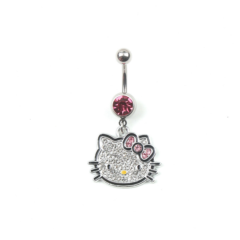 Кольцо для пупка серии KT с розовым крестом, мультяшное милое кольцо hellokitty из нержавеющей стали, пирсинг для пупка, ювелирные изделия