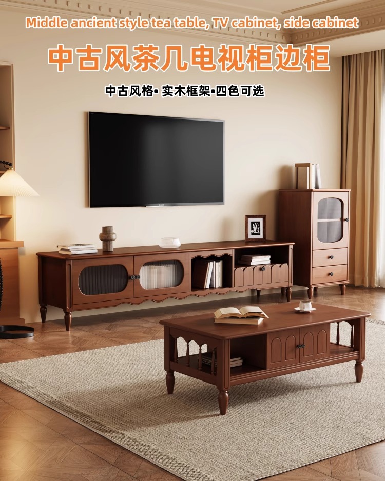 Журнальный столик из цельного дерева, шкаф для телевизора, комбинация для гостиной, высококачественный круглый журнальный столик для хранения, напольный шкаф, буфет, свет, роскошный высококачественный