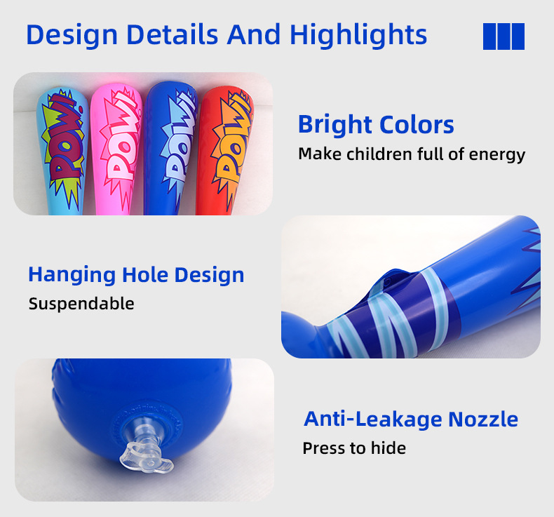 В наличии надувная бейсбольная бита, красочная надувная бита, производитель, оптовая продажа, трансграничная детская игрушка, надувная бита POW, надувная бита для поддержки
