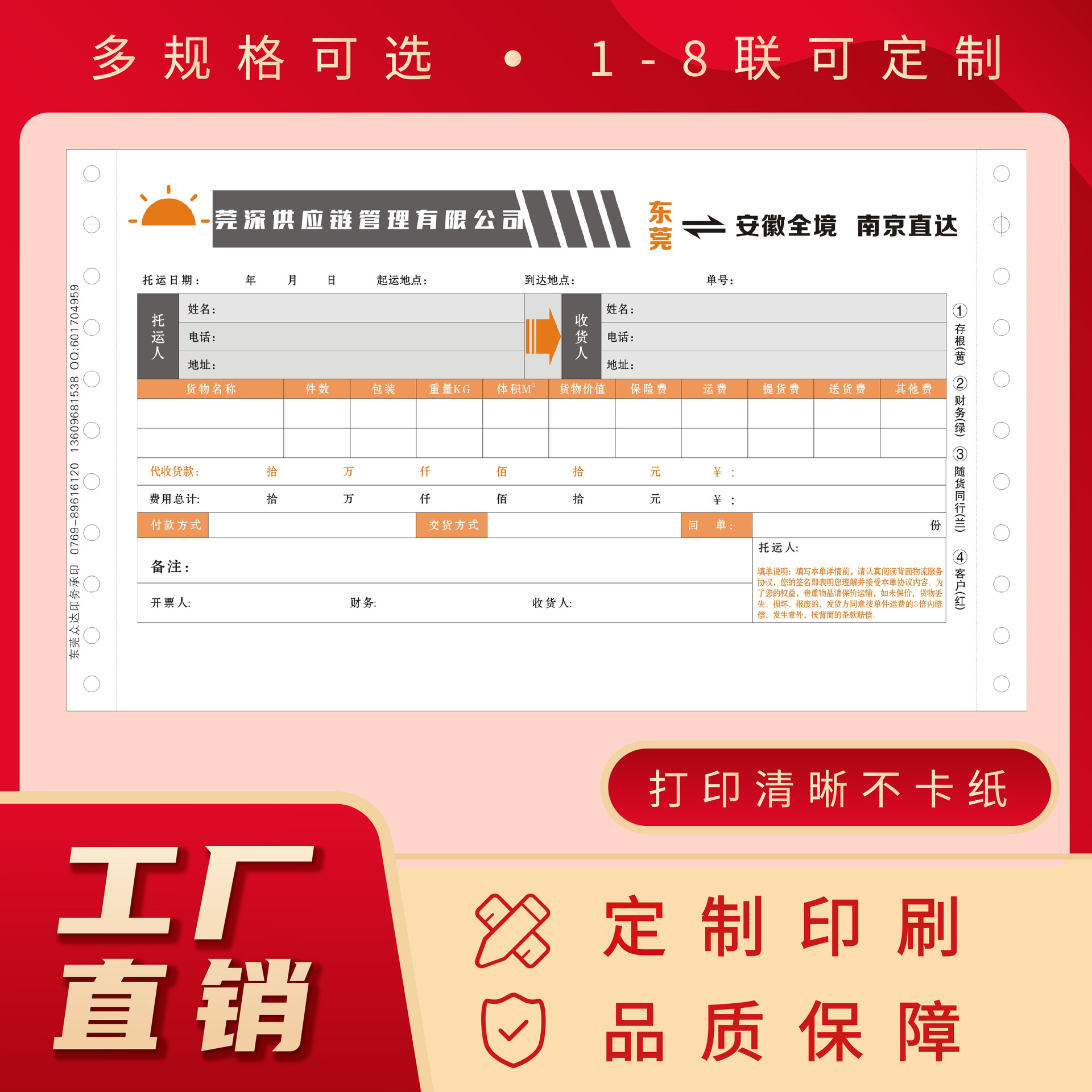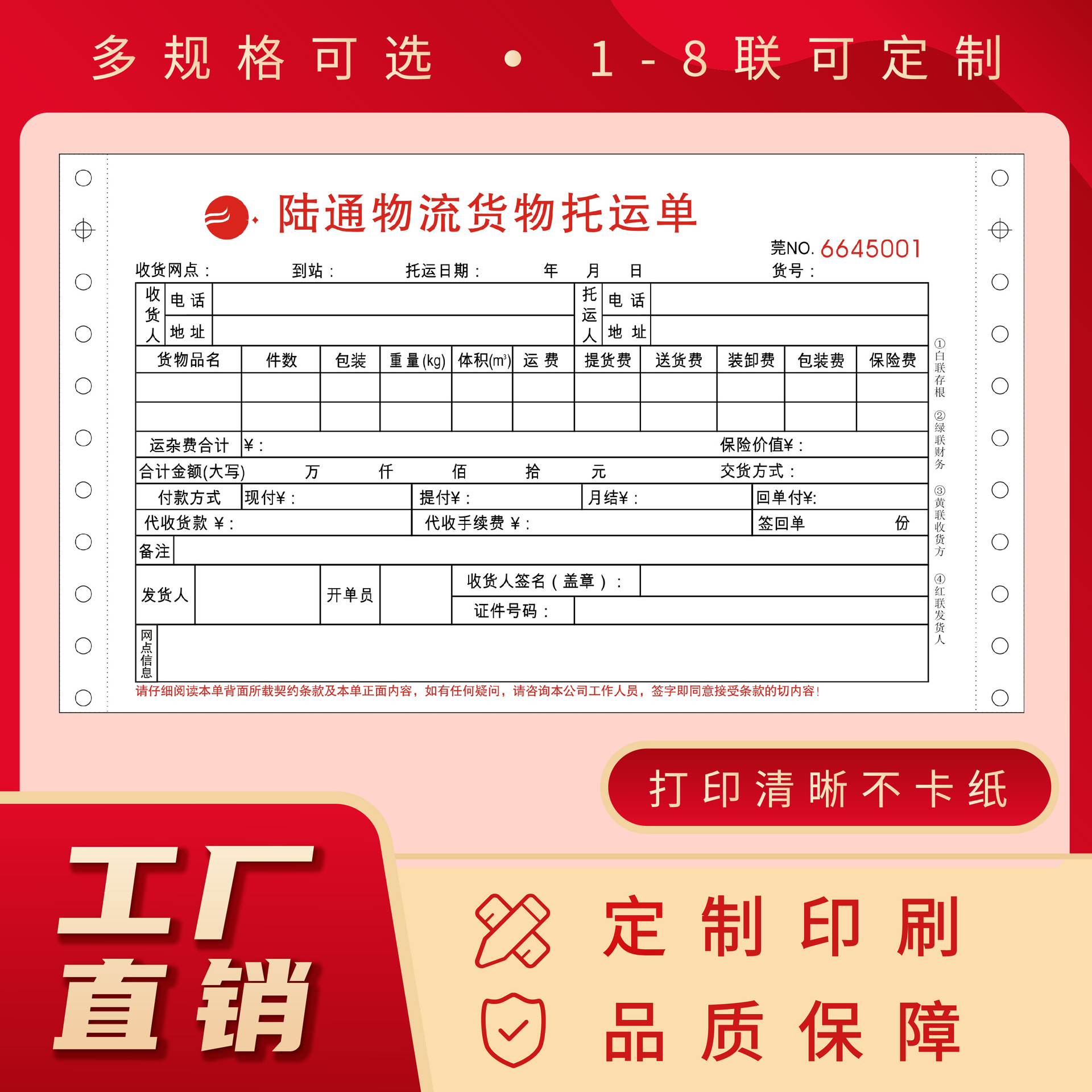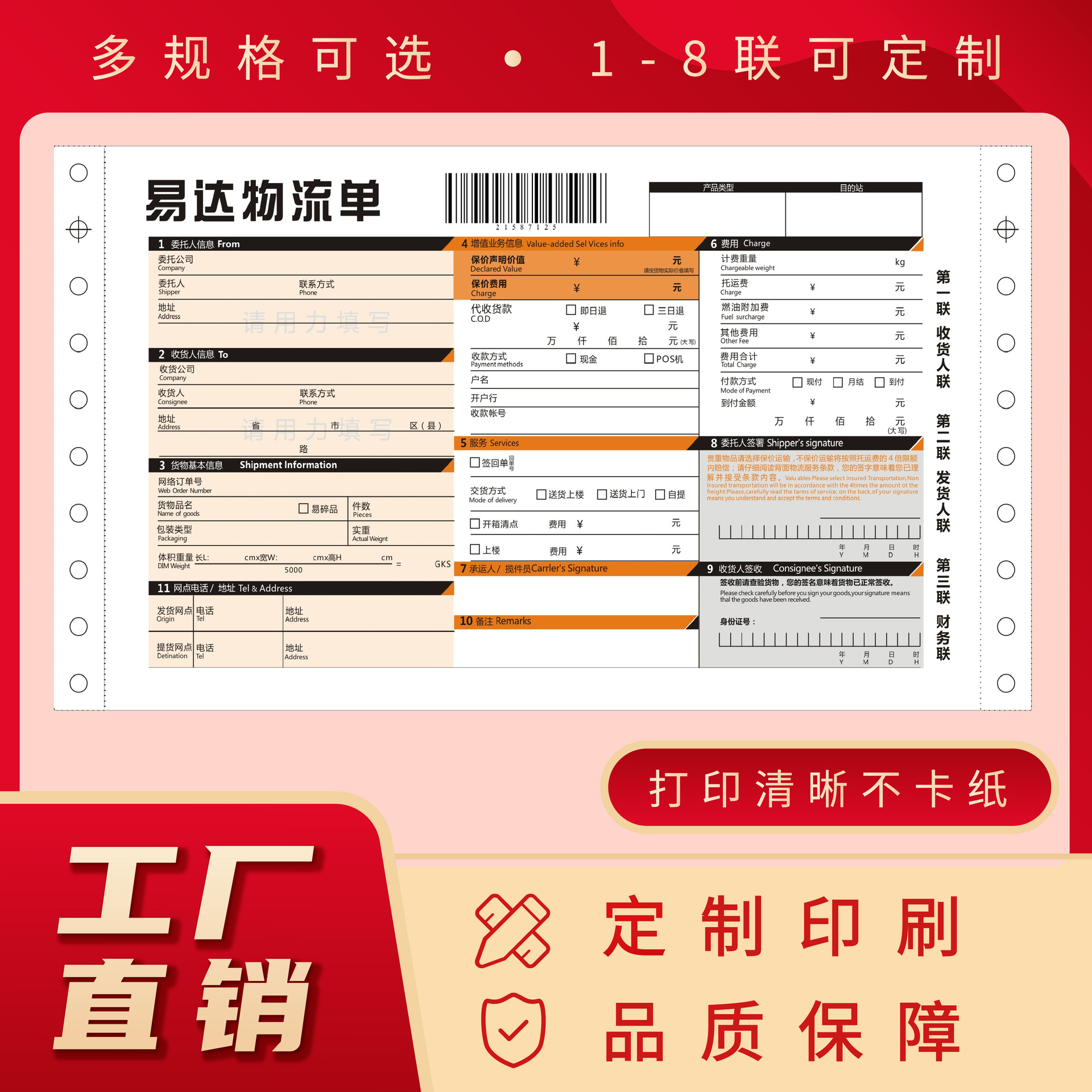 10、此链接为10000份起订快递单定制链接,快递单定制产品链接淘宝限定最低标价1元,尺寸数量工艺要求不同,价格也不同,因此总货款多少元即拍多少件,拍下前请旺旺咨询客服或电话联系工厂客服 。