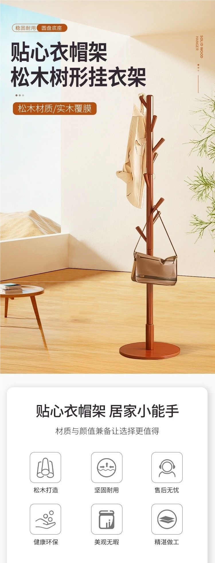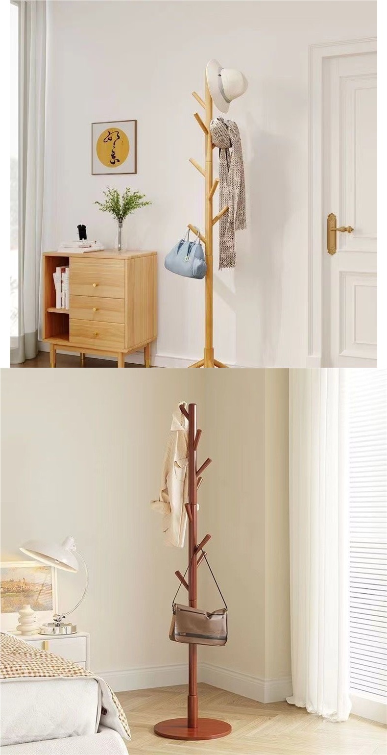 Вешалка для одежды для спальни, напольная вертикальная вешалка для одежды из цельного дерева, бытовая вешалка для одежды, простая вешалка для сумок