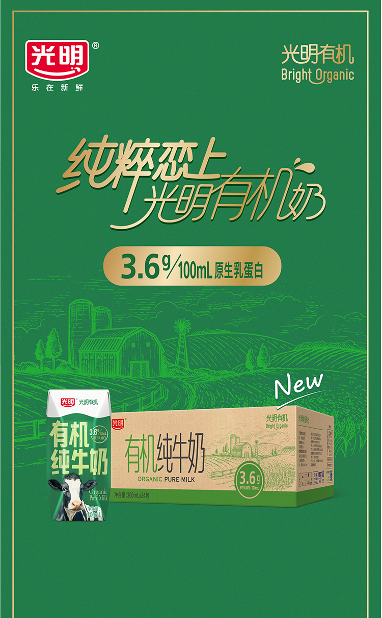 Молоко Гуанмин чистое 200 мл * 24 коробки 3,6 г натуральный молочный белок целая коробка для завтрака